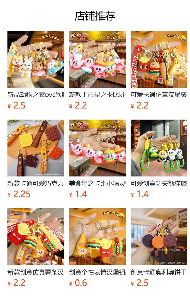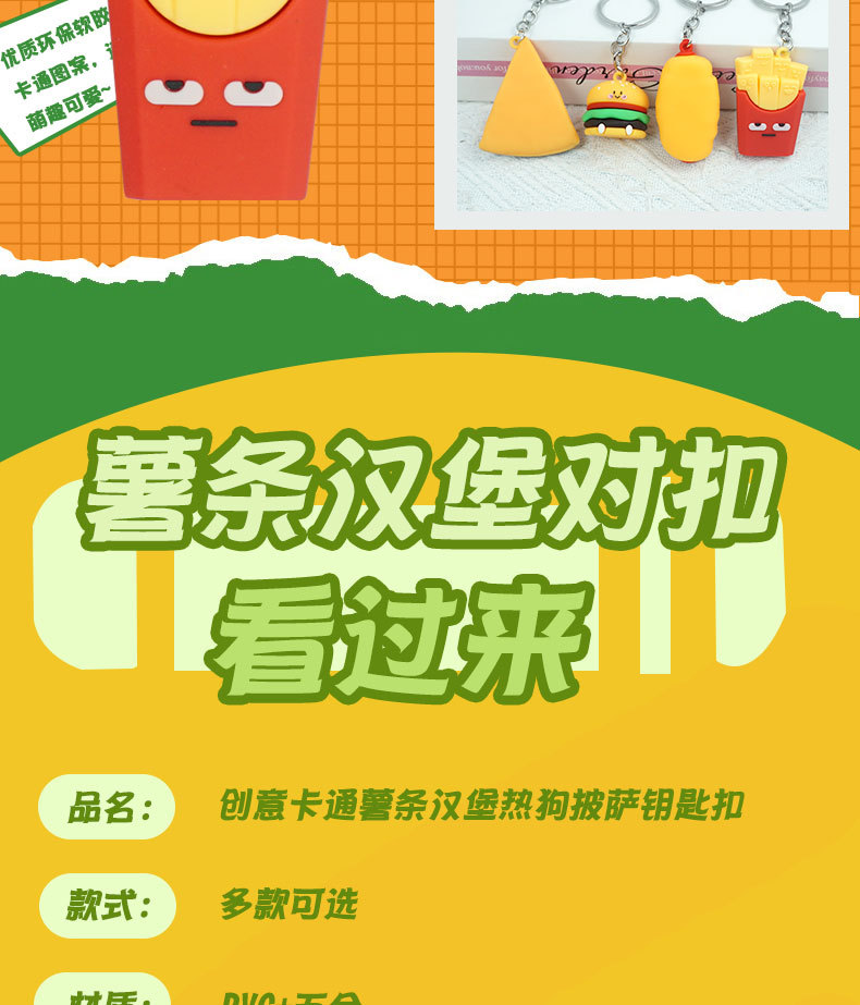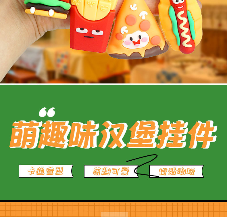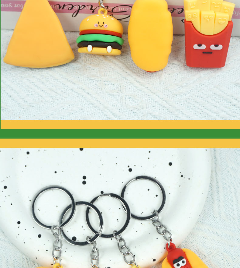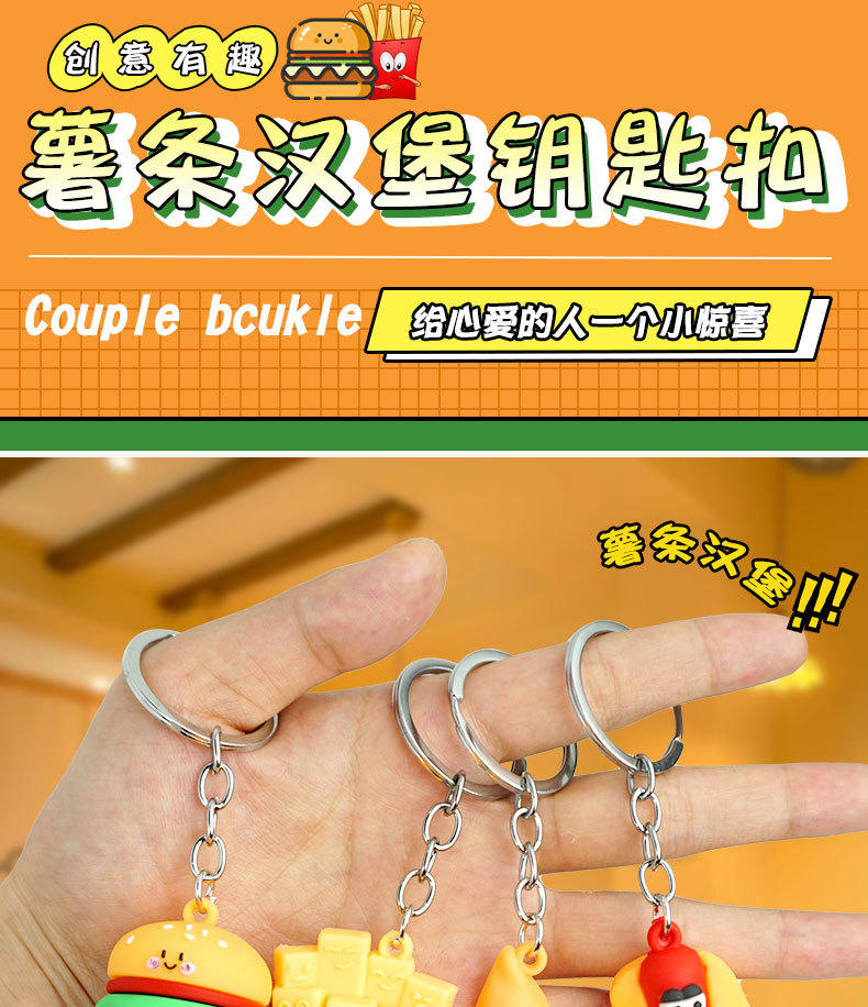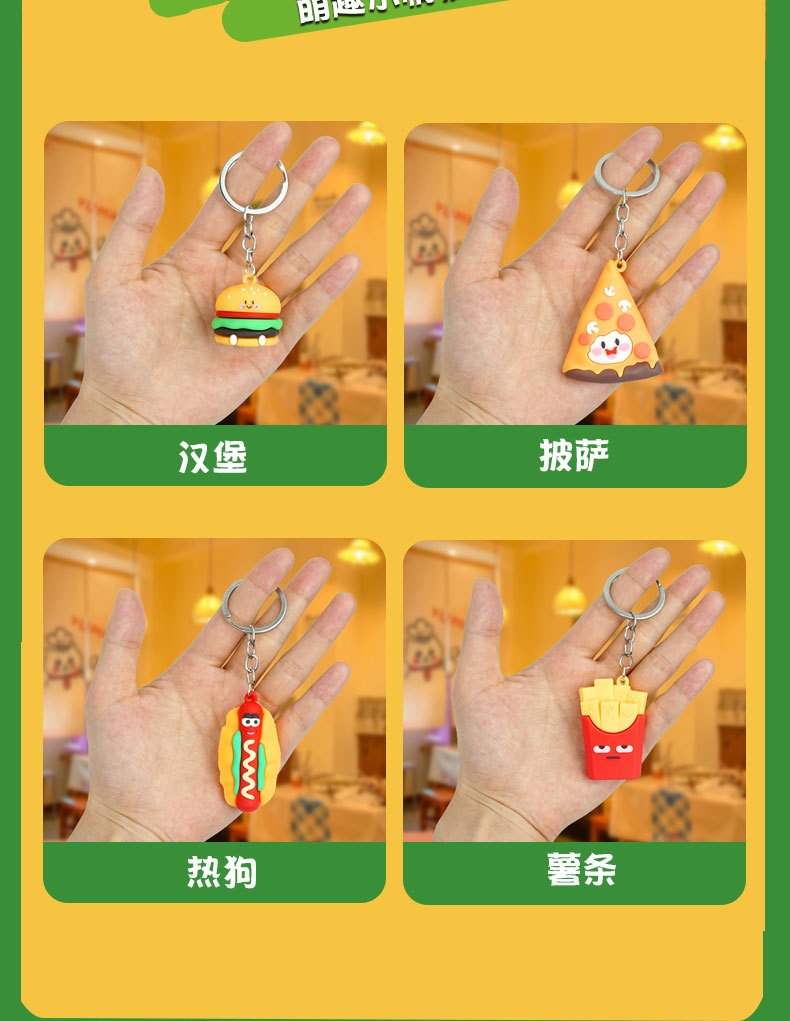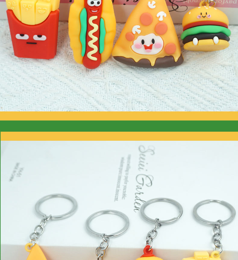 창의적이고 실용적인 시뮬레이션 프라이 햄버거 키 체인 펜던트 만화 귀여운 부드러운 접착제 피자 키 체인 장식 매달려 장식품스토어 가기