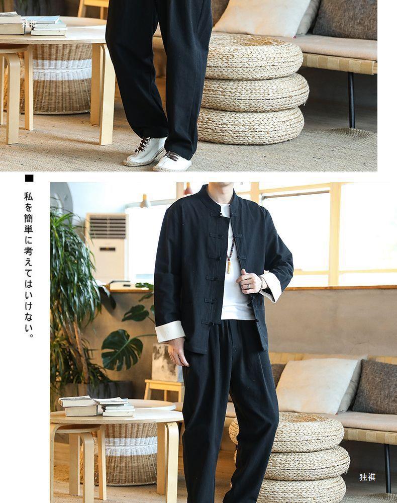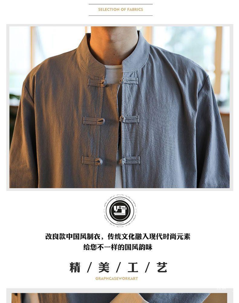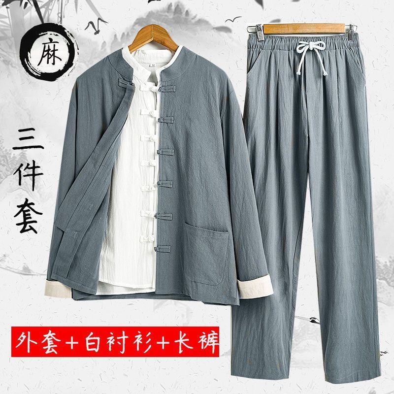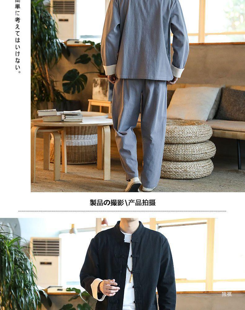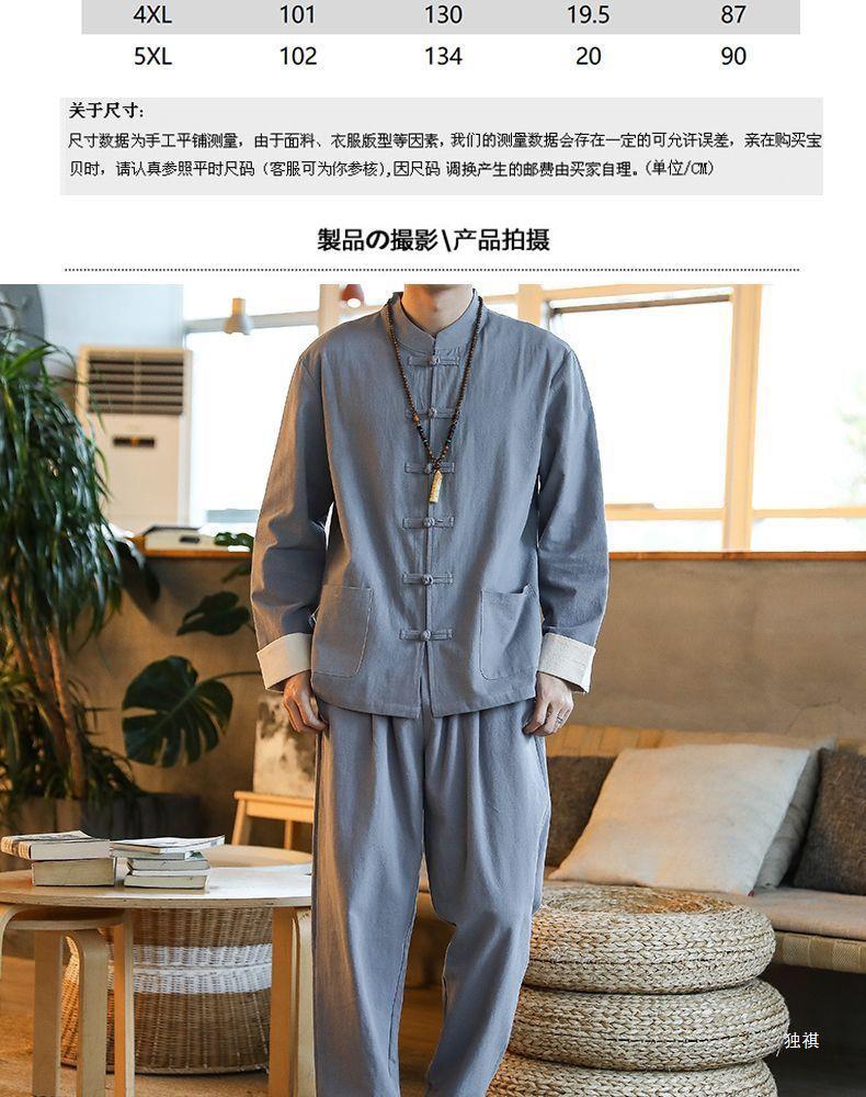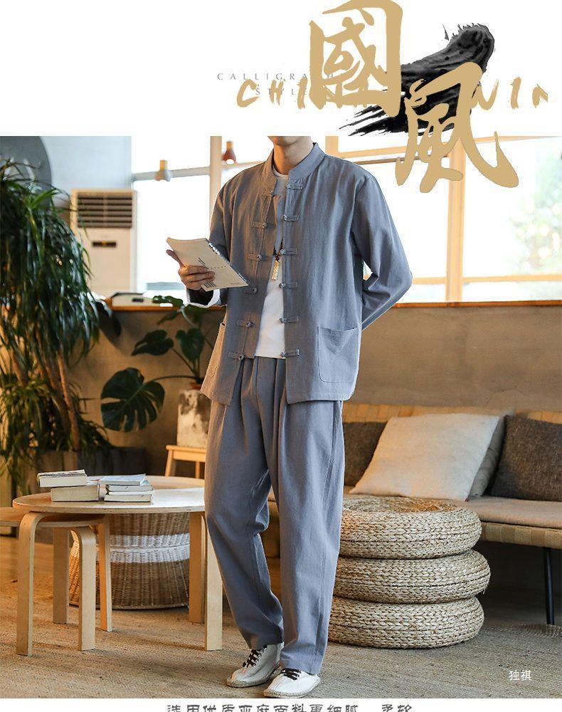 당나라 세트 남성면 및 리넨 고대 의상 세트 차 세트 고대 스타일 명상 세트 중국 스타일 중산 세트 봄 여름 가을 민족 세트 한푸스토어 가기