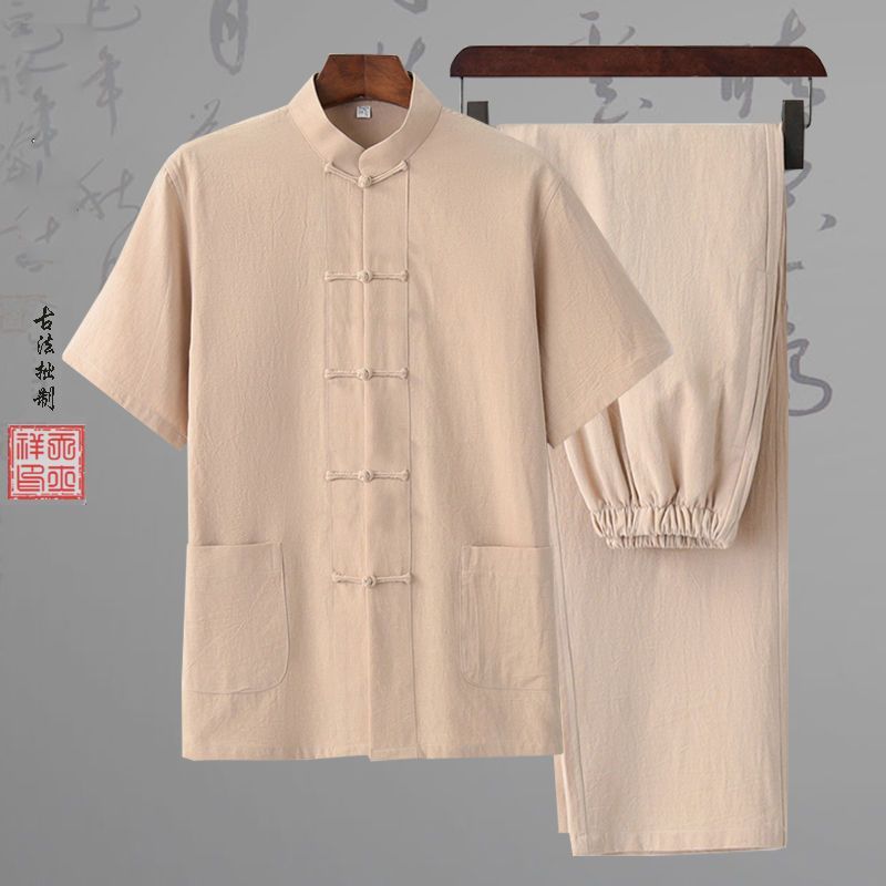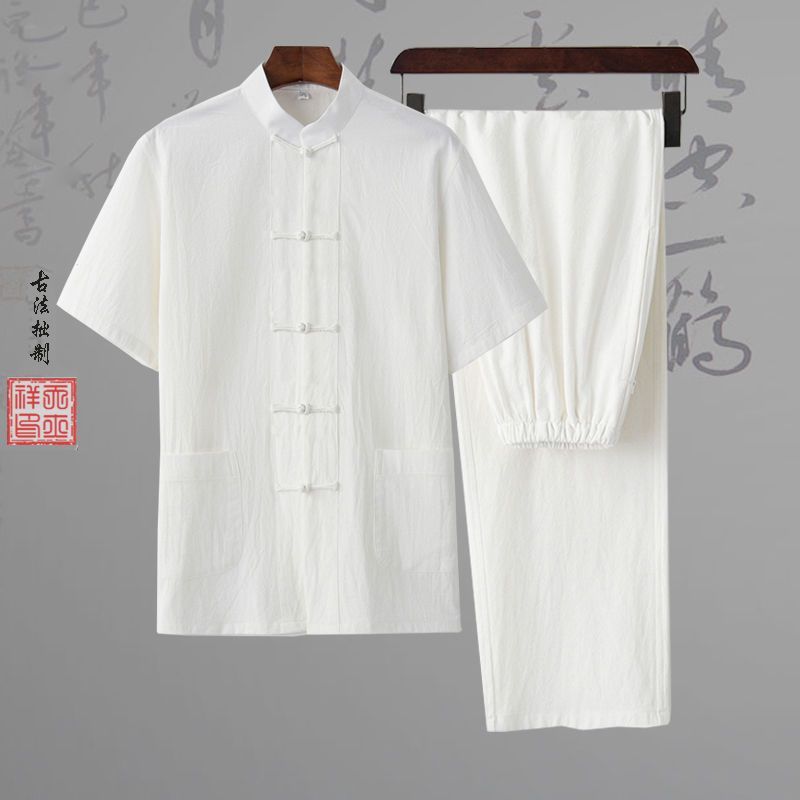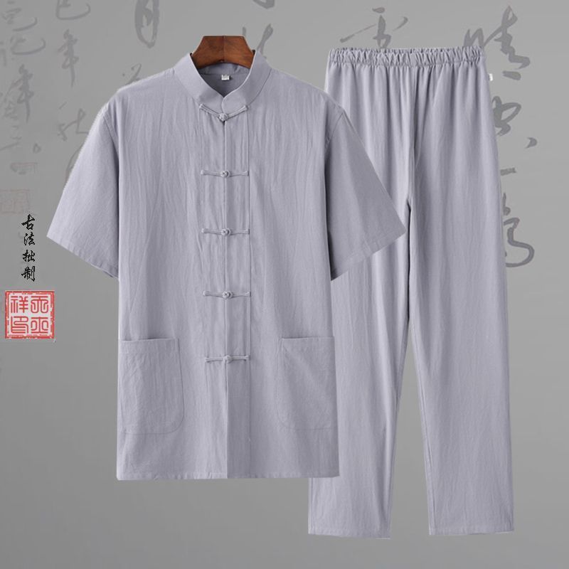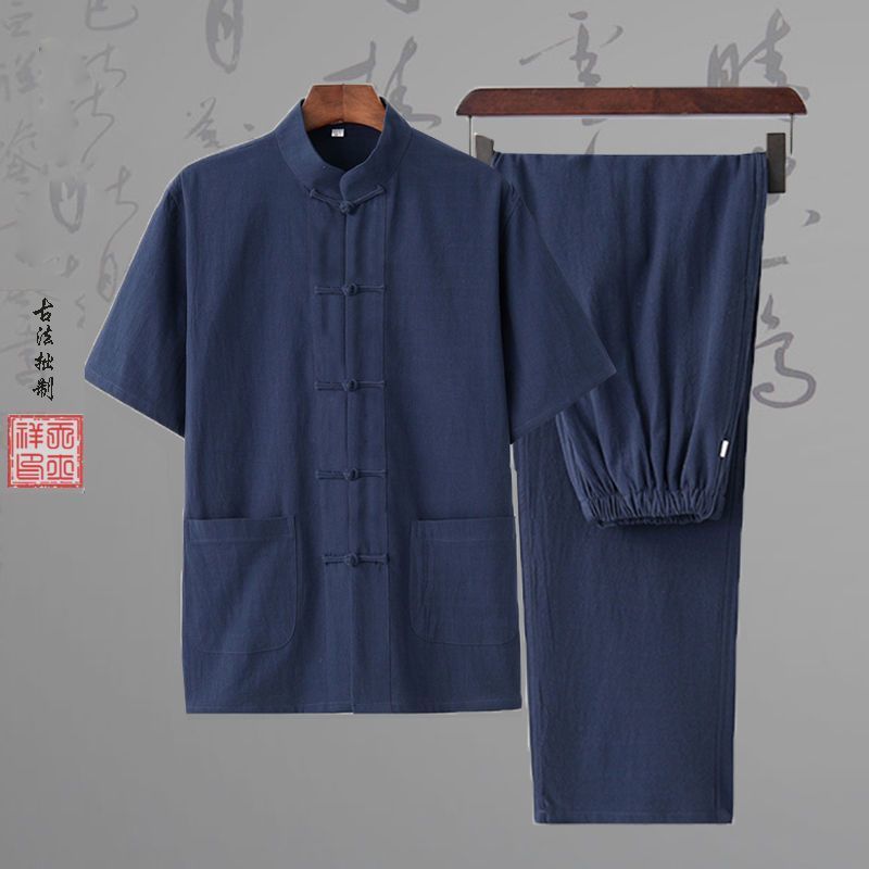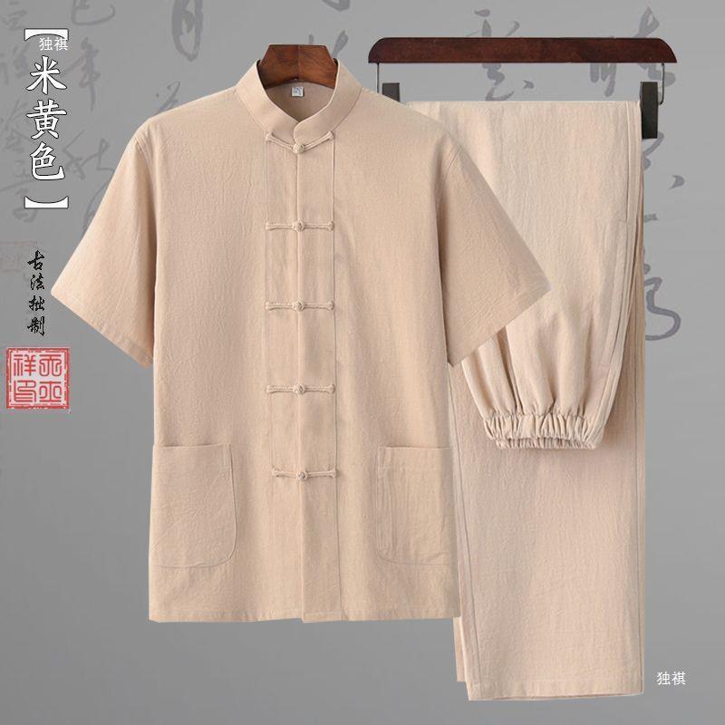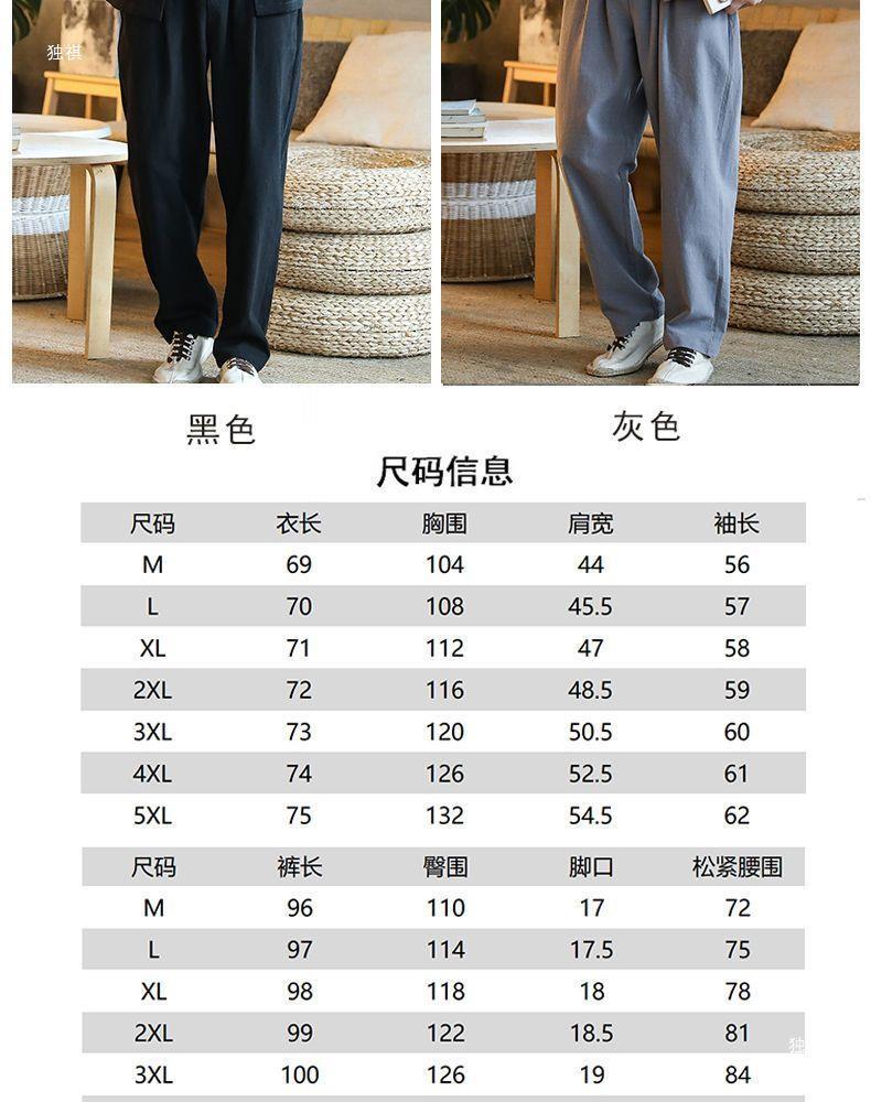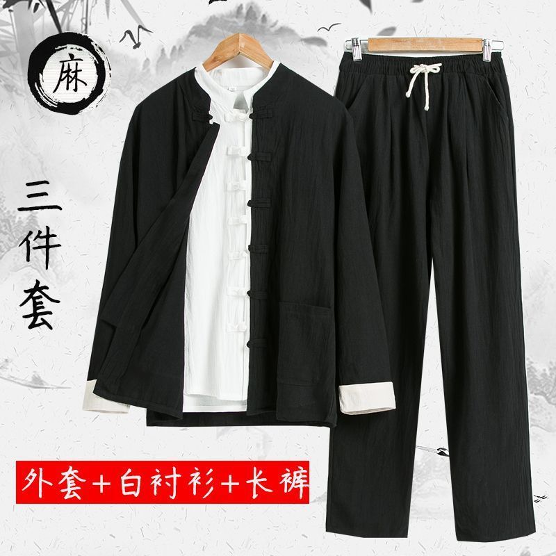 당나라 세트 남성면 및 리넨 고대 의상 세트 차 세트 고대 스타일 명상 세트 중국 스타일 중산 세트 봄 여름 가을 민족 세트 한푸스토어 가기
