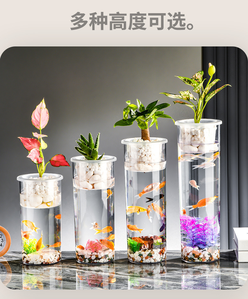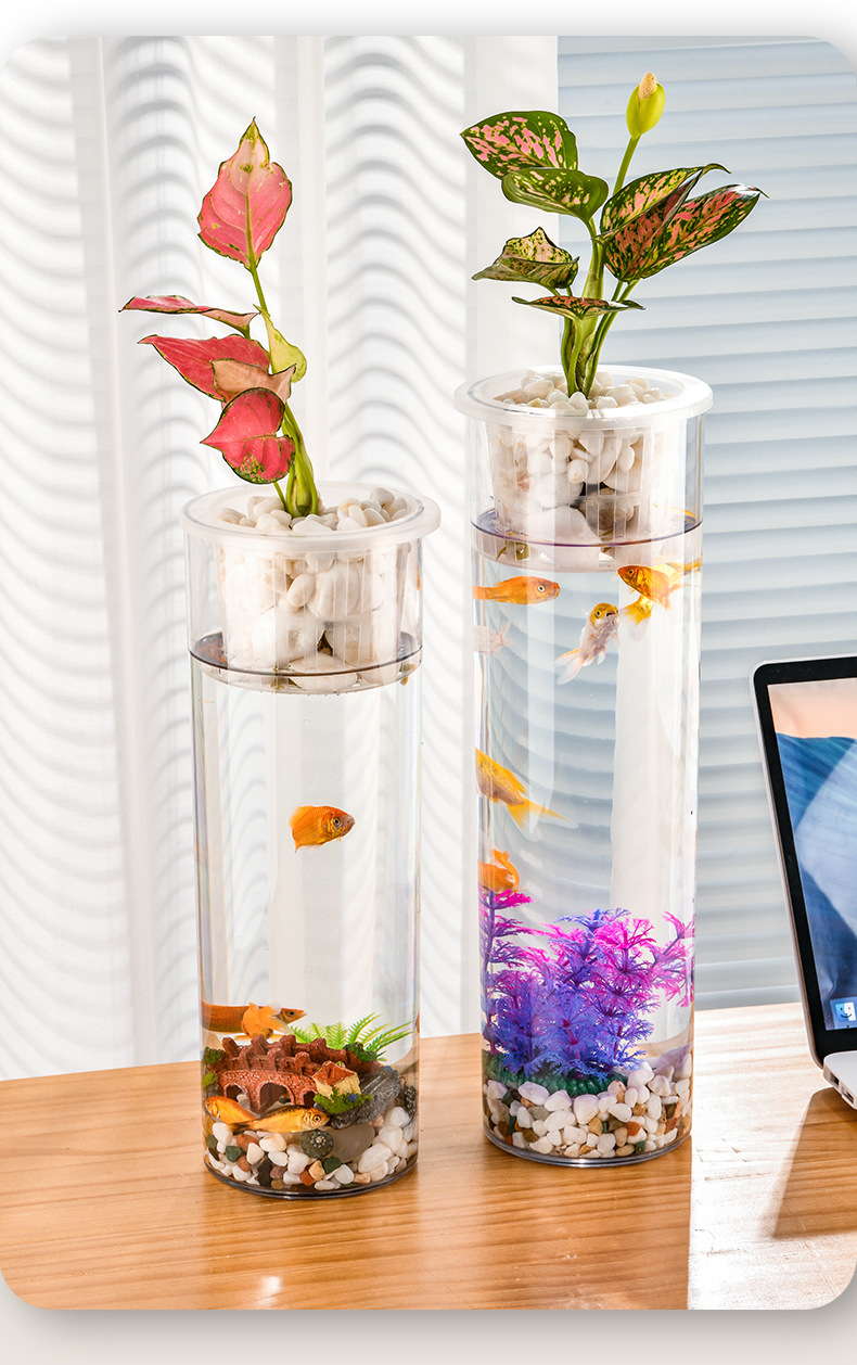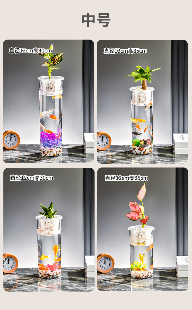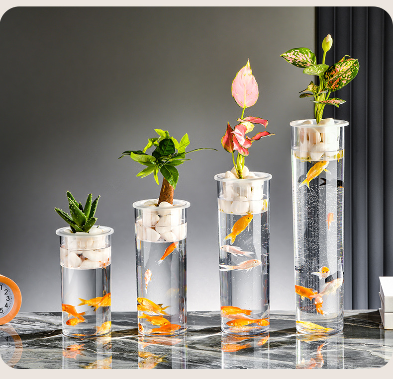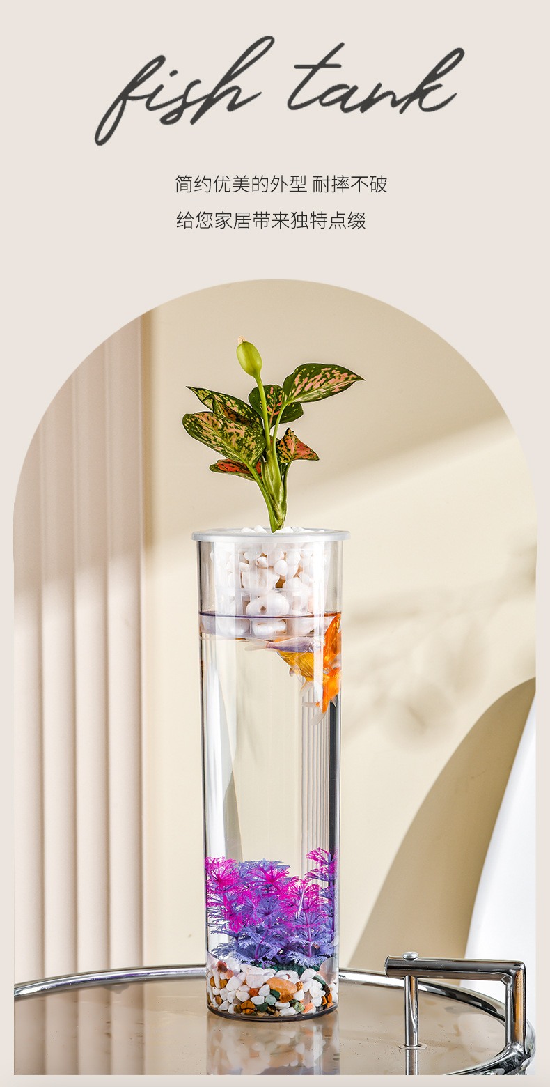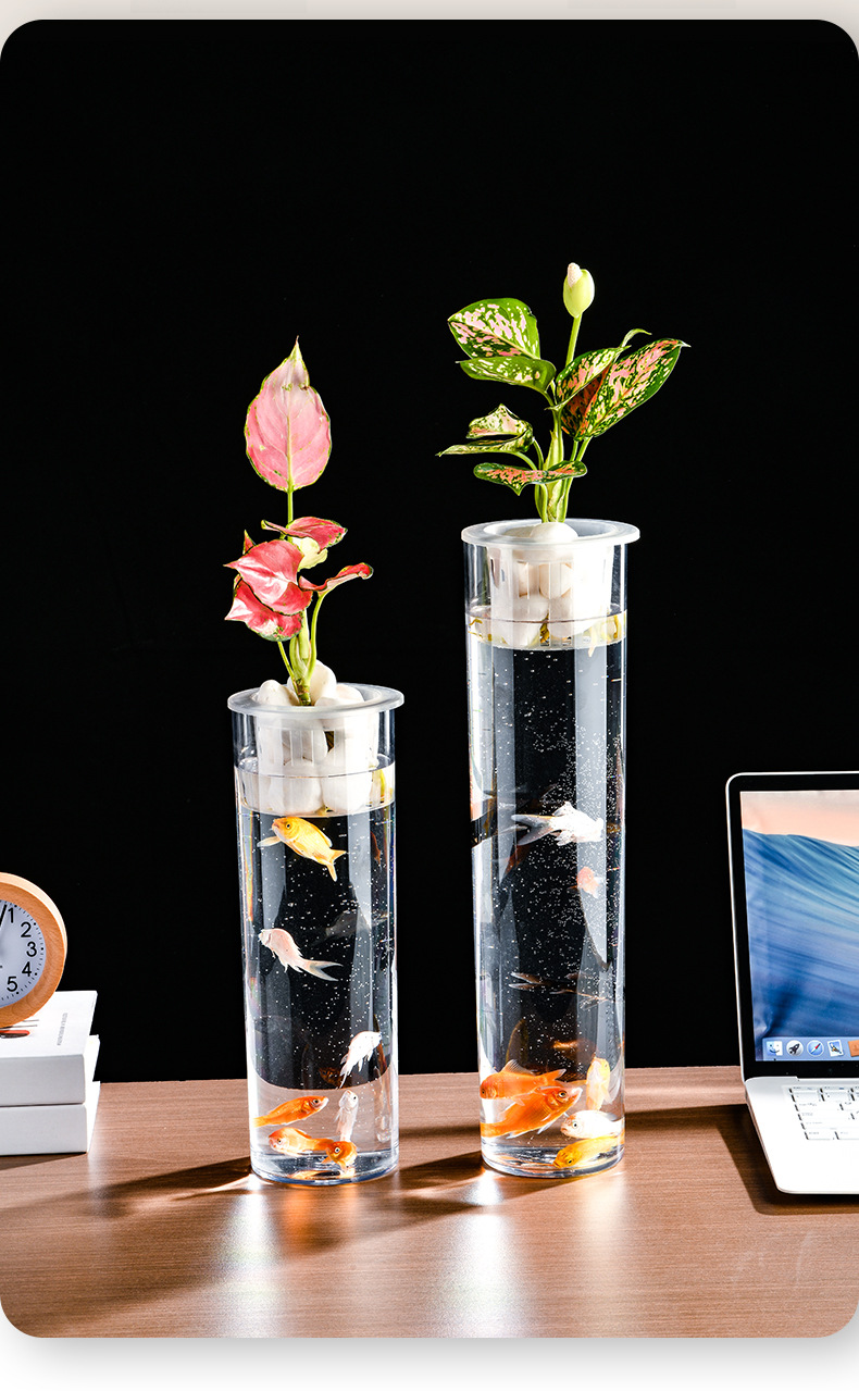 원통형 직선 창조적 인 고화질 및 높은 투과성 꽃 배열 수경 식물 꽃병 대나무 수직 생태 양동이 물고기 탱크
