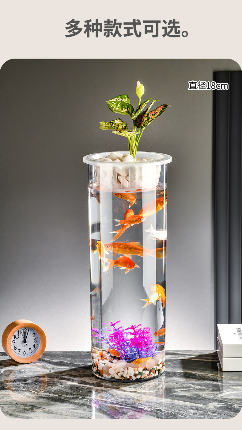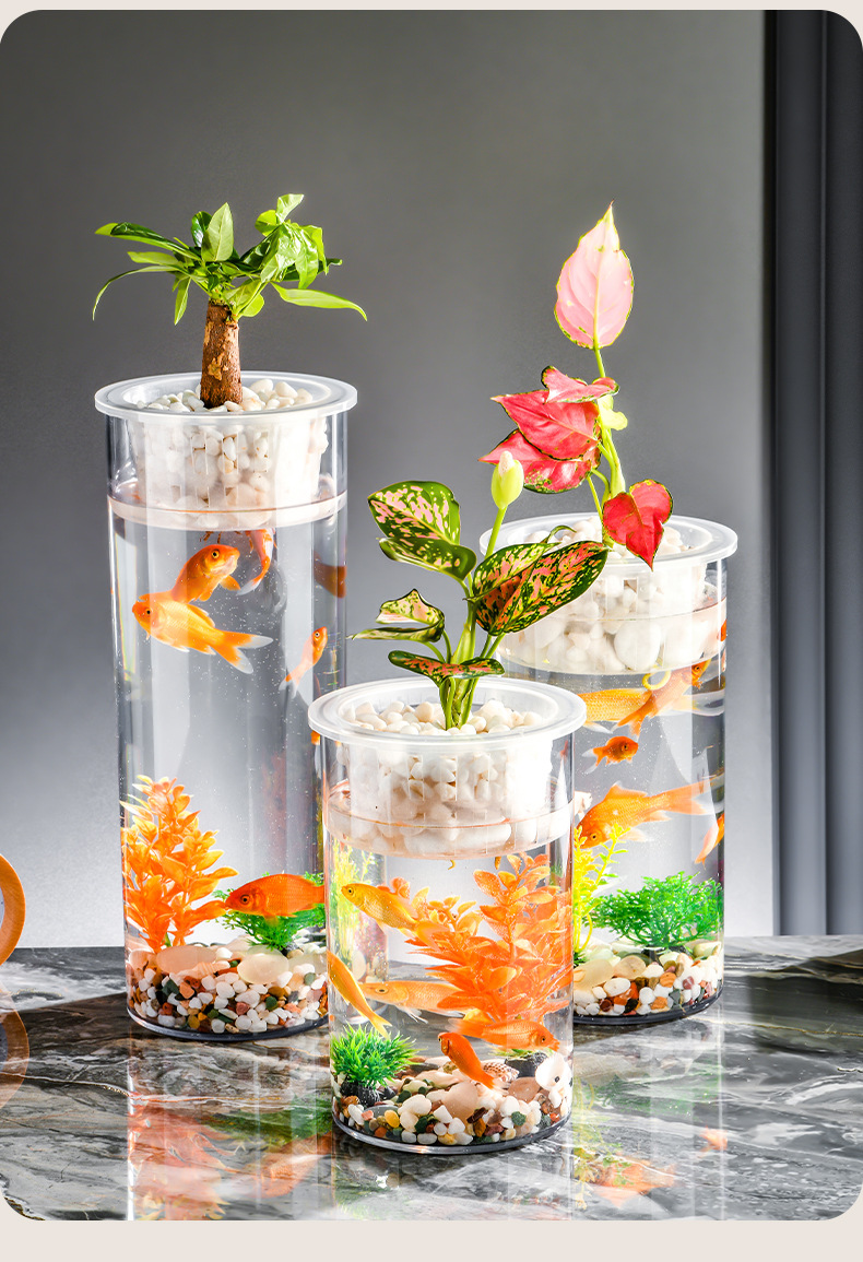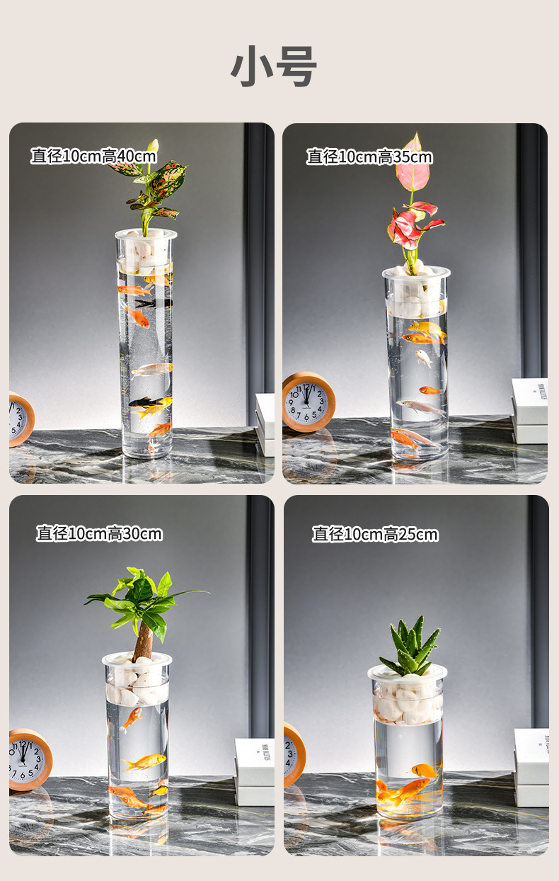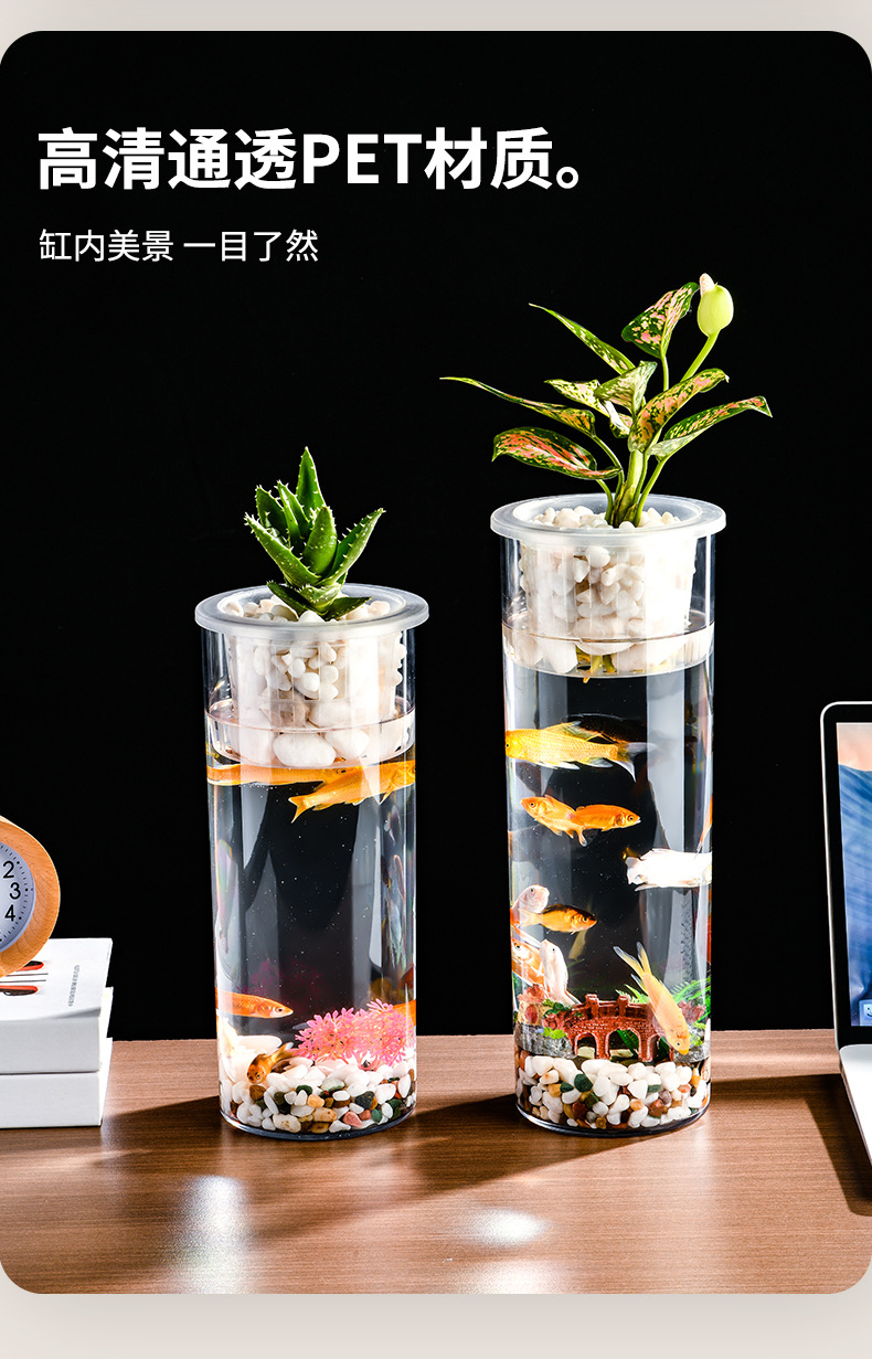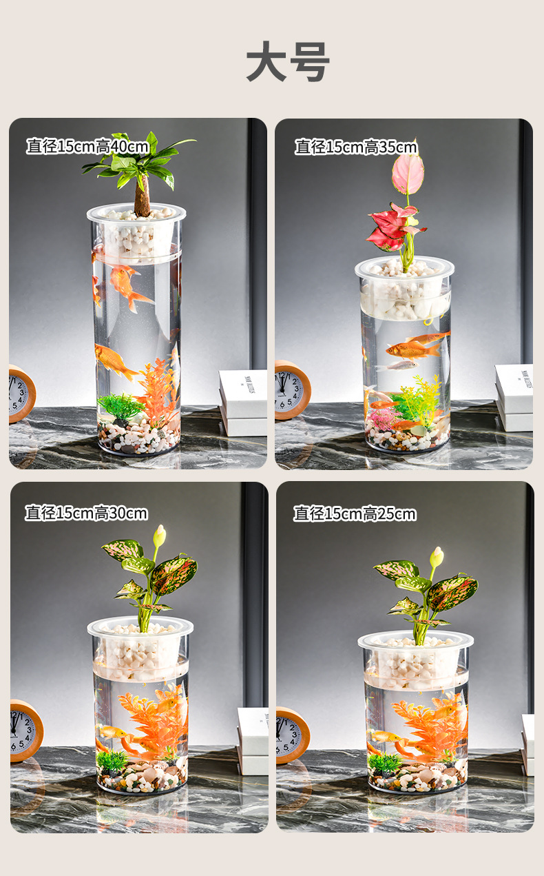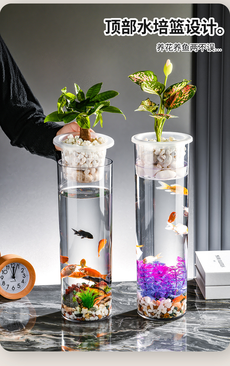 원통형 직선 창조적 인 고화질 및 높은 투과성 꽃 배열 수경 식물 꽃병 대나무 수직 생태 양동이 물고기 탱크