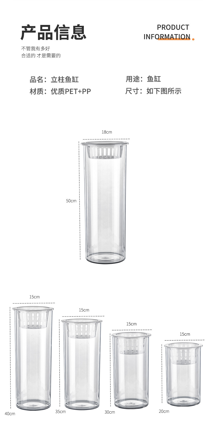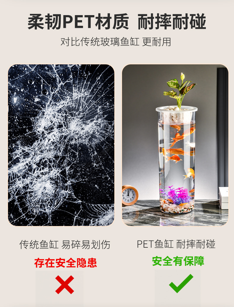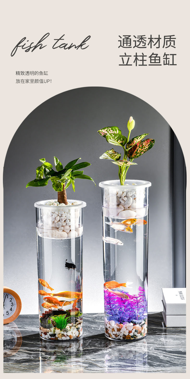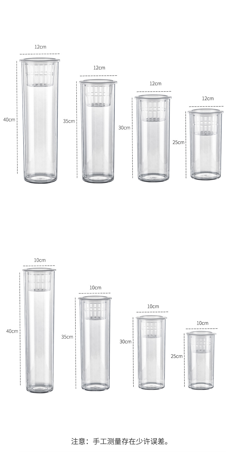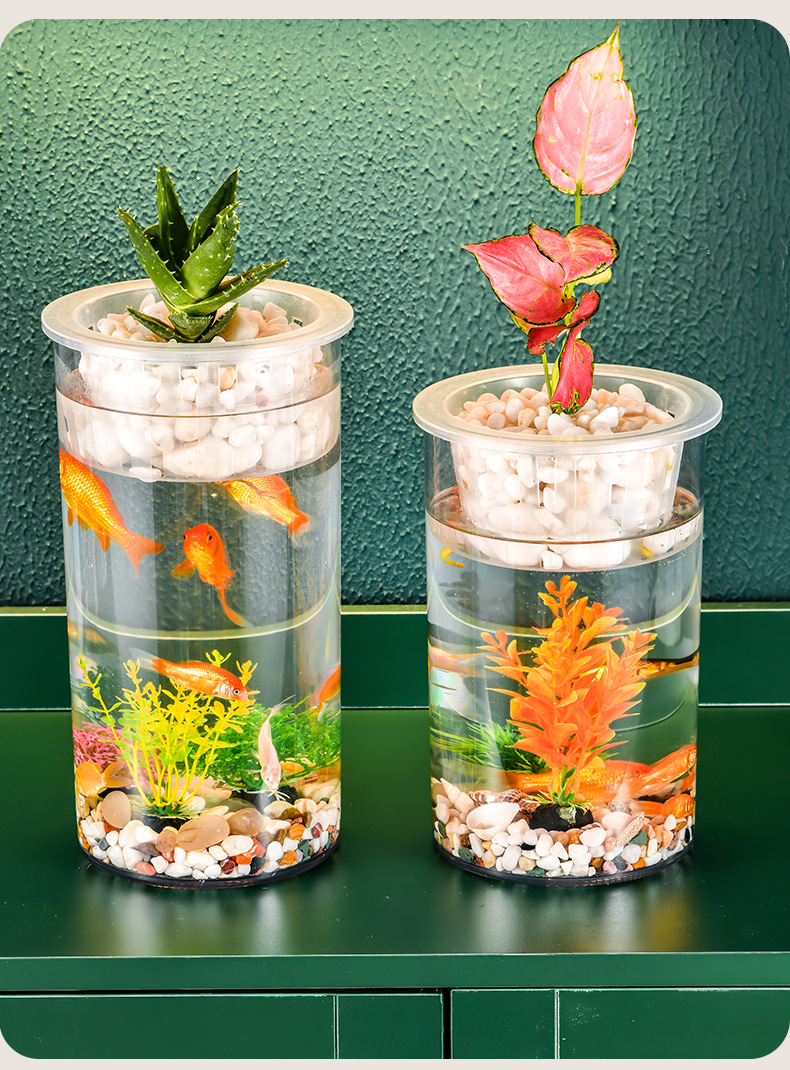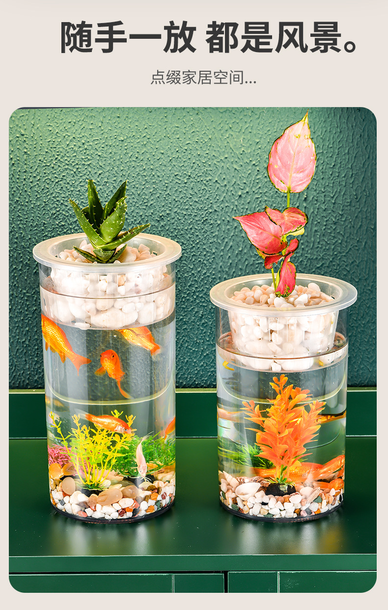 원통형 직선 창조적 인 고화질 및 높은 투과성 꽃 배열 수경 식물 꽃병 대나무 수직 생태 양동이 물고기 탱크