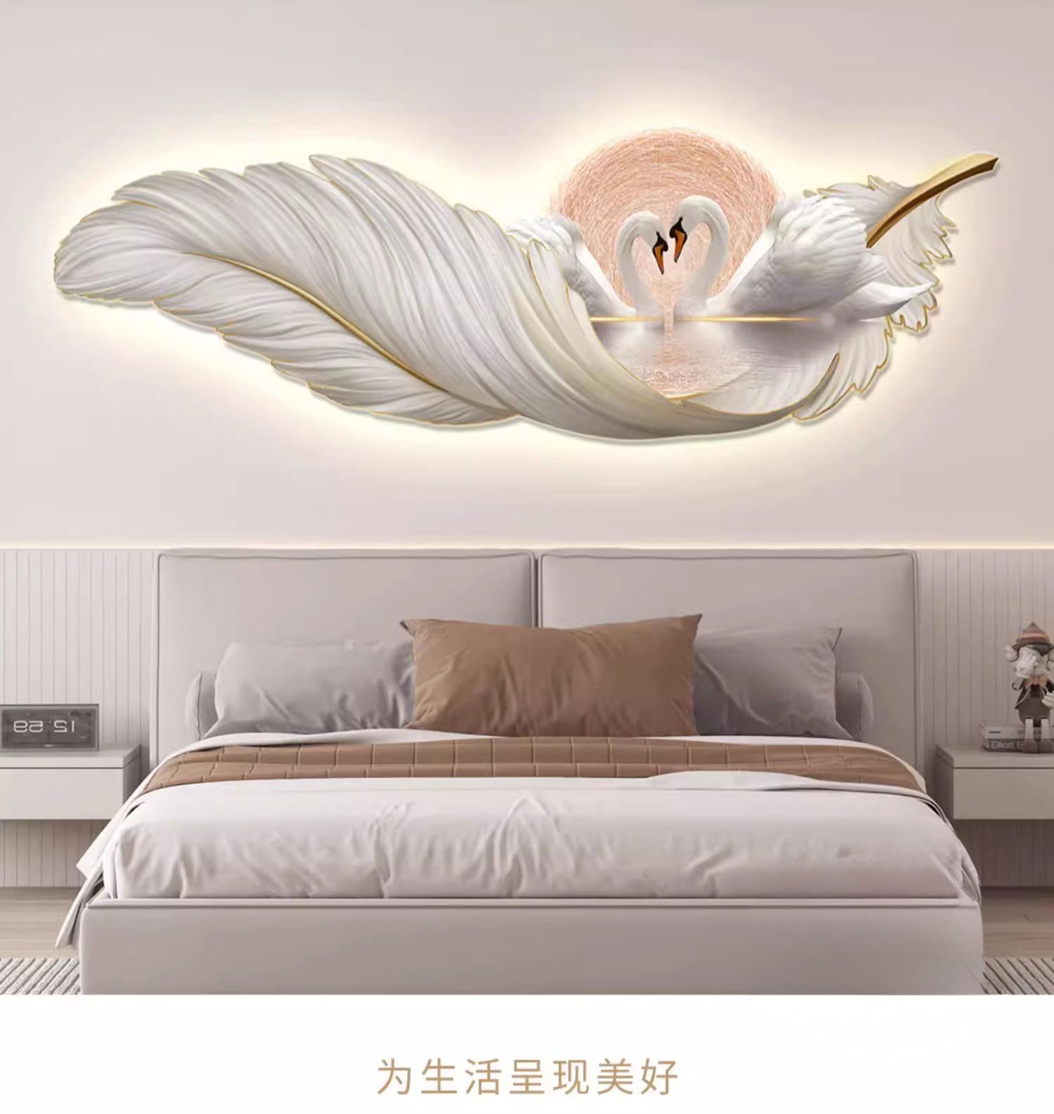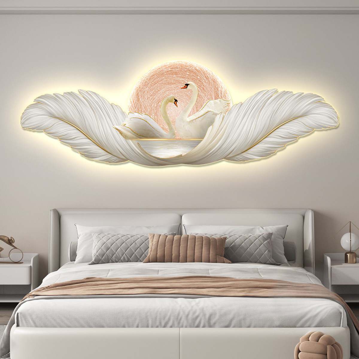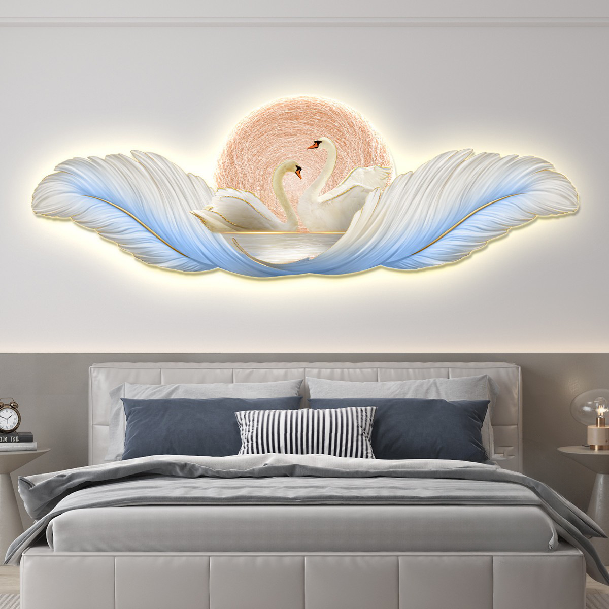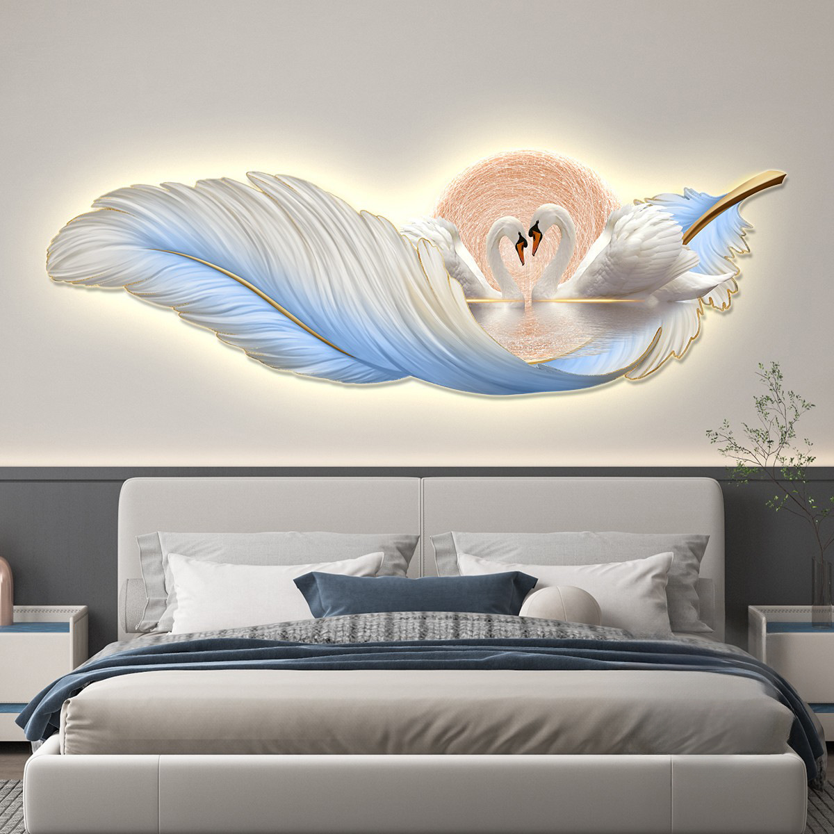 가벼운 고급 따뜻한 침실 침대 옆 장식 그림 깃털 백조 led 분위기 빛 그림 교수형 그림 방 마스터 침실 벽 벽화스토어 가기