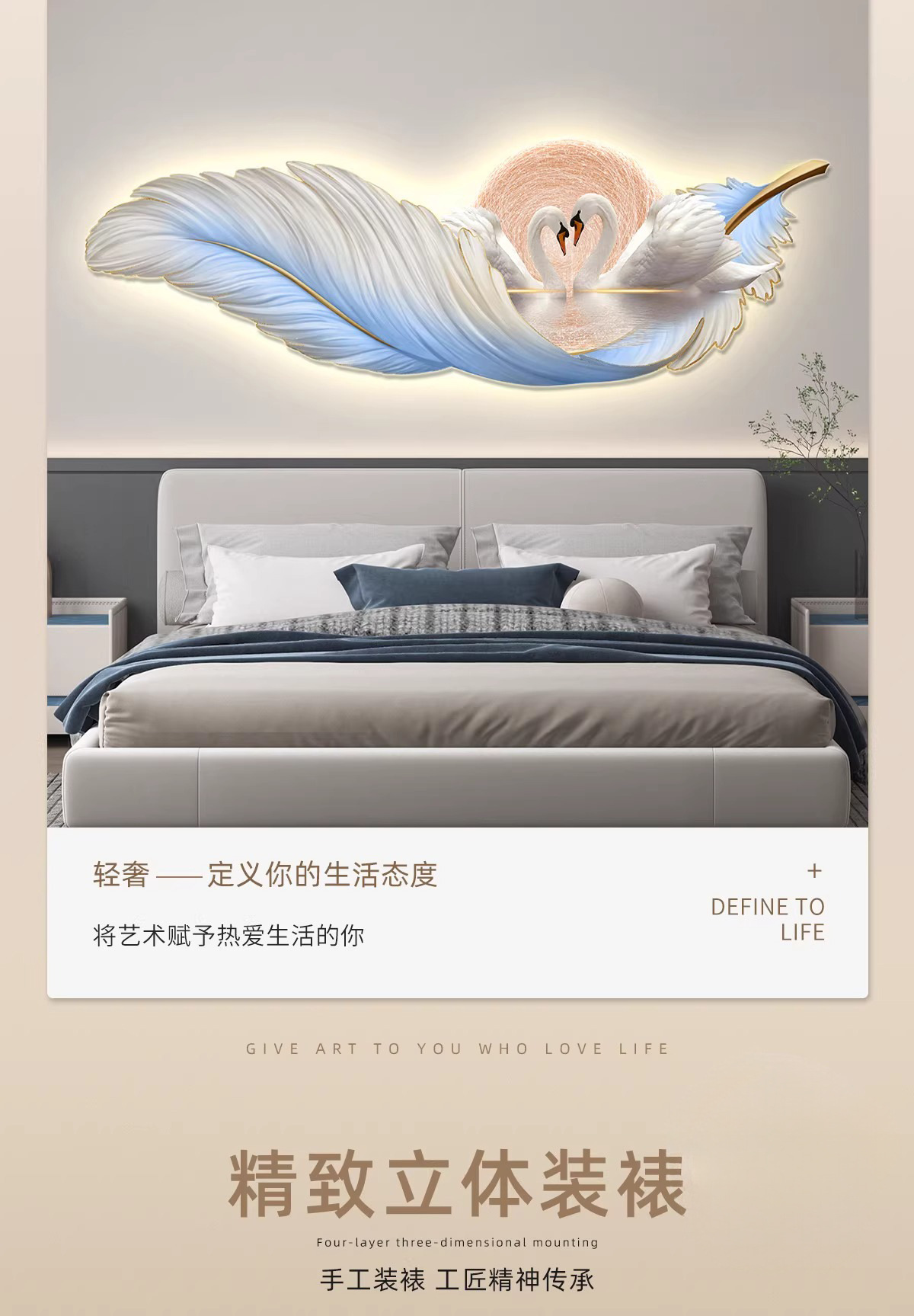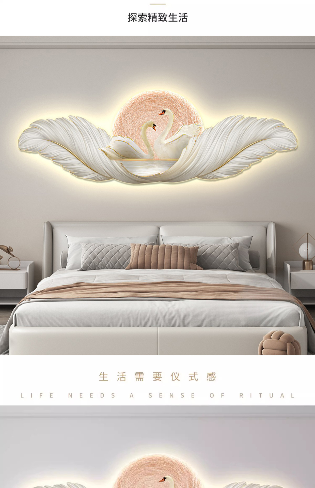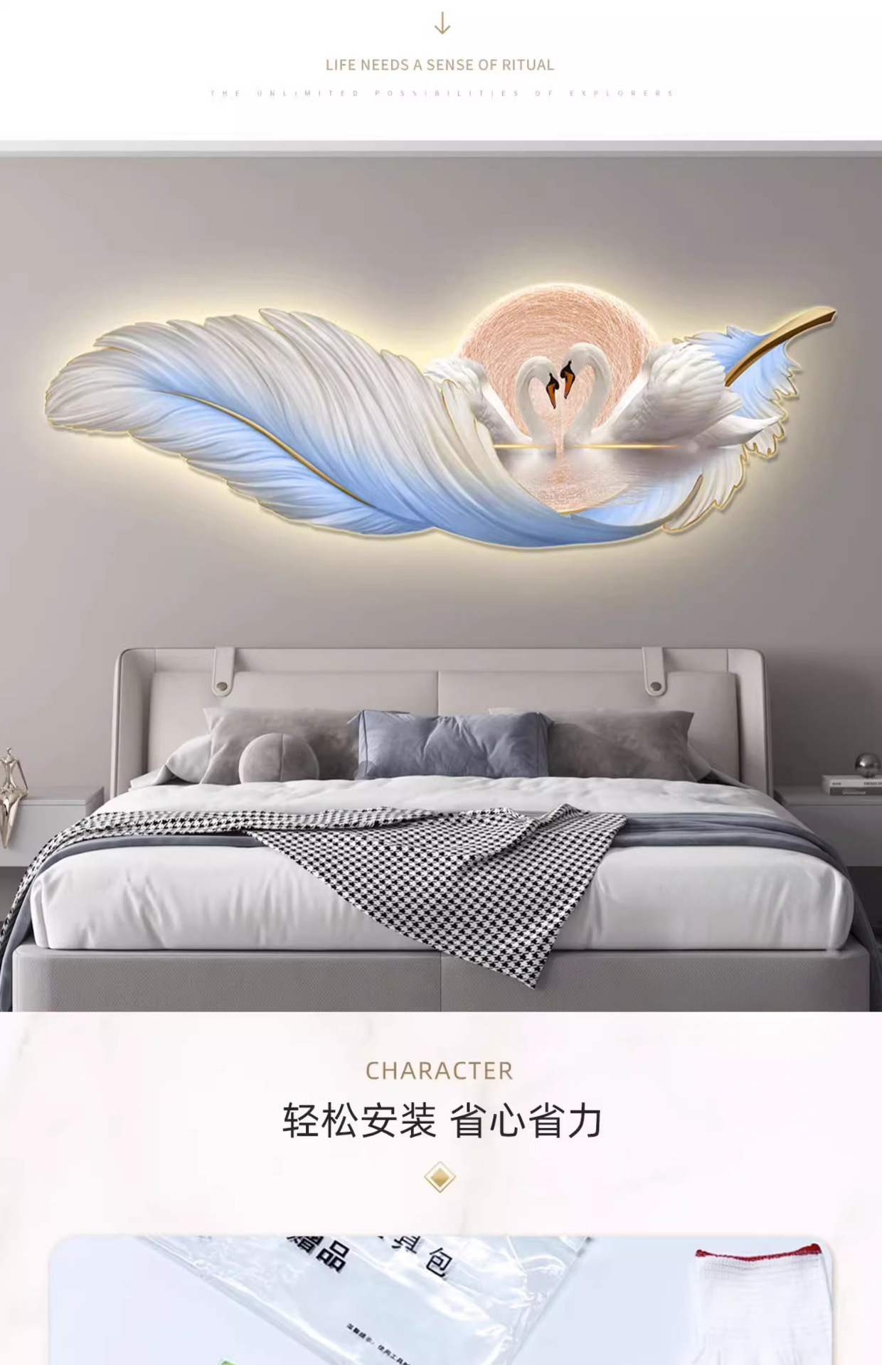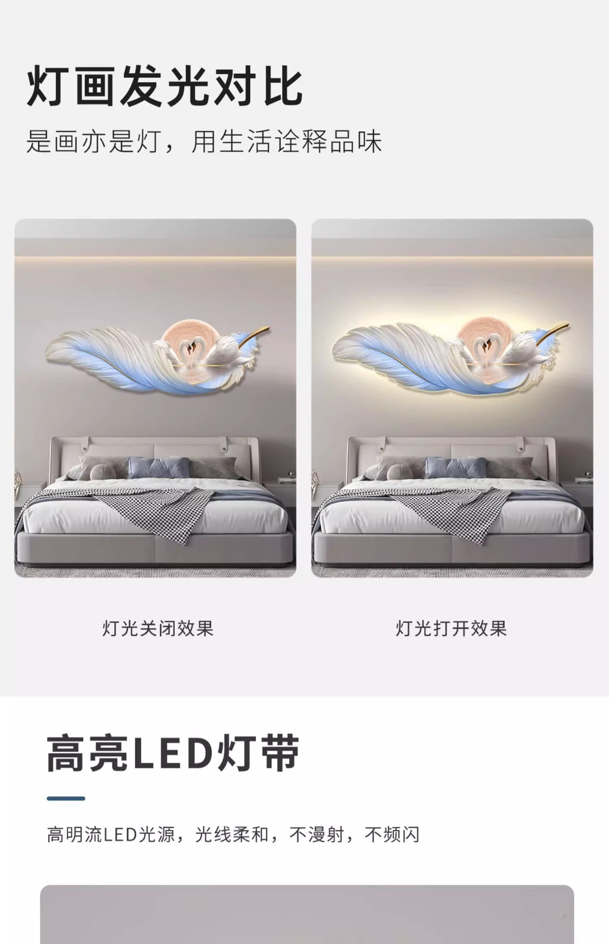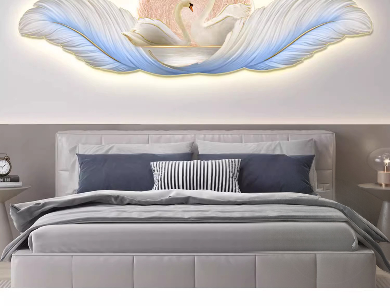 가벼운 고급 따뜻한 침실 침대 옆 장식 그림 깃털 백조 led 분위기 빛 그림 교수형 그림 방 마스터 침실 벽 벽화스토어 가기