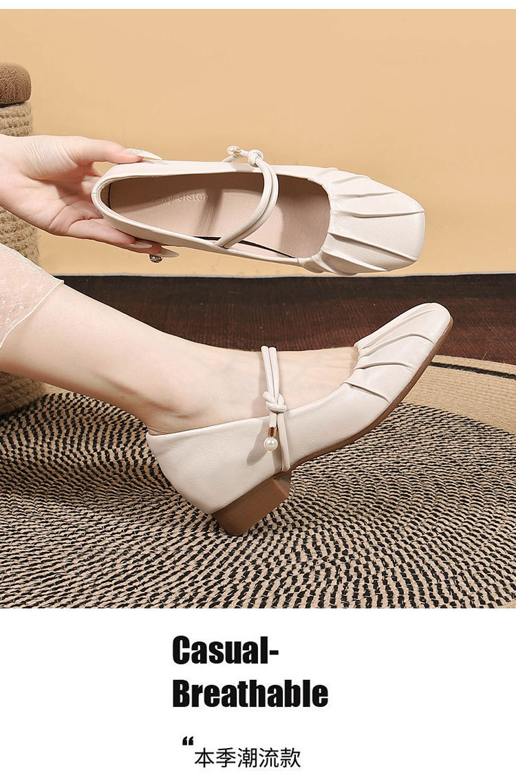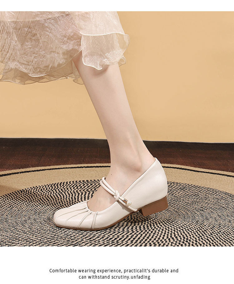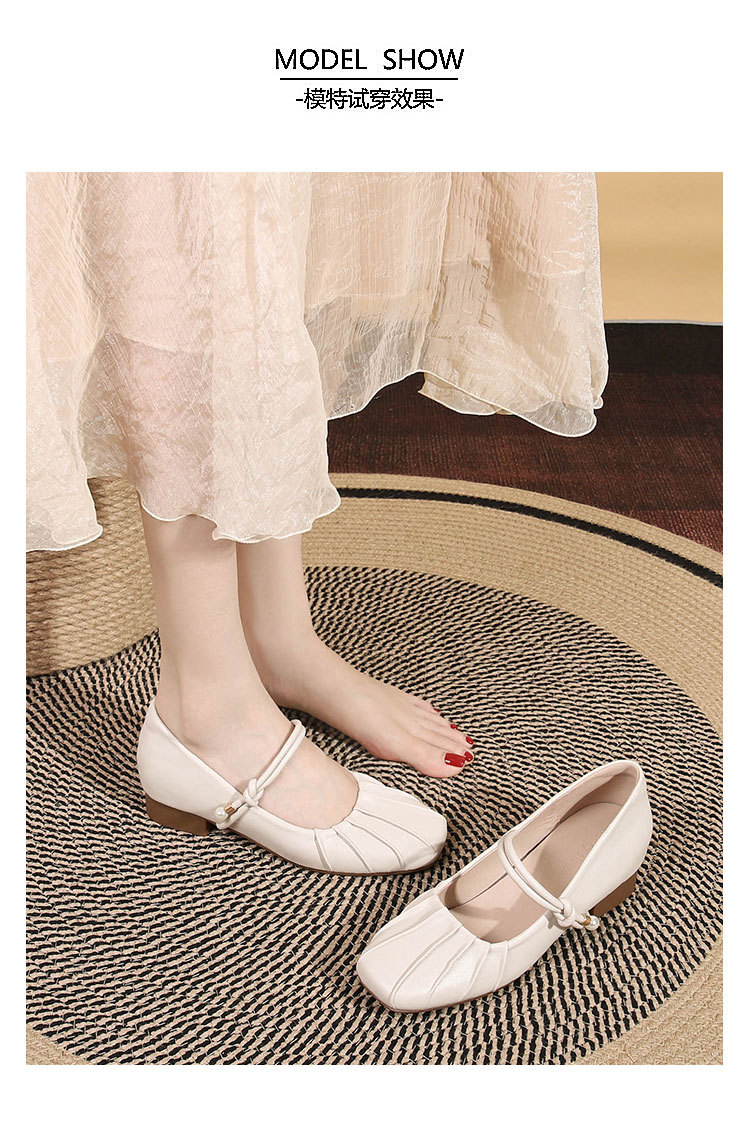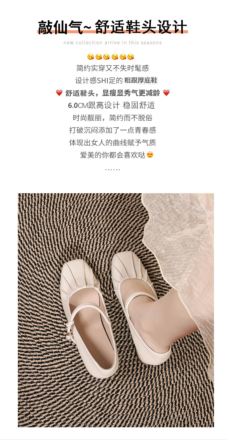 2024 새로운 한국 스타일 유행 올 매치 얕은 입 스퀘어 두꺼운 힐 신발 편안한 소프트 솔 메리 로우 힐 여성 신발스토어 가기