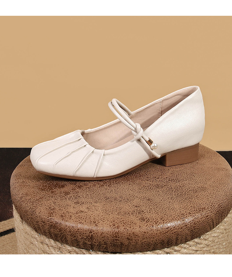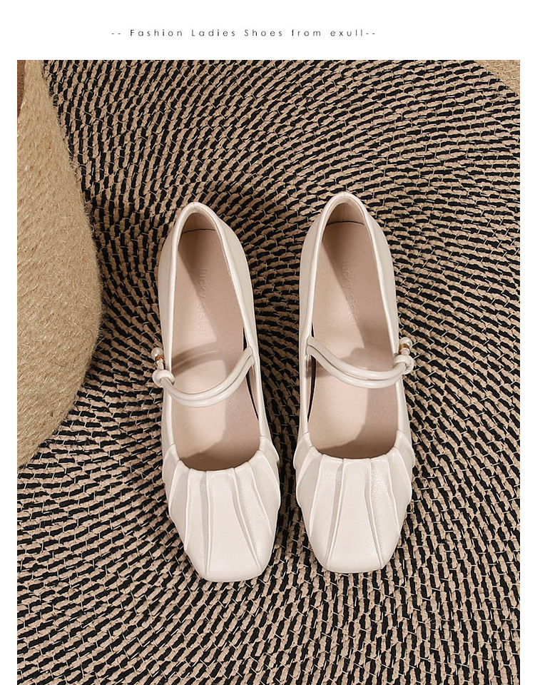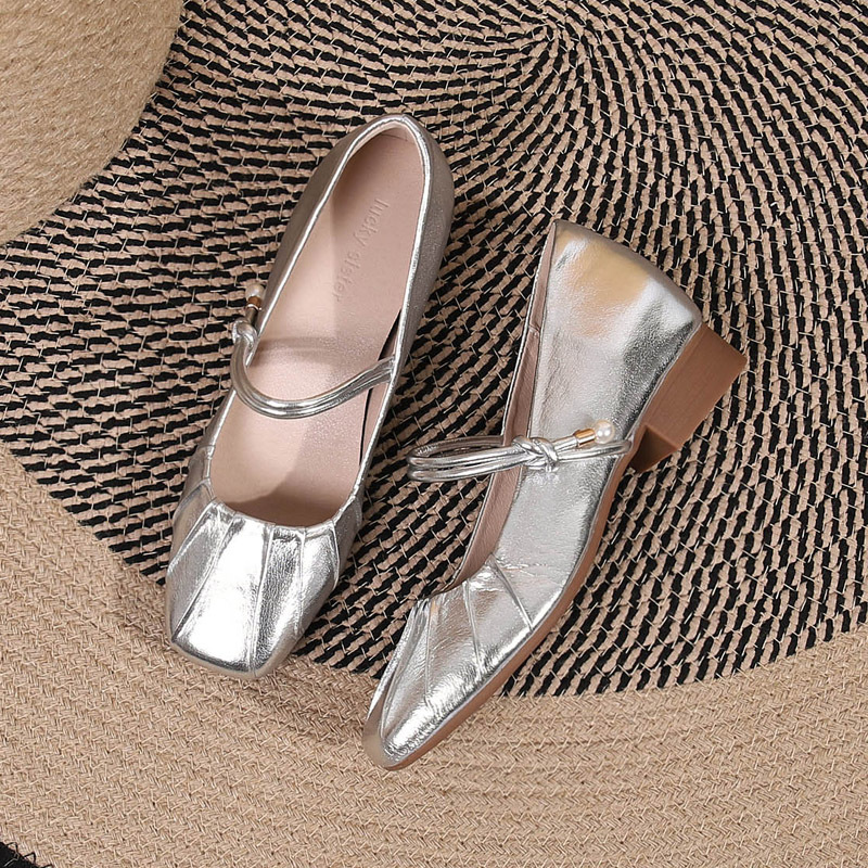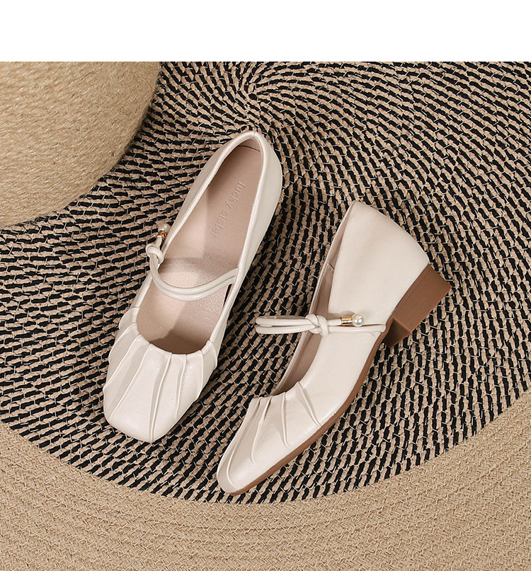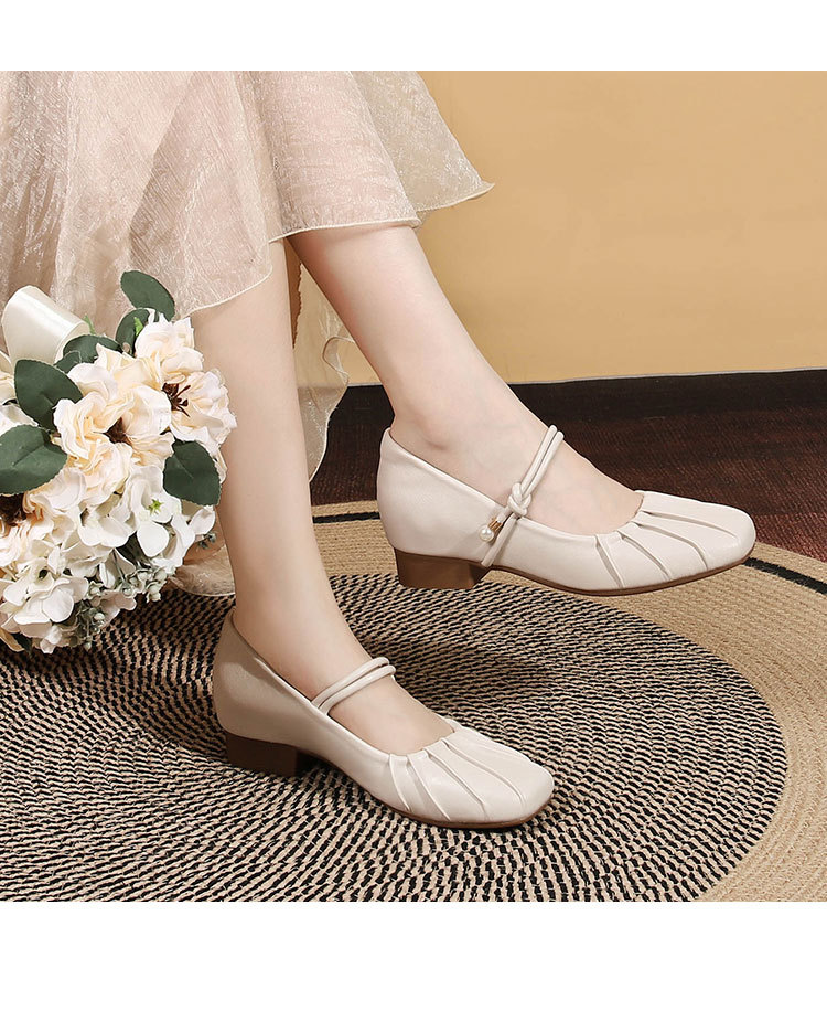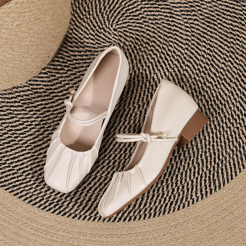 2024 새로운 한국 스타일 유행 올 매치 얕은 입 스퀘어 두꺼운 힐 신발 편안한 소프트 솔 메리 로우 힐 여성 신발스토어 가기