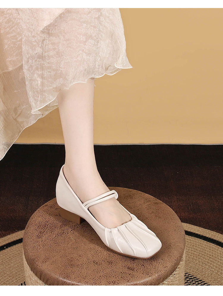 2024 새로운 한국 스타일 유행 올 매치 얕은 입 스퀘어 두꺼운 힐 신발 편안한 소프트 솔 메리 로우 힐 여성 신발