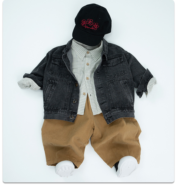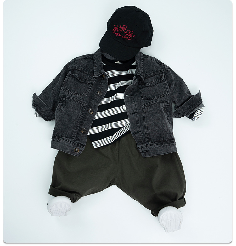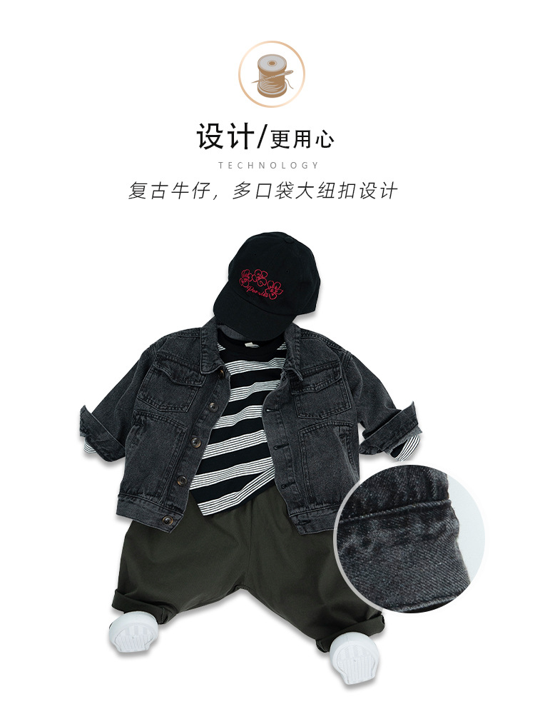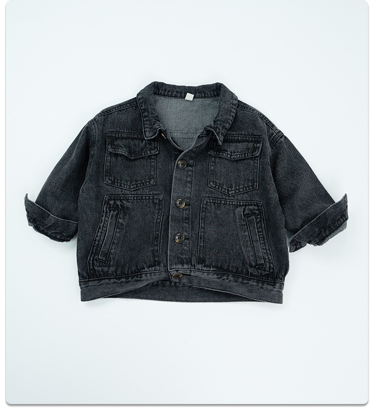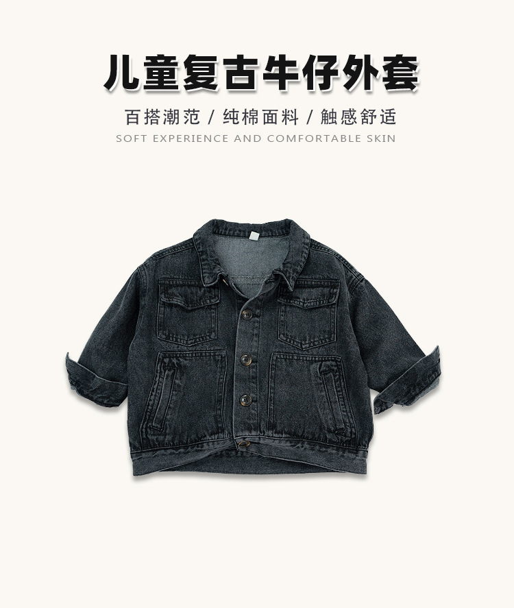 한국식 새 가을 의류 2025 소년 소녀 빈티지 데님 재킷 재킷 중소형 아동용 스플라이스 짧은 오토바이 재킷스토어 가기