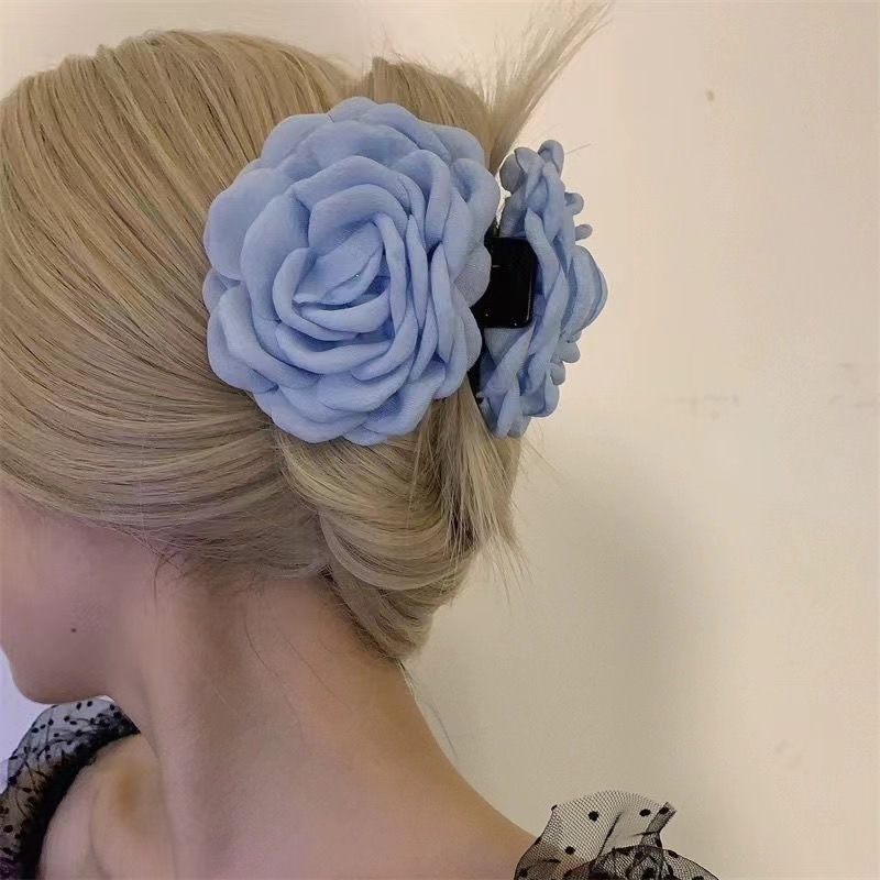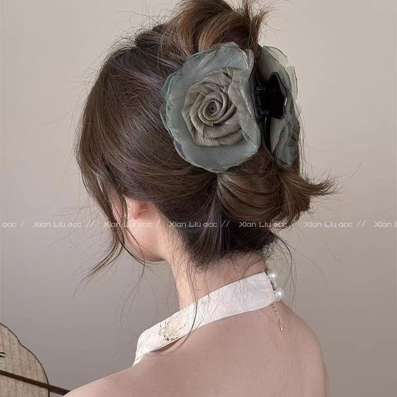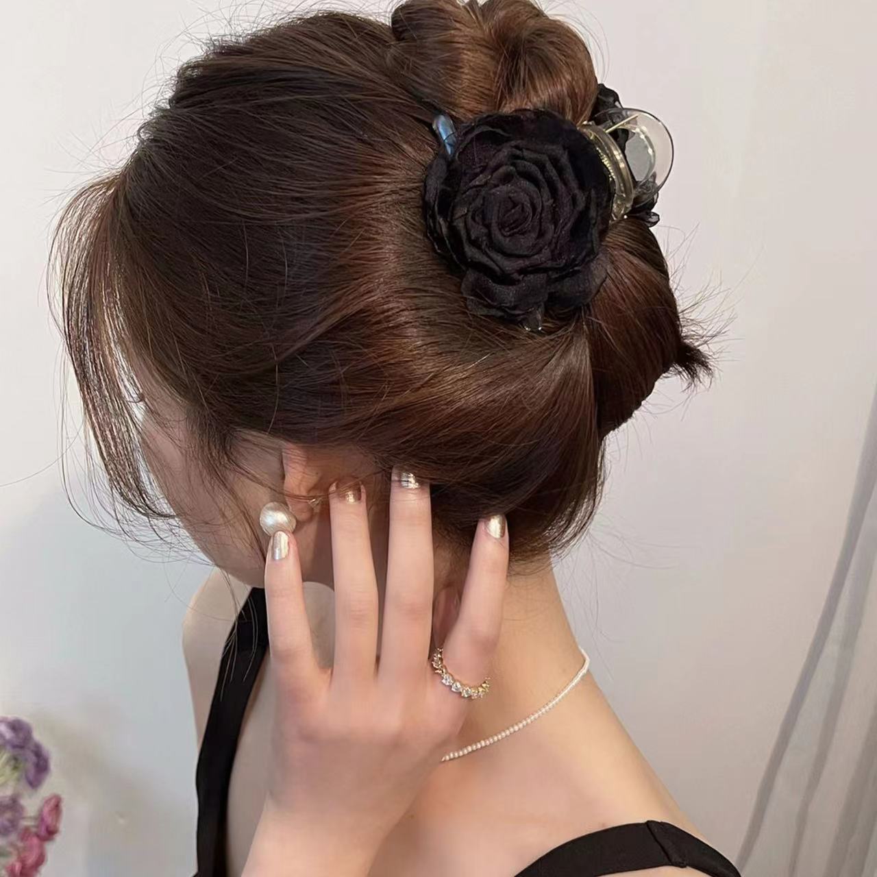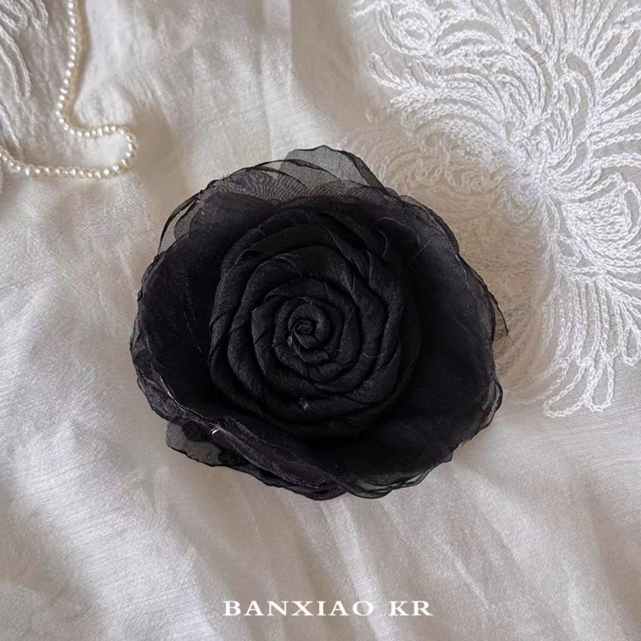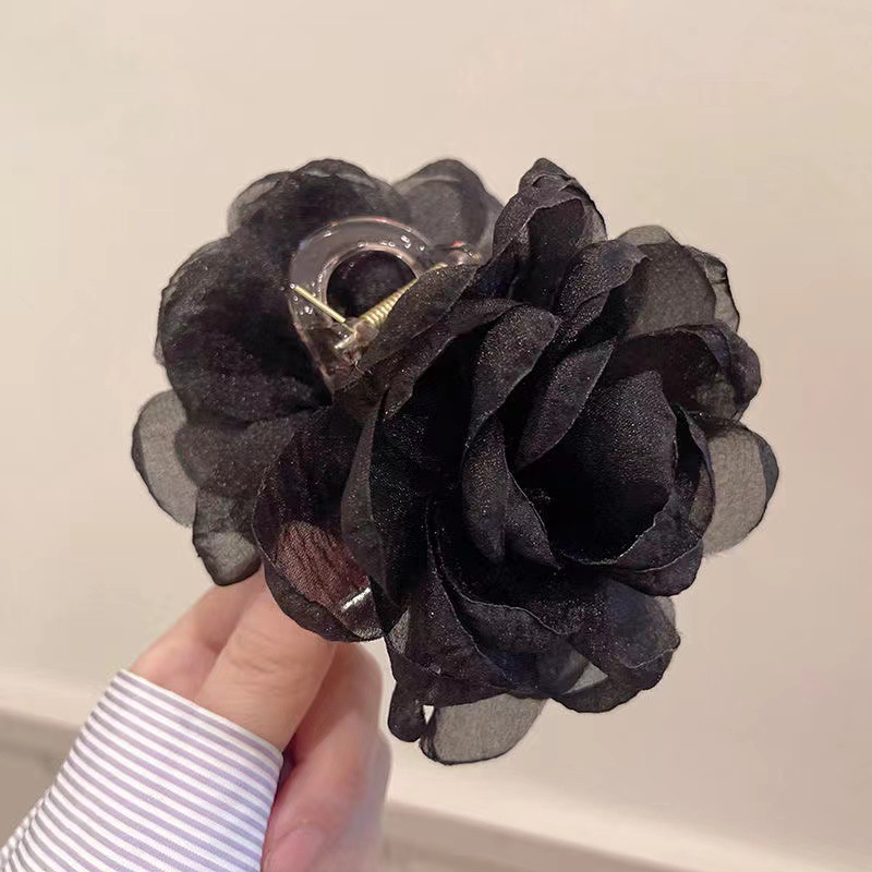 대형 입체 검정 장미꽃 머리핀 유럽풍 뒷머리 포인트 헤어핀 샤크클립 슈퍼 예쁜 사진 촬영용 헤어 액세서리