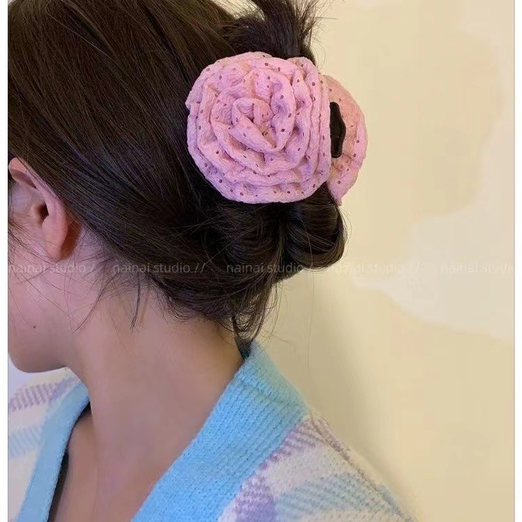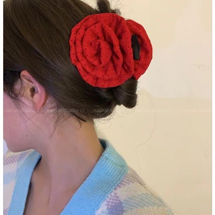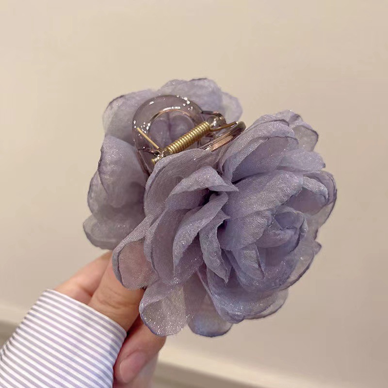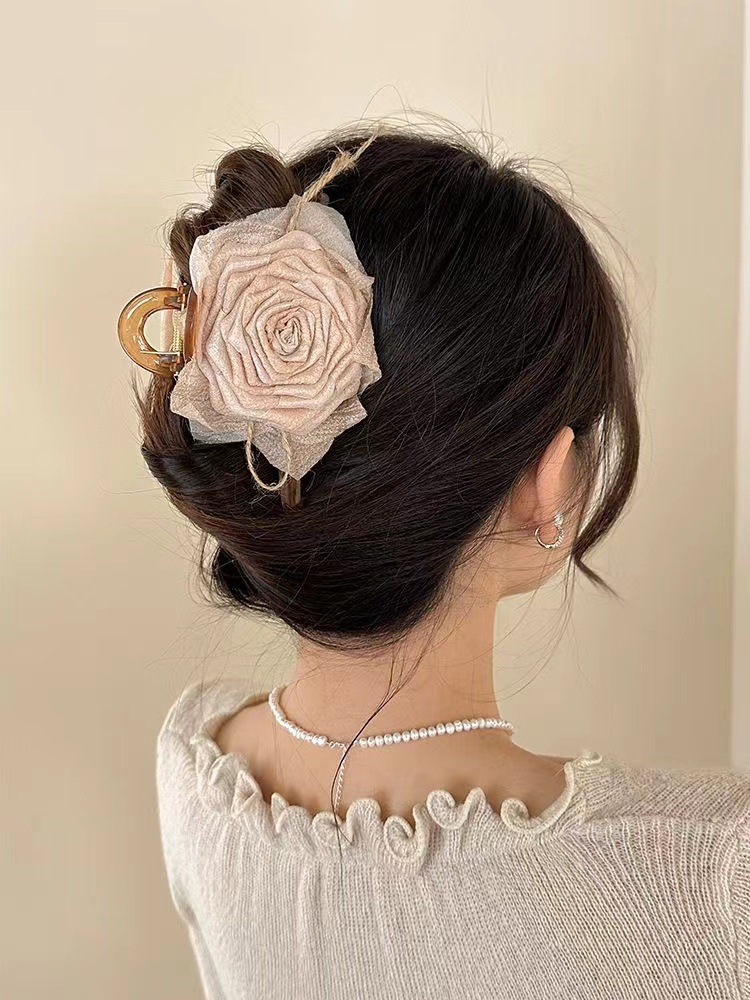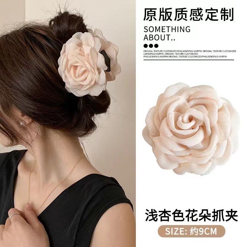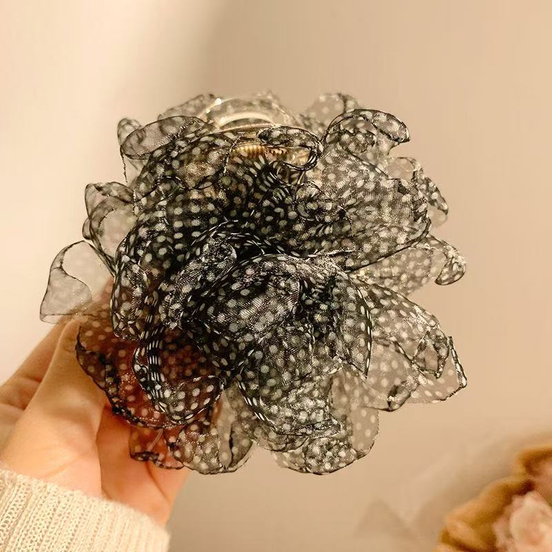 대형 입체 검정 장미꽃 머리핀 유럽풍 뒷머리 포인트 헤어핀 샤크클립 슈퍼 예쁜 사진 촬영용 헤어 액세서리