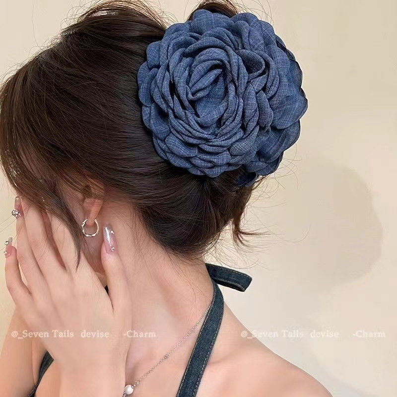 • 데님 블루 로즈 클립