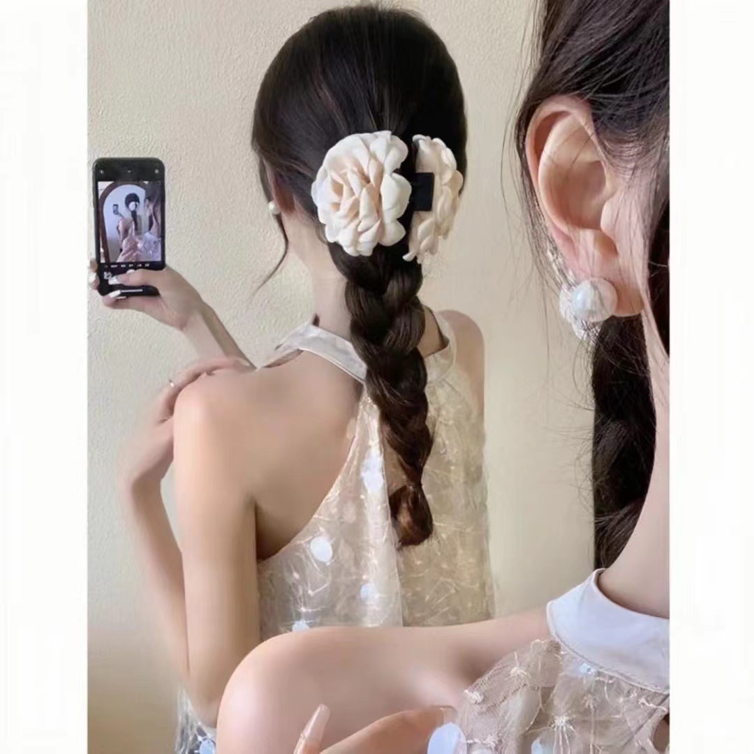 대형 입체 검정 장미꽃 머리핀 유럽풍 뒷머리 포인트 헤어핀 샤크클립 슈퍼 예쁜 사진 촬영용 헤어 액세서리스토어 가기