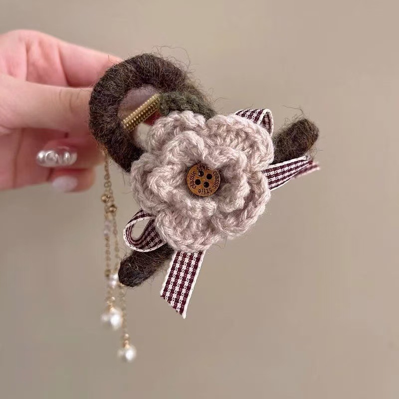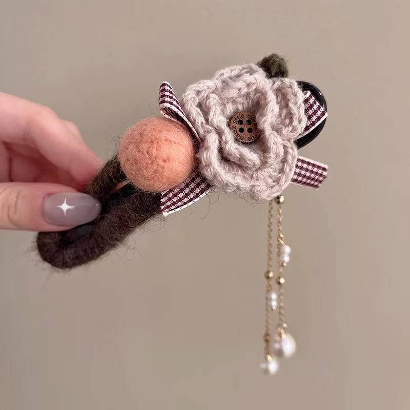 • 베이지 니트 헤어 클립