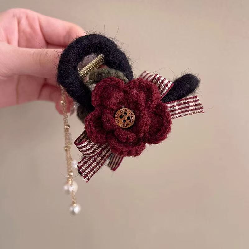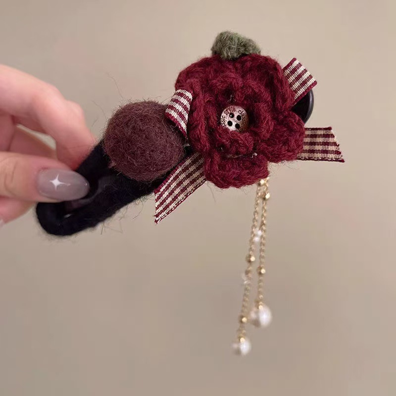 • 빨간색 니트 털실 머리핀