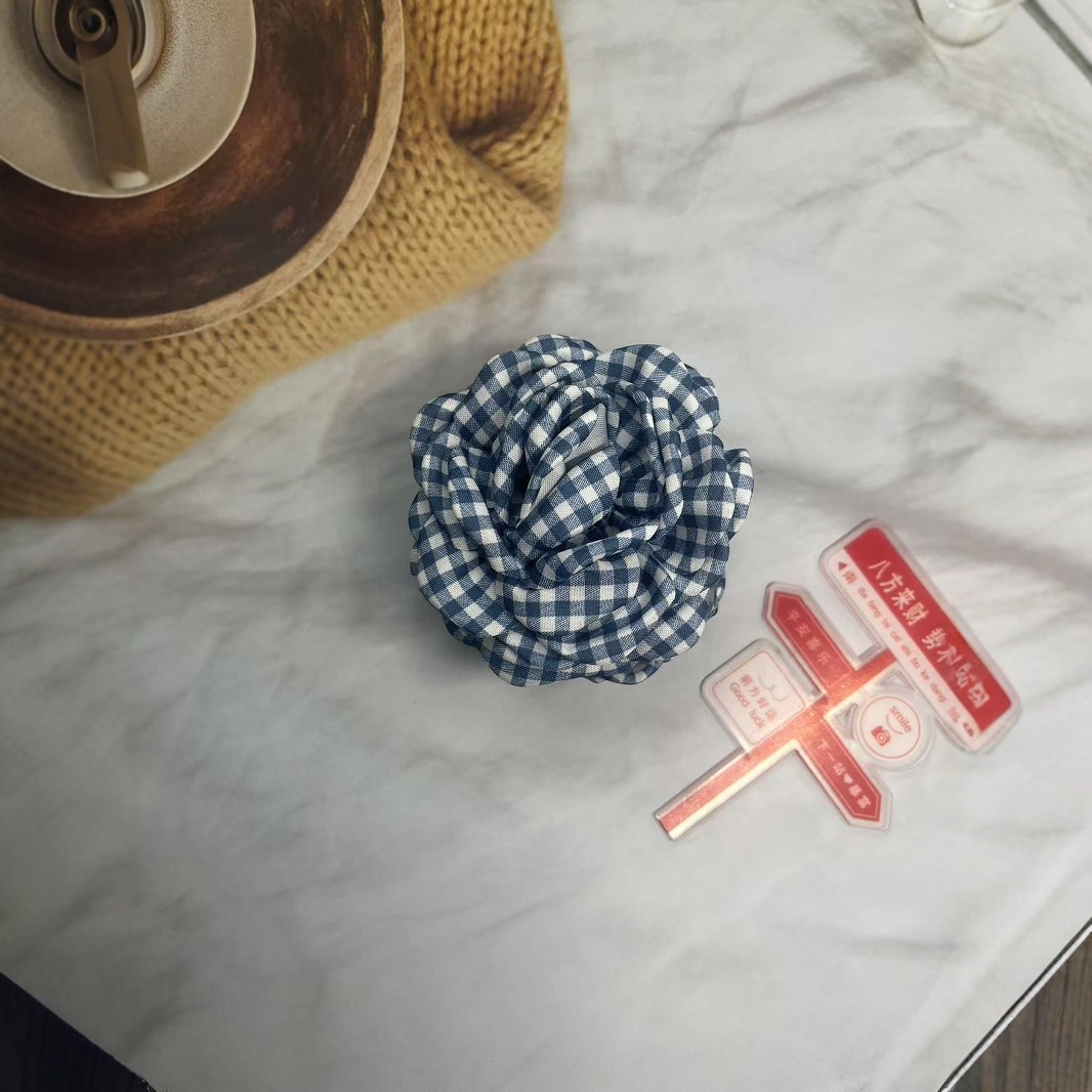 • 파란색 체크무늬 머리핀