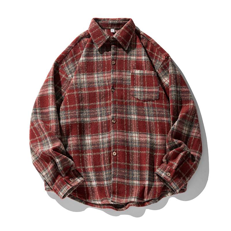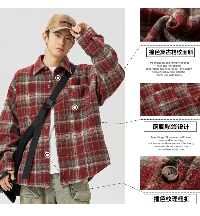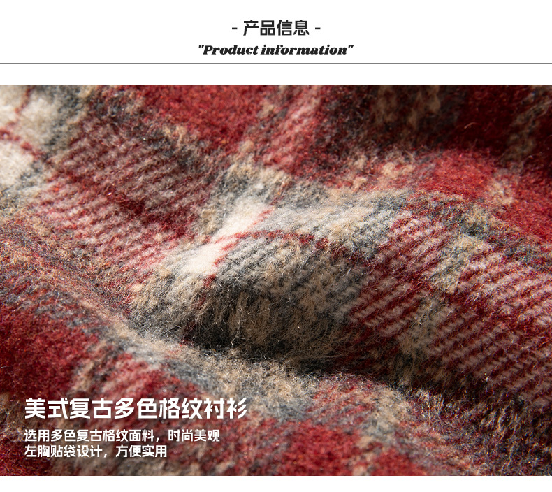 미국 레트로 체크무늬 긴팔 셔츠 남성용 봄 신상품 카라 포켓 셔츠 텍스처 루즈핏 커플 셔츠 여성용