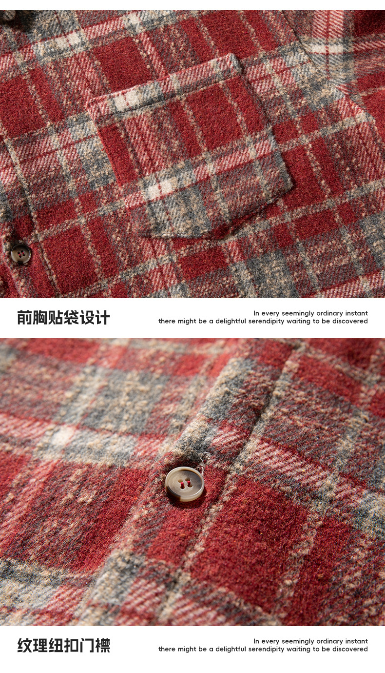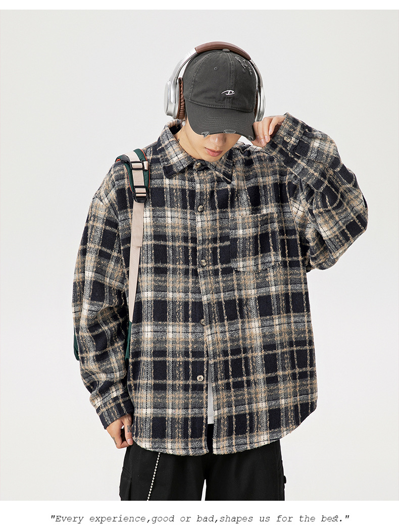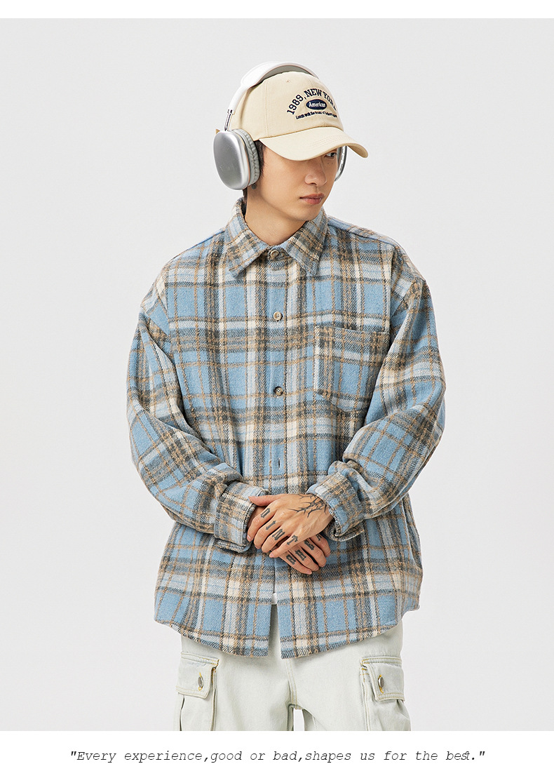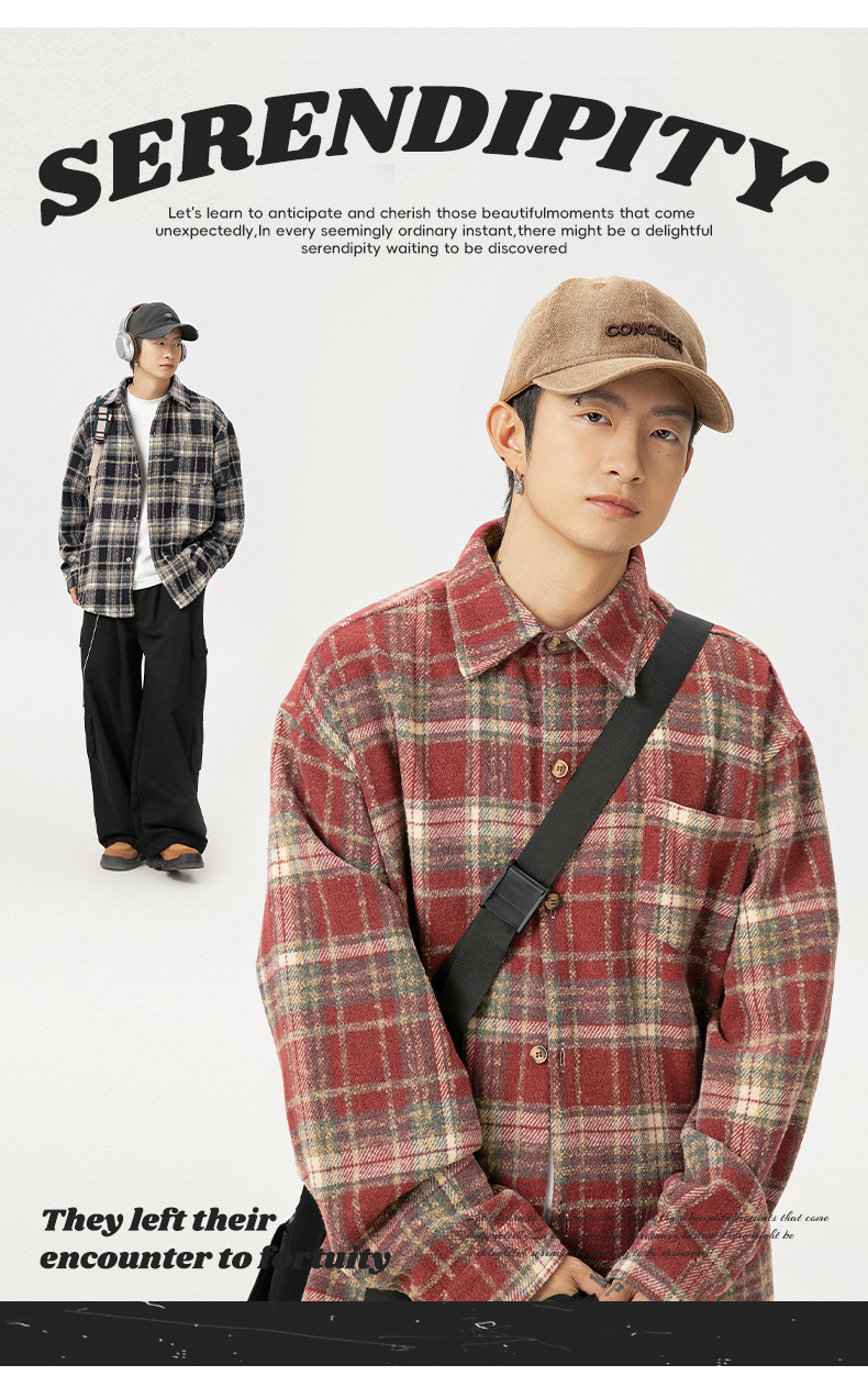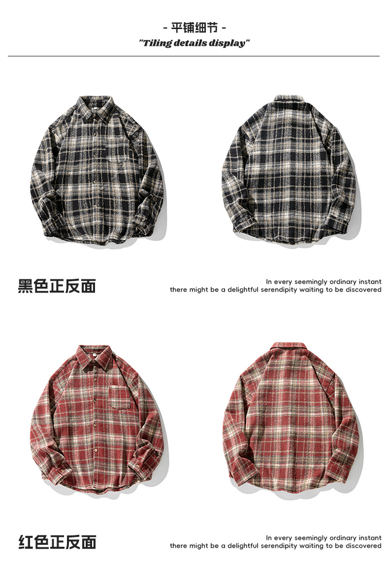 미국 레트로 체크무늬 긴팔 셔츠 남성용 봄 신상품 카라 포켓 셔츠 텍스처 루즈핏 커플 셔츠 여성용스토어 가기