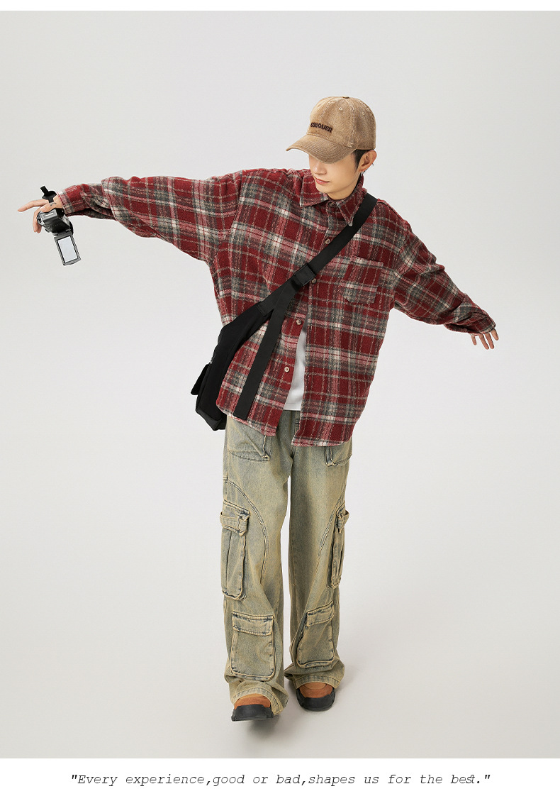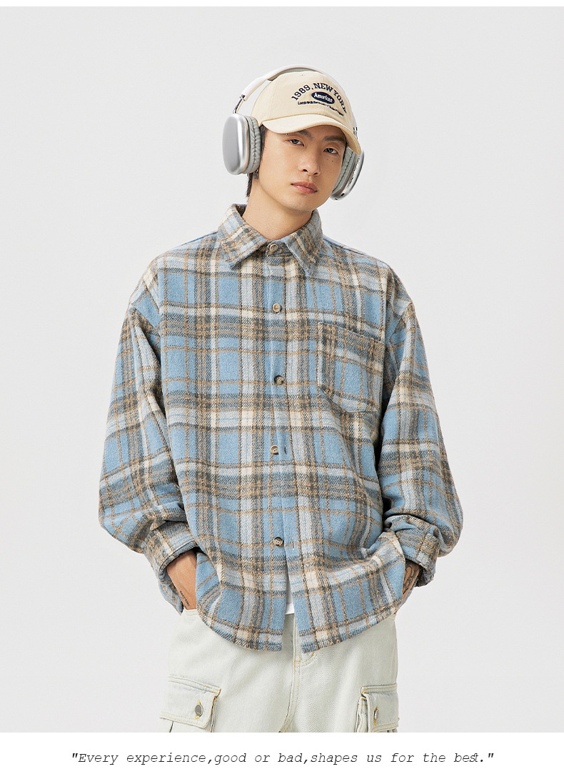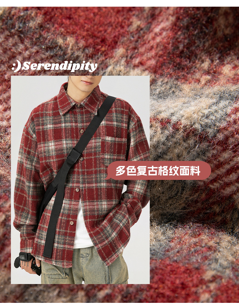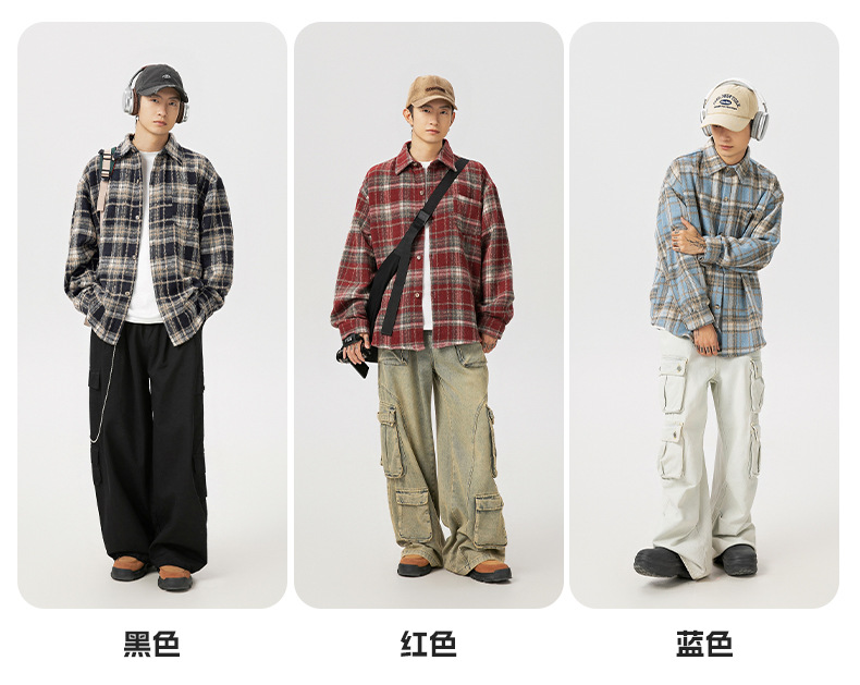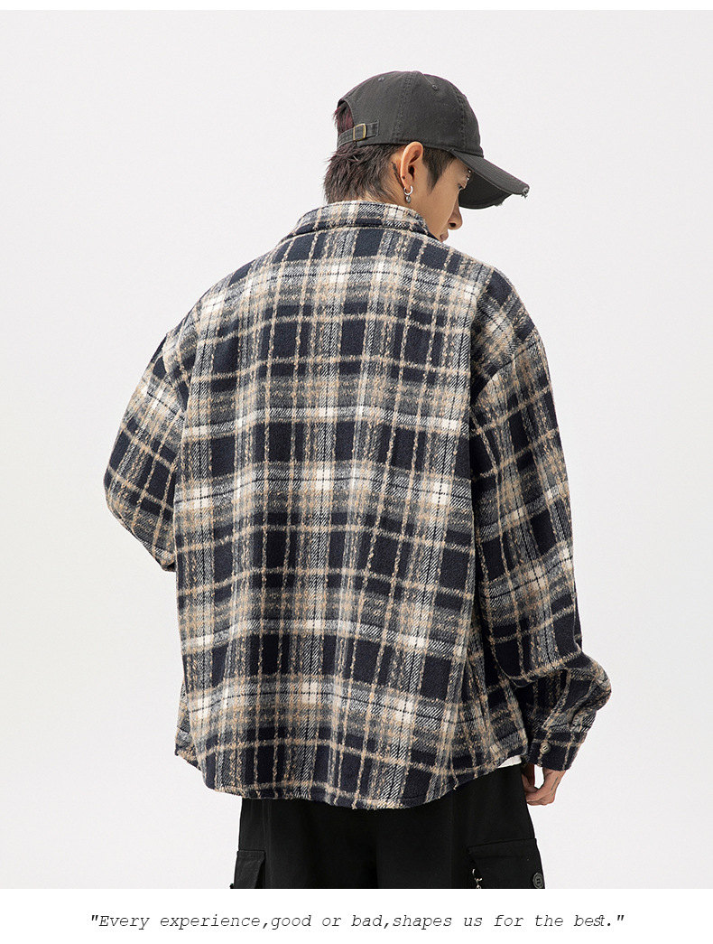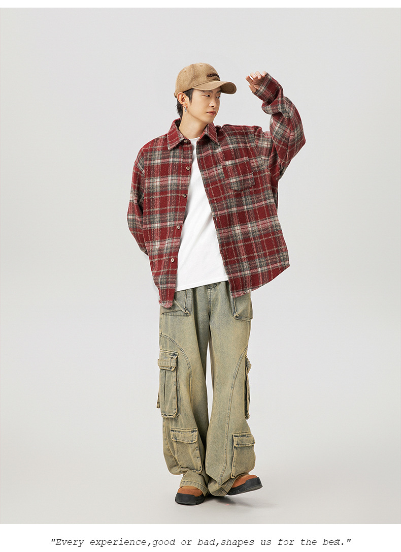미국 레트로 체크무늬 긴팔 셔츠 남성용 봄 신상품 카라 포켓 셔츠 텍스처 루즈핏 커플 셔츠 여성용스토어 가기