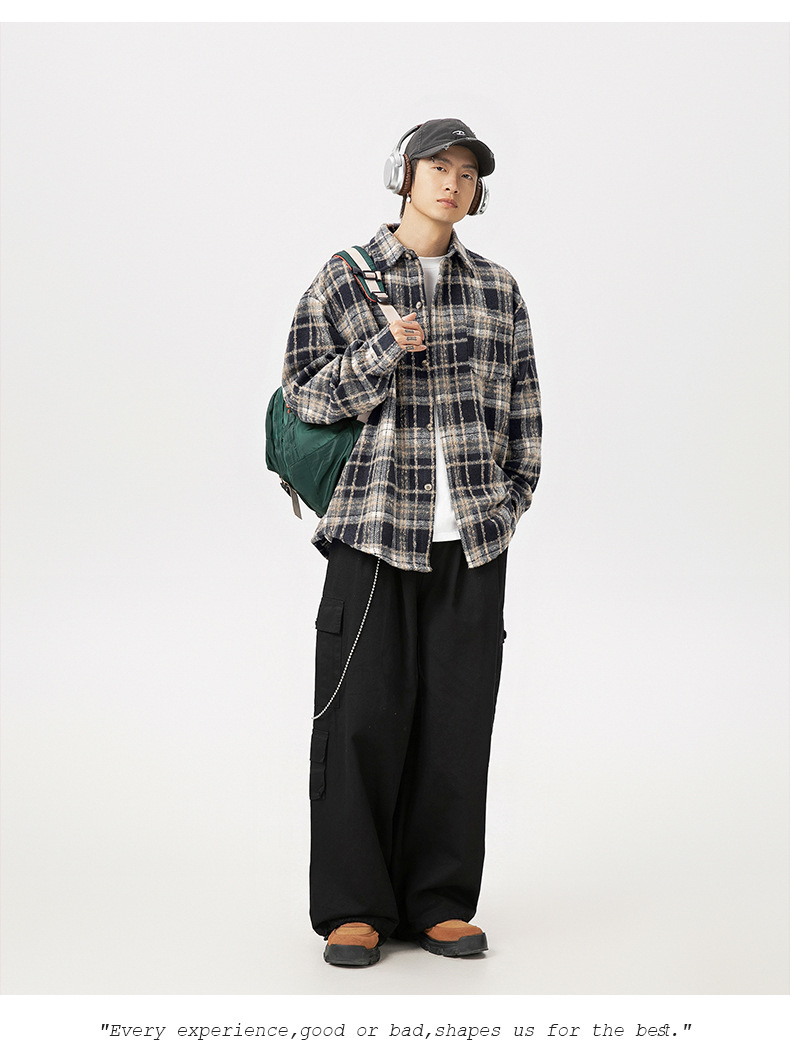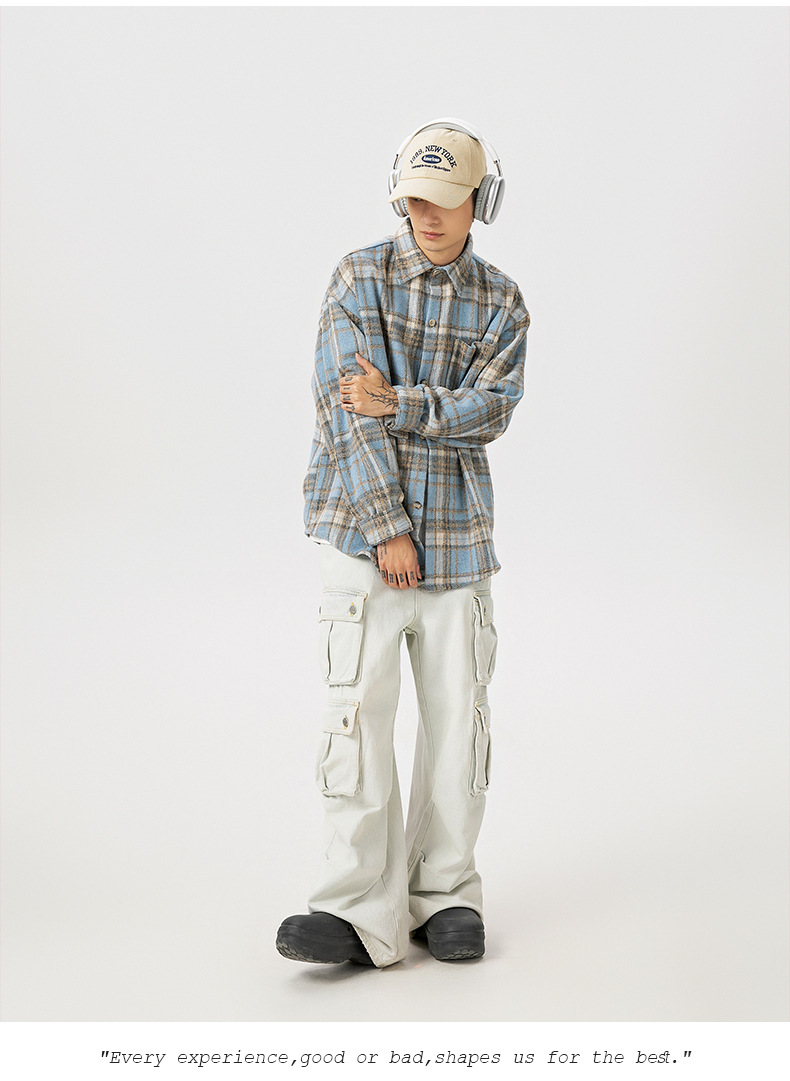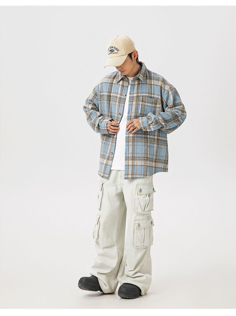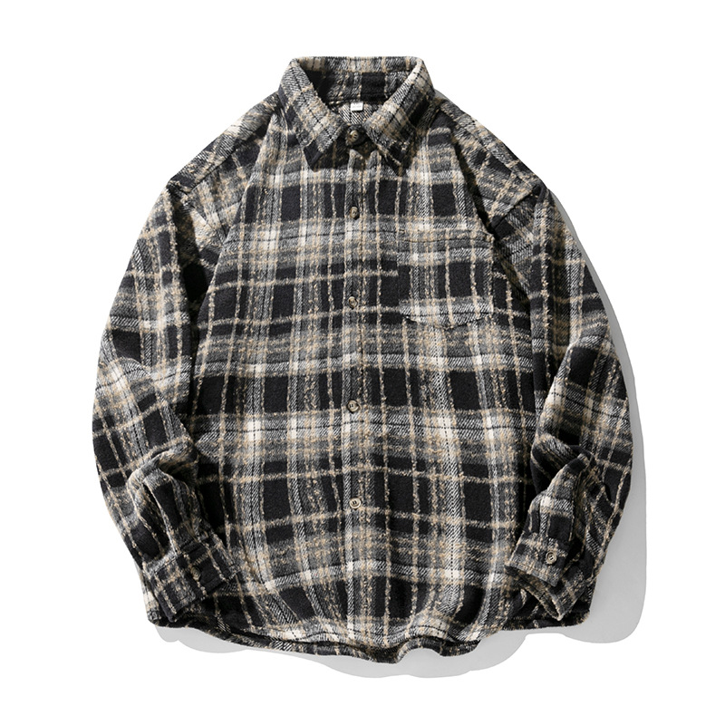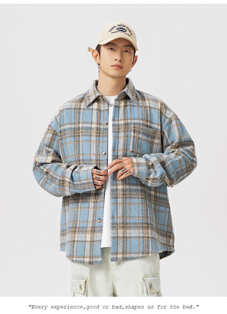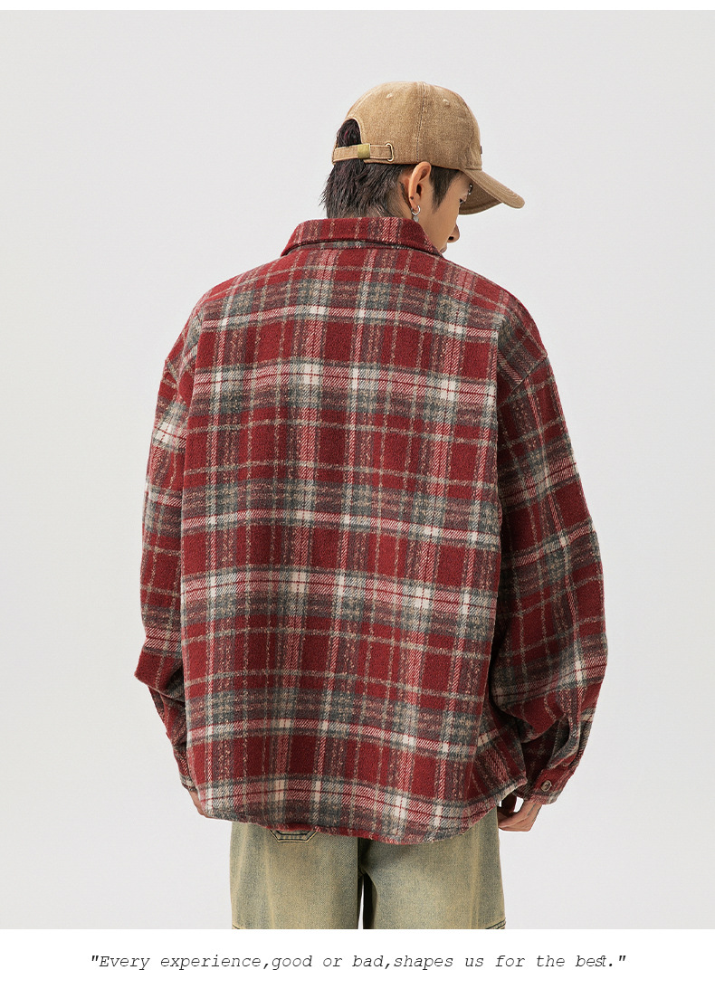 미국 레트로 체크무늬 긴팔 셔츠 남성용 봄 신상품 카라 포켓 셔츠 텍스처 루즈핏 커플 셔츠 여성용스토어 가기