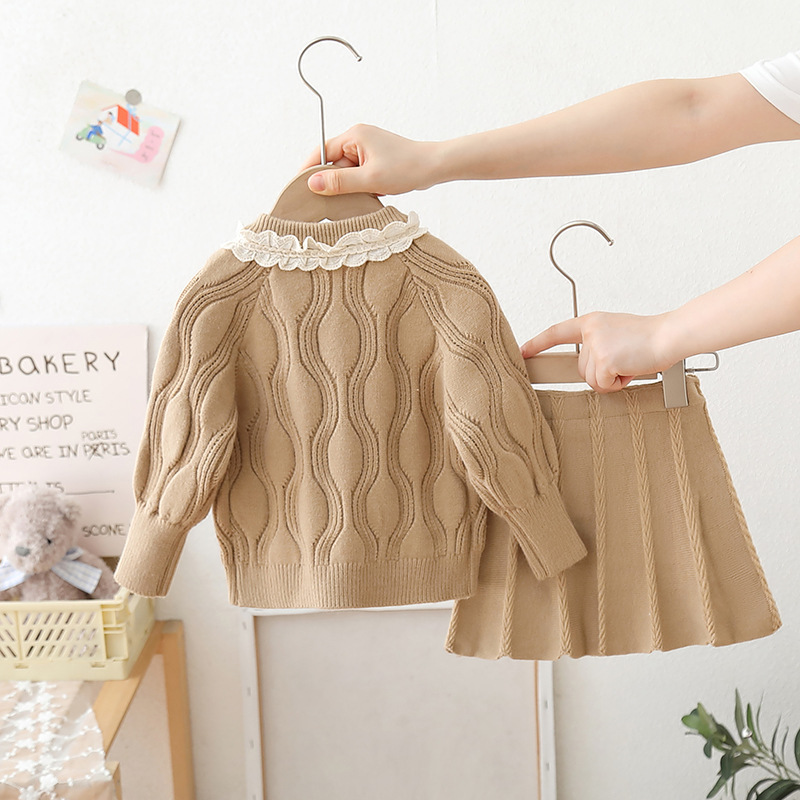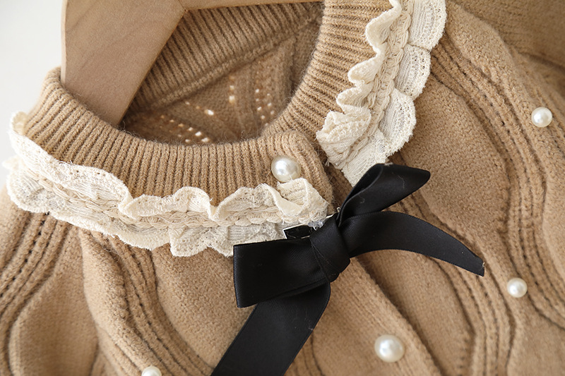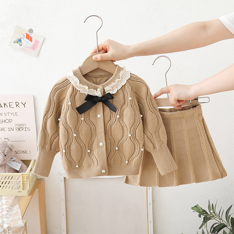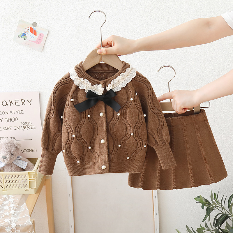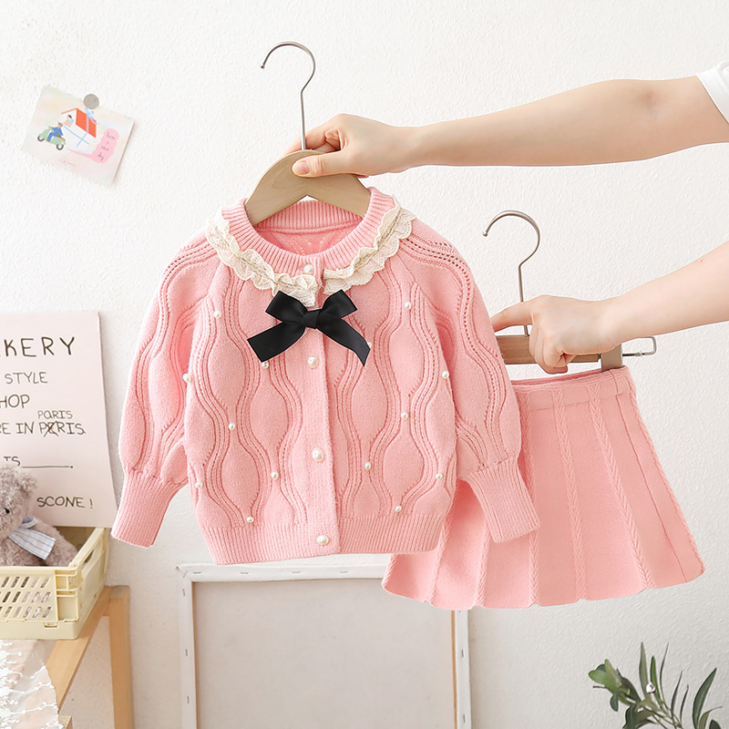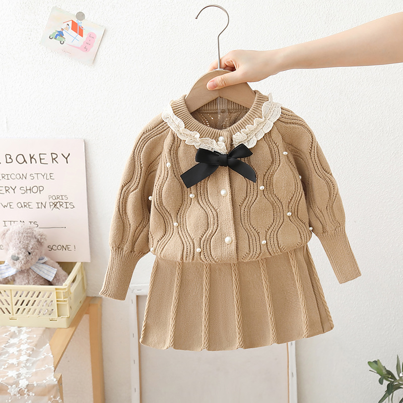 2024 년 어린이 스웨터 가을과 겨울 소녀 단색 활 투피스 니트 조수의 새로운 한국어 버전