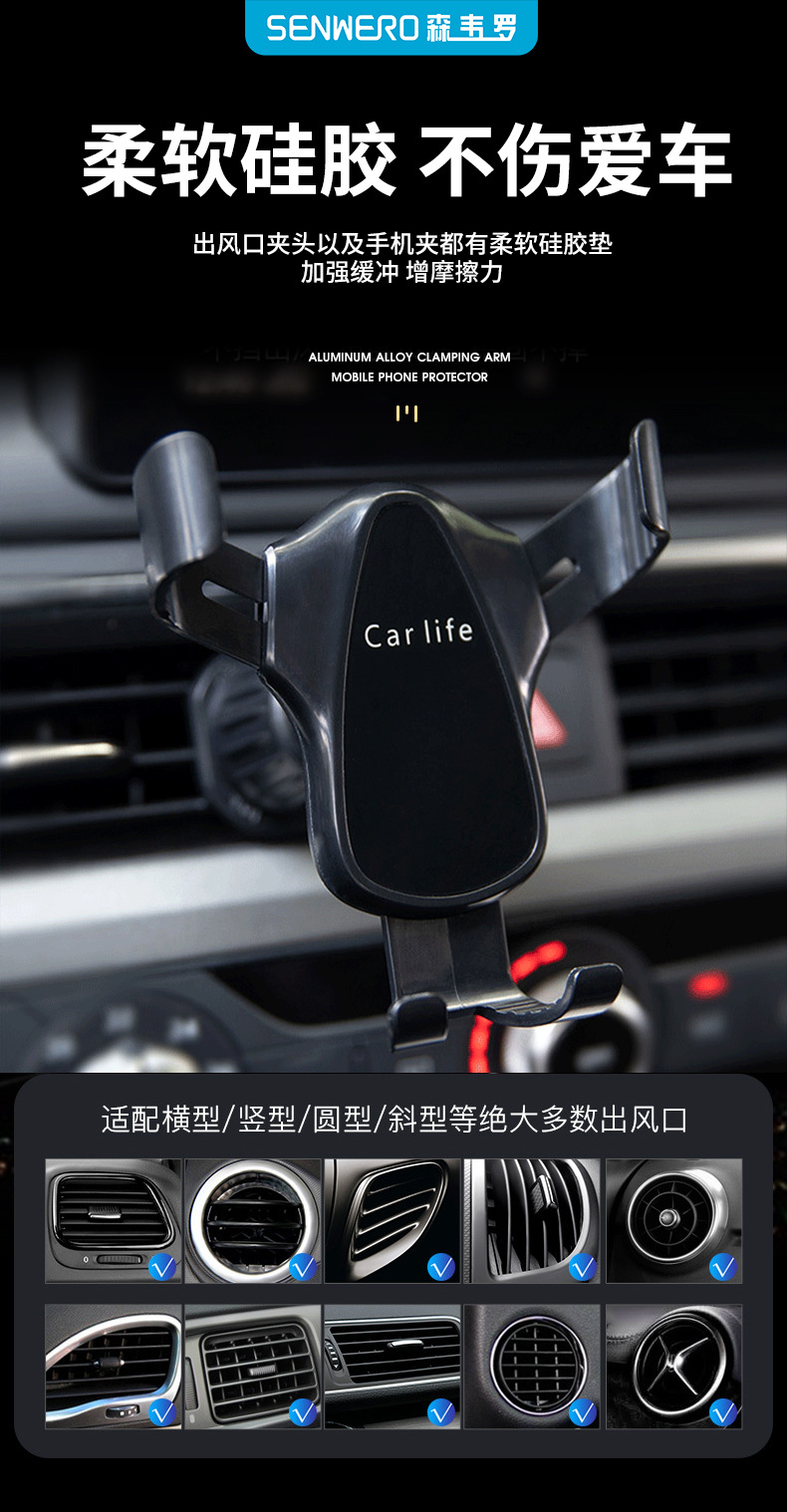 차량용 휴대폰 거치대 삼각 중력 거치대 에어벤트 내비게이션 후크형 고정 차량용 휴대폰 거치대