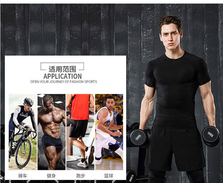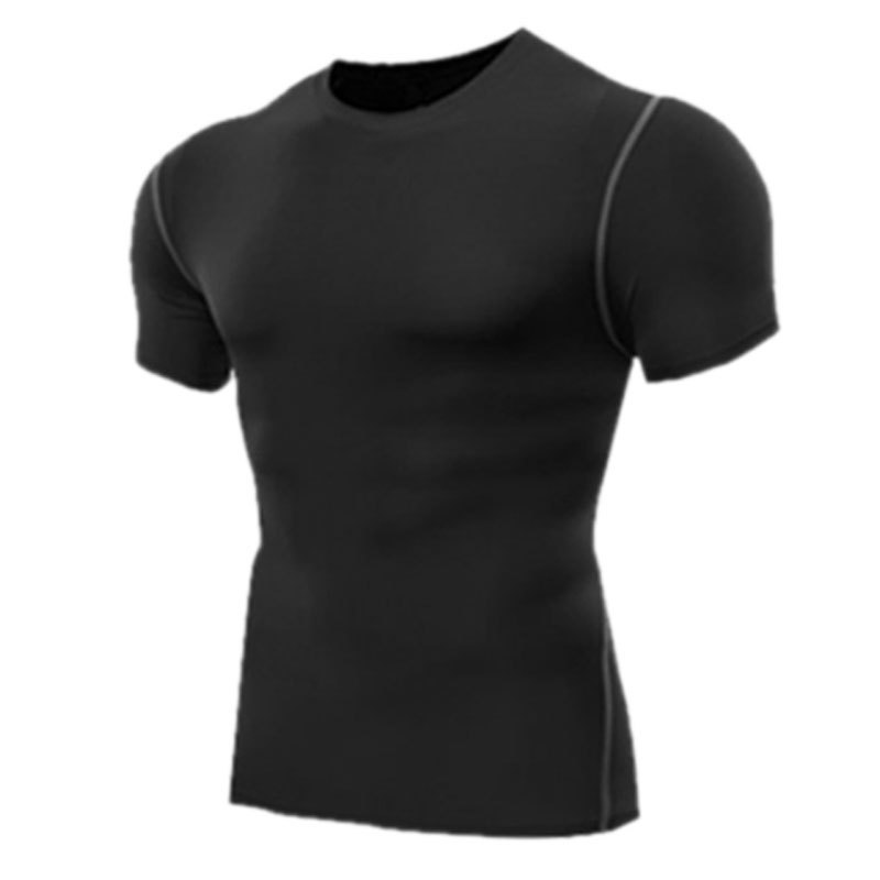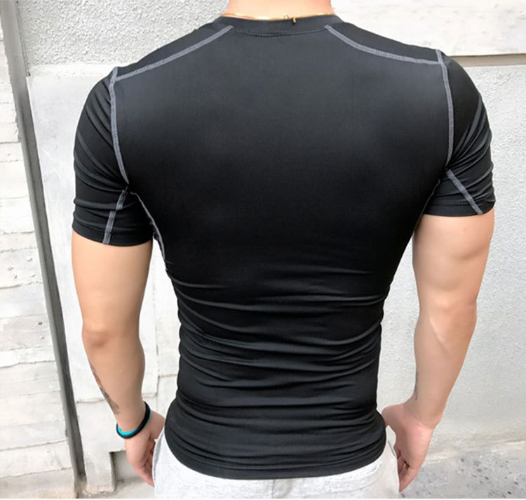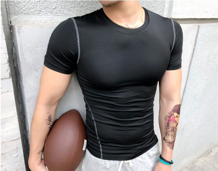 흑백 스포츠 타이트한 옷 반팔 남자 티셔츠 농구 달리기 통기성 기지 셔츠 피트니스 옷 빠른 건조 고탄성 훈련