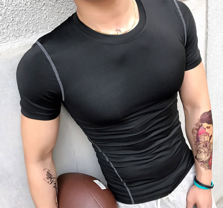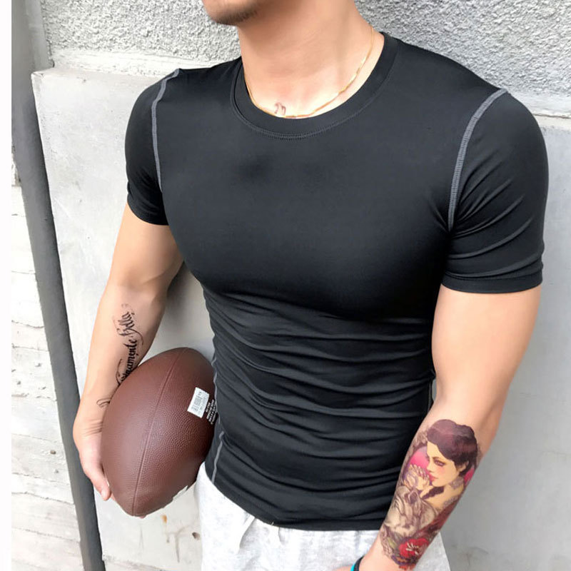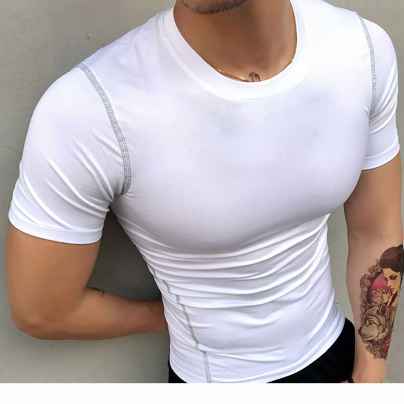 흑백 스포츠 타이트한 옷 반팔 남자 티셔츠 농구 달리기 통기성 기지 셔츠 피트니스 옷 빠른 건조 고탄성 훈련스토어 가기
