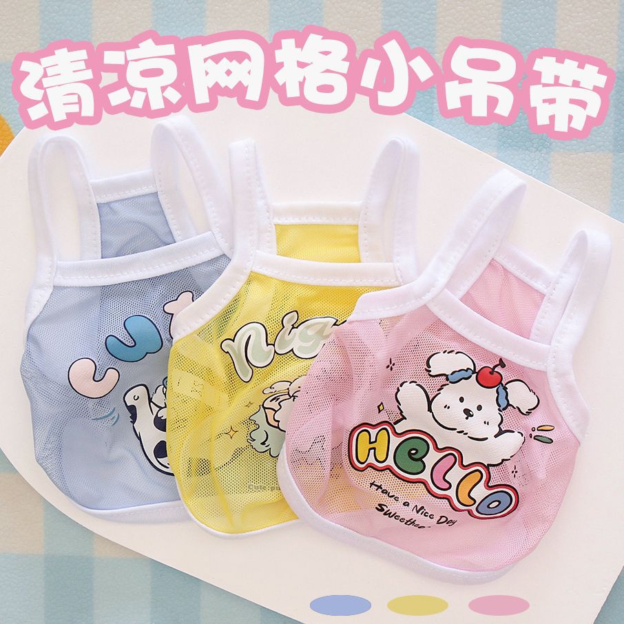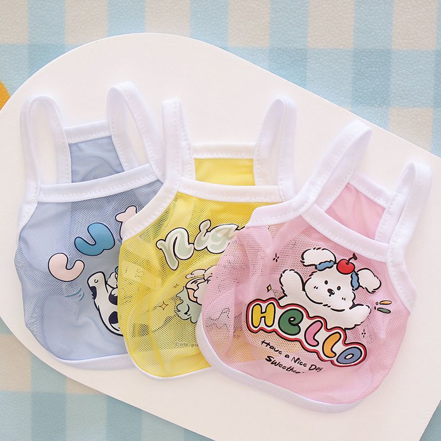 고양이와 개 옷 귀여운 여름 얇은 통기성 작은 메쉬 카미 솔 귀여운 동물 인쇄 유니버설 옷스토어 가기