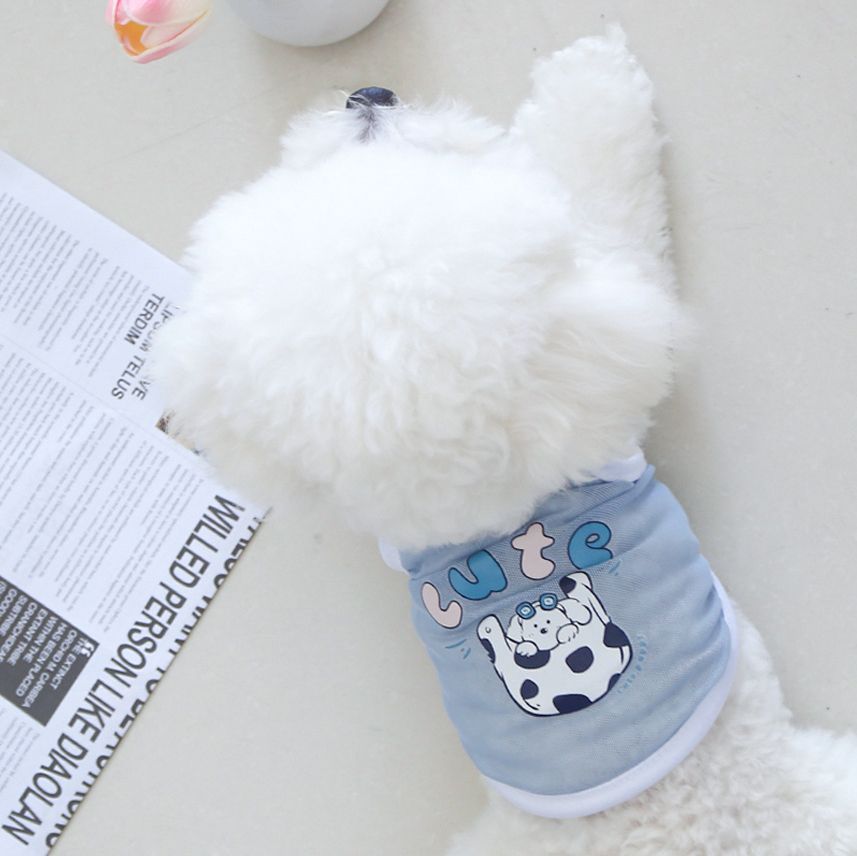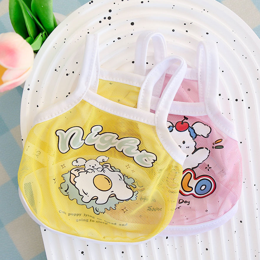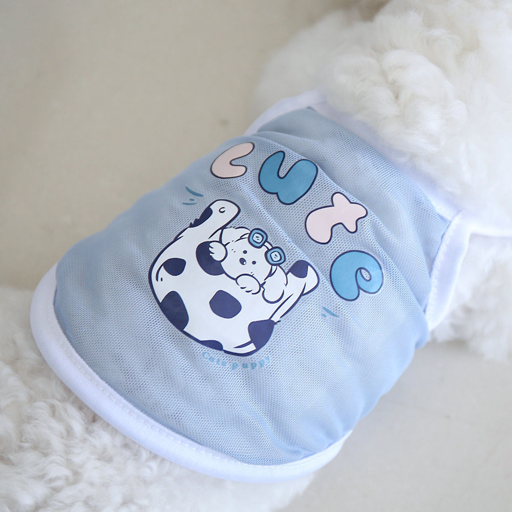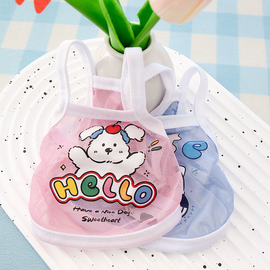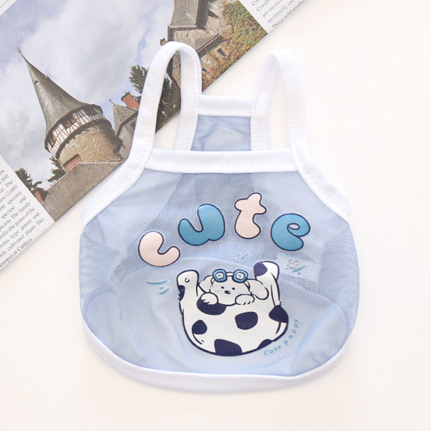 고양이와 개 옷 귀여운 여름 얇은 통기성 작은 메쉬 카미 솔 귀여운 동물 인쇄 유니버설 옷