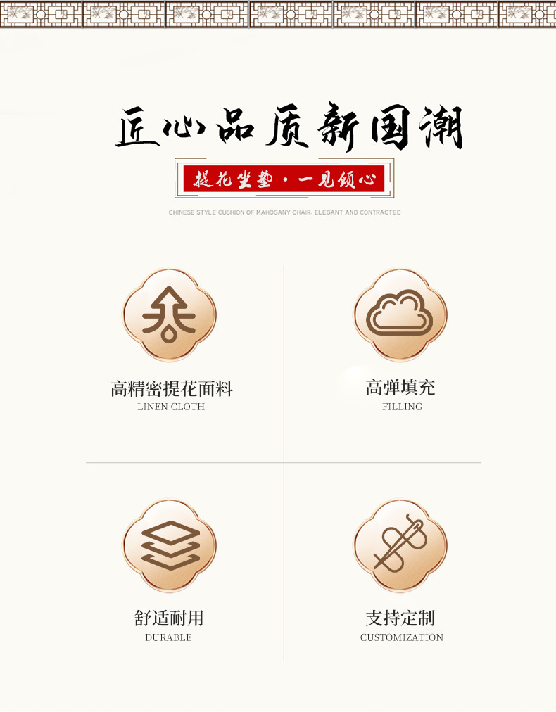 고정밀 자카드 로즈우드 의자 쿠션 로즈우드 소파 베개 쿠션 중국 좌석 쿠션 솔리드 우드 서클 의자스토어 가기