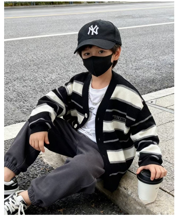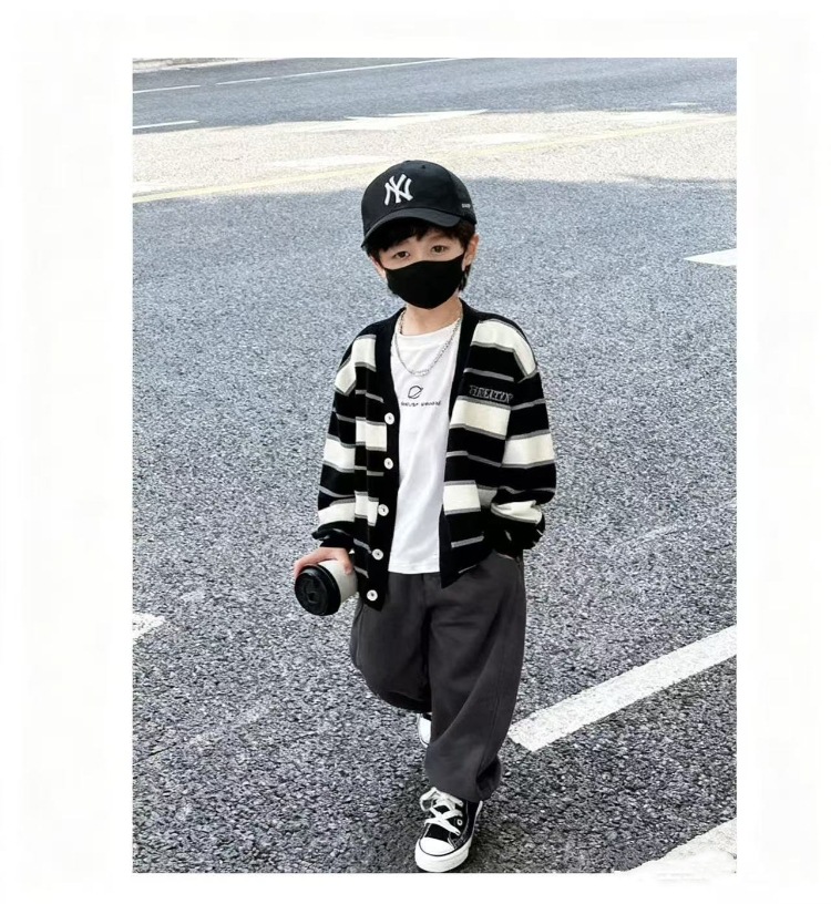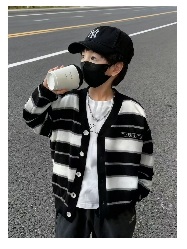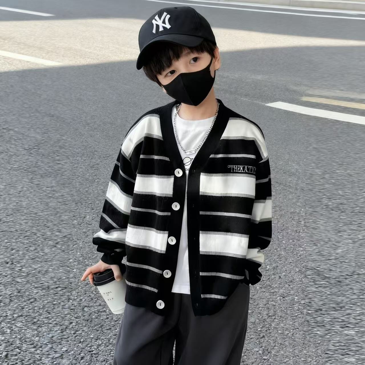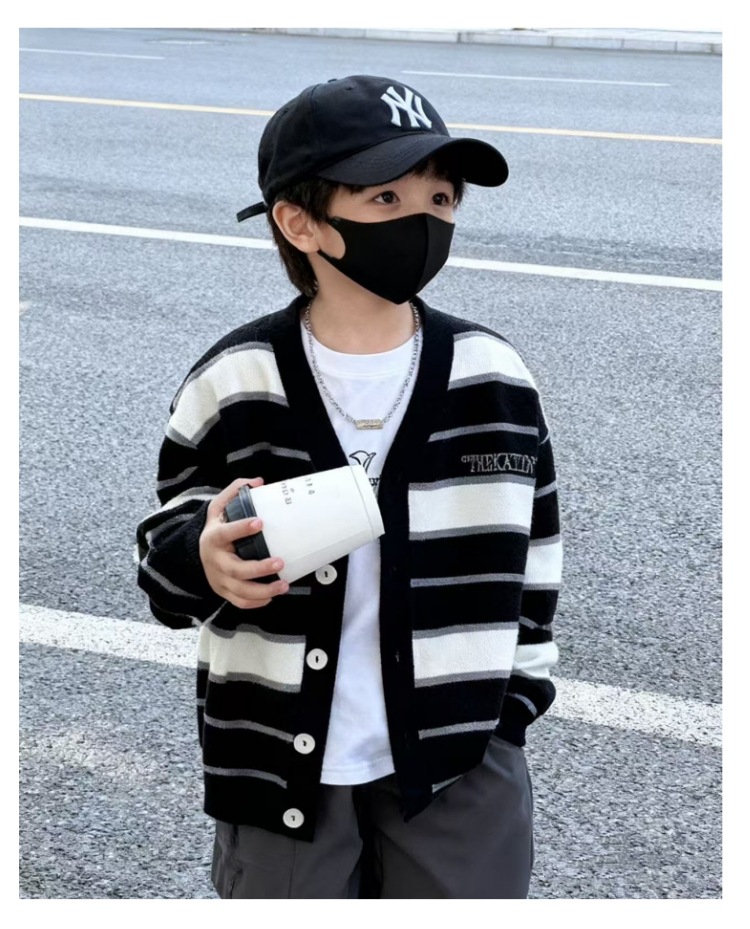 남아 니트 가디건 아동용 코트 2025 가을 겨울 신상 캐주얼 스트라이프 스웨터 니트웨어 상의 아동복