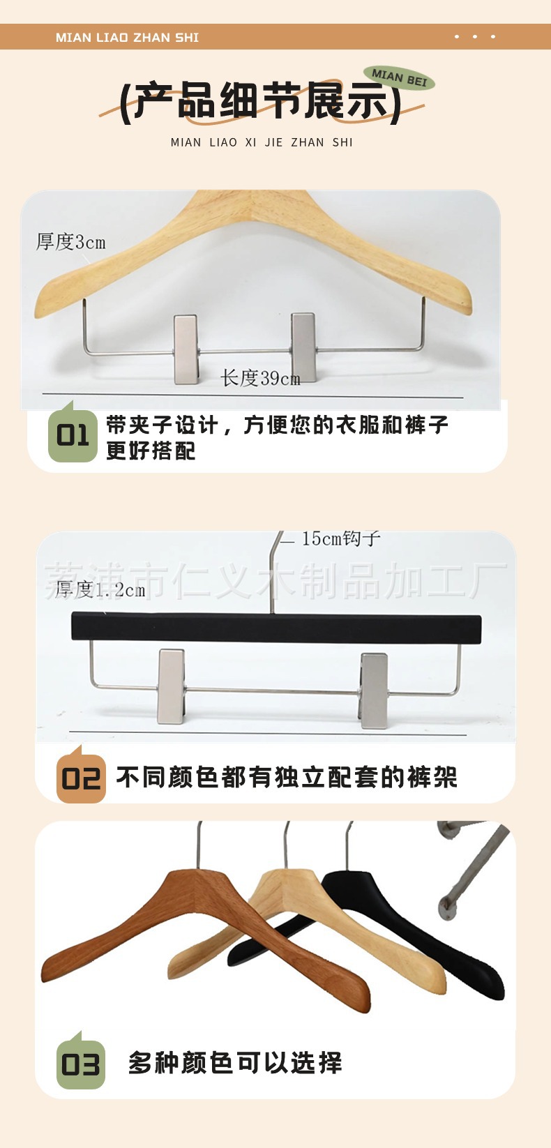 Renyi 고급 터치 래커 의류 매장 호두 원목 블랙 고급 무봉제 원목 옷걸이 미끄럼 방지 나무 옷걸이스토어 가기