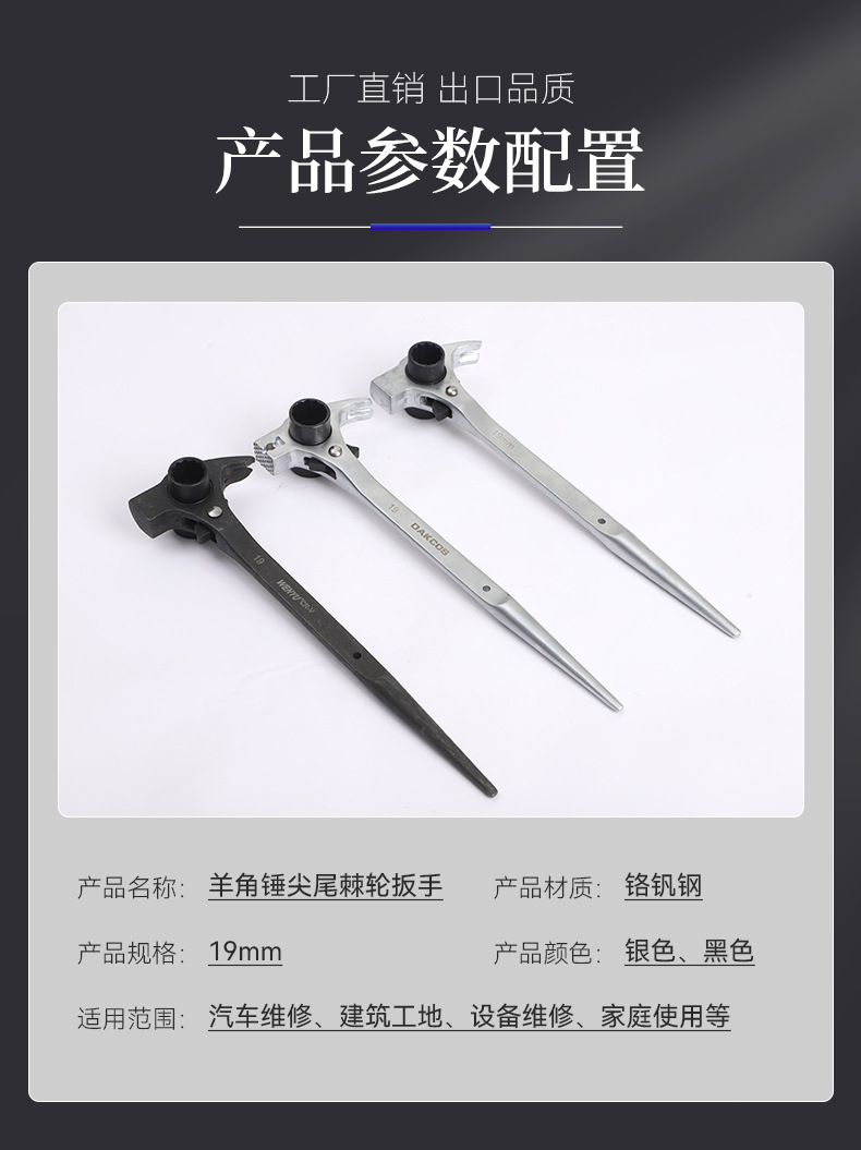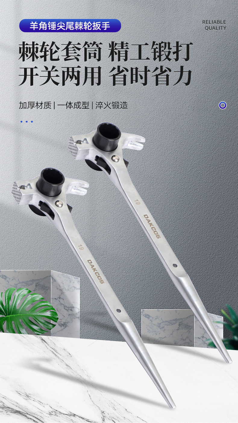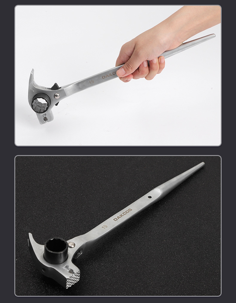다용도 목공용 래칫 렌치, 끝이 뾰족한 망치형 렌치, 내구성 있는 래칫식 공구