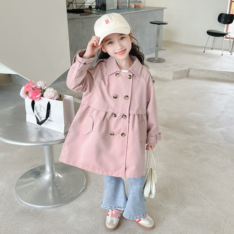 소녀 바람막이 코트 가을 2024 새로운 어린이 영국 스타일 더블 브레스트 탑 아기 소녀 코트 중간 길이