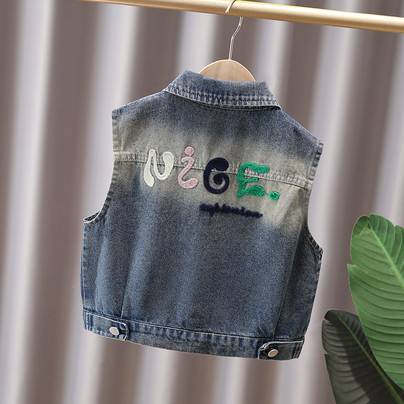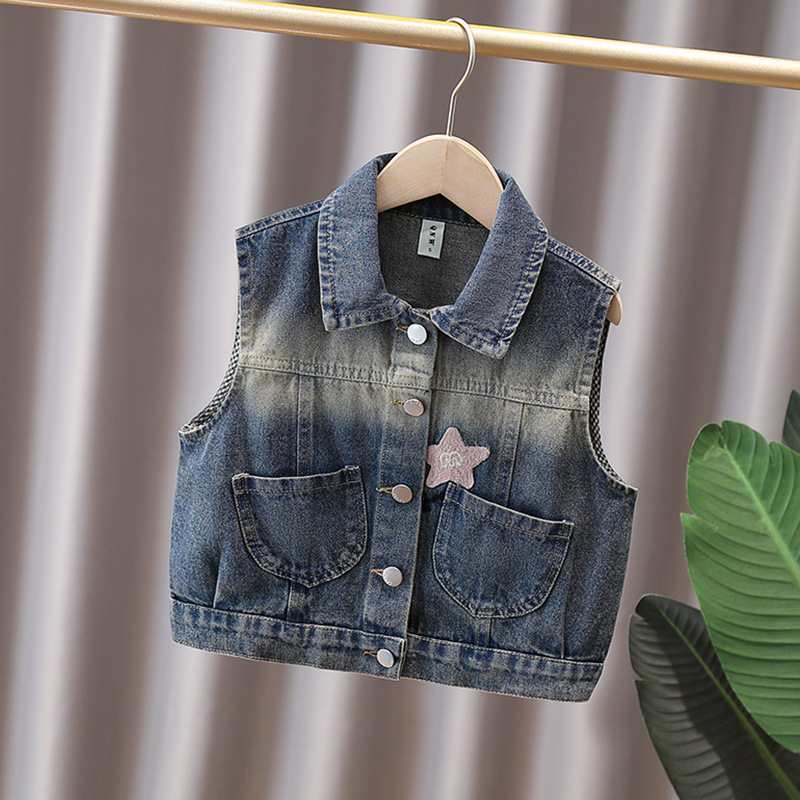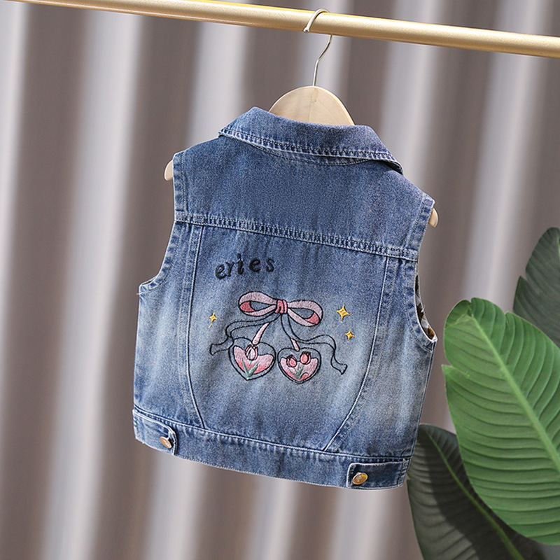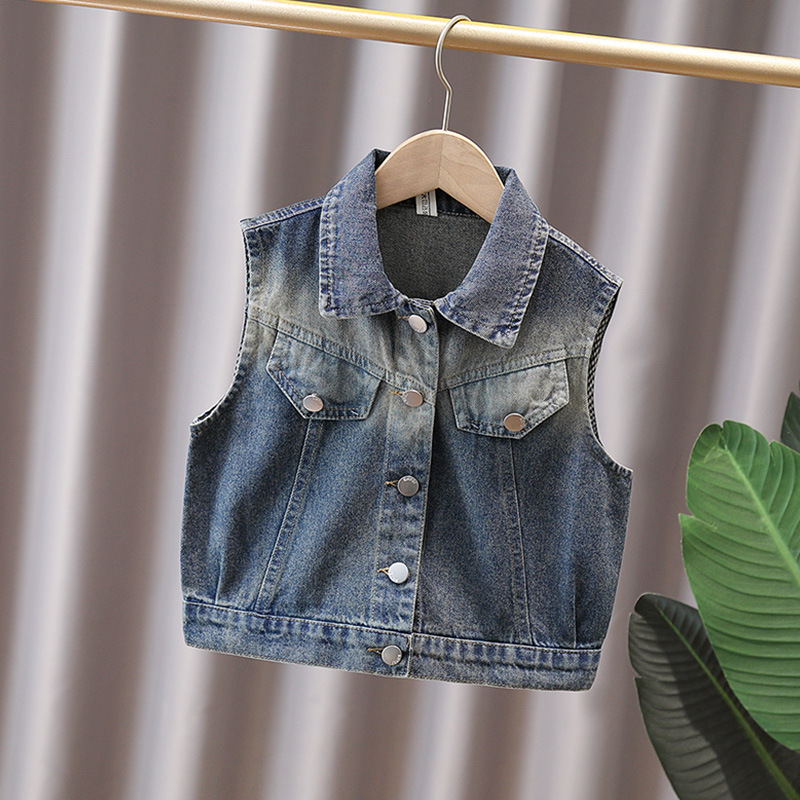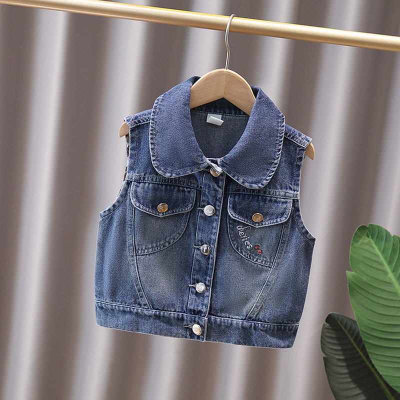 소녀 데님 조끼 봄 가을 조끼 공주 조끼 부드러운 데님 중소 및 대형 키즈 여아 코트 왁스 코트 여아 아동복