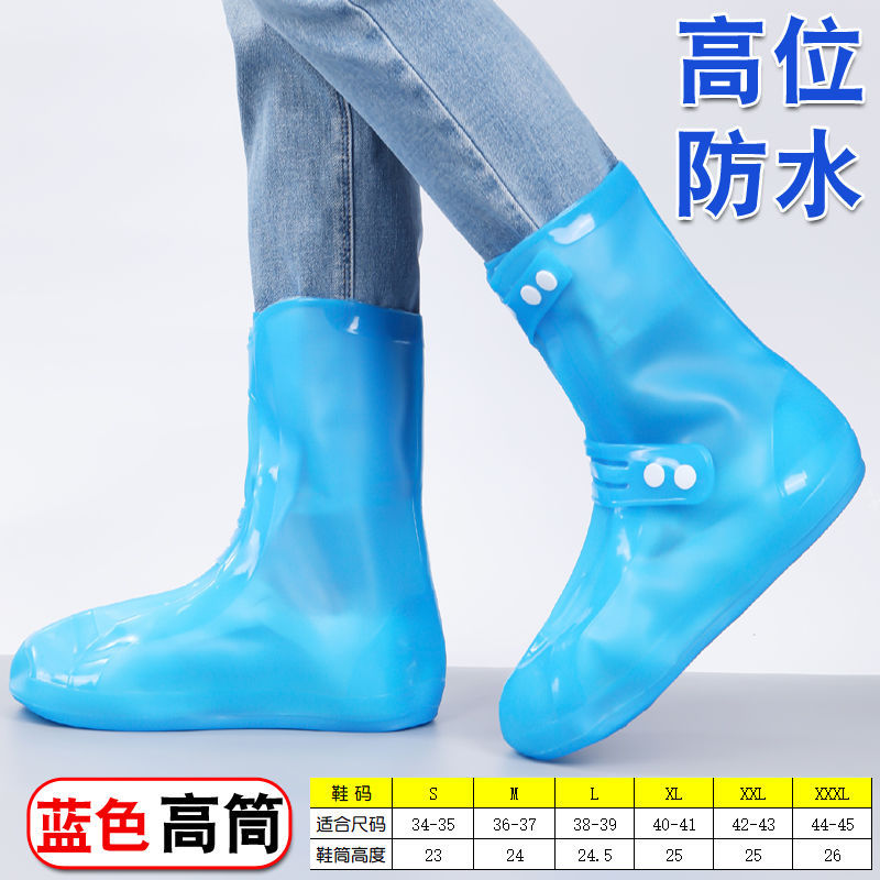 하이 튜브 방수 신발 커버 더블 브레스트 비오는 날 성인 두꺼운 미끄럼 방지 여행 신발 커버 원피스 레인 슈 커버