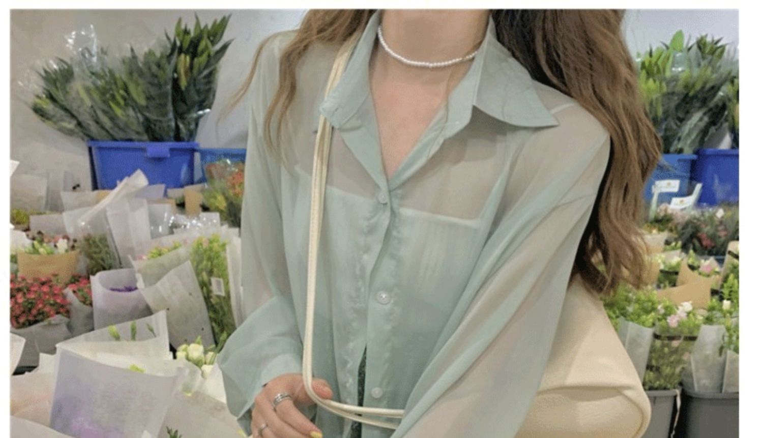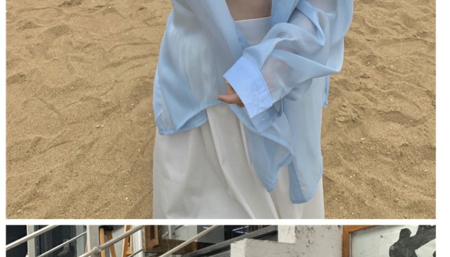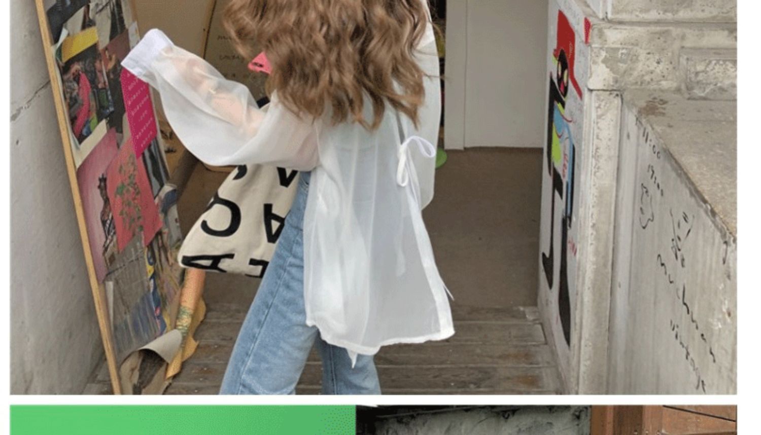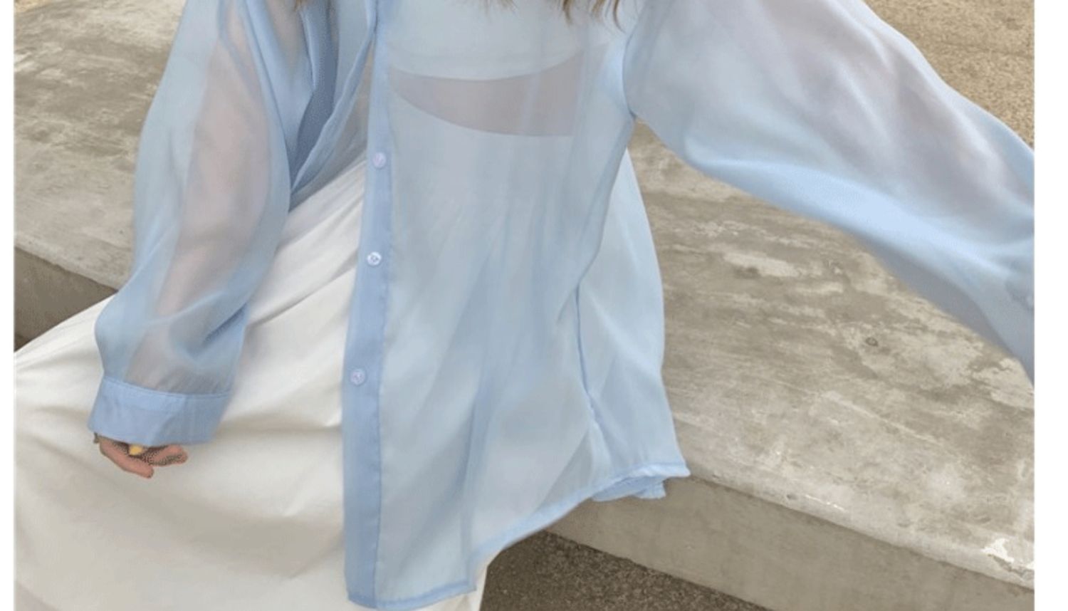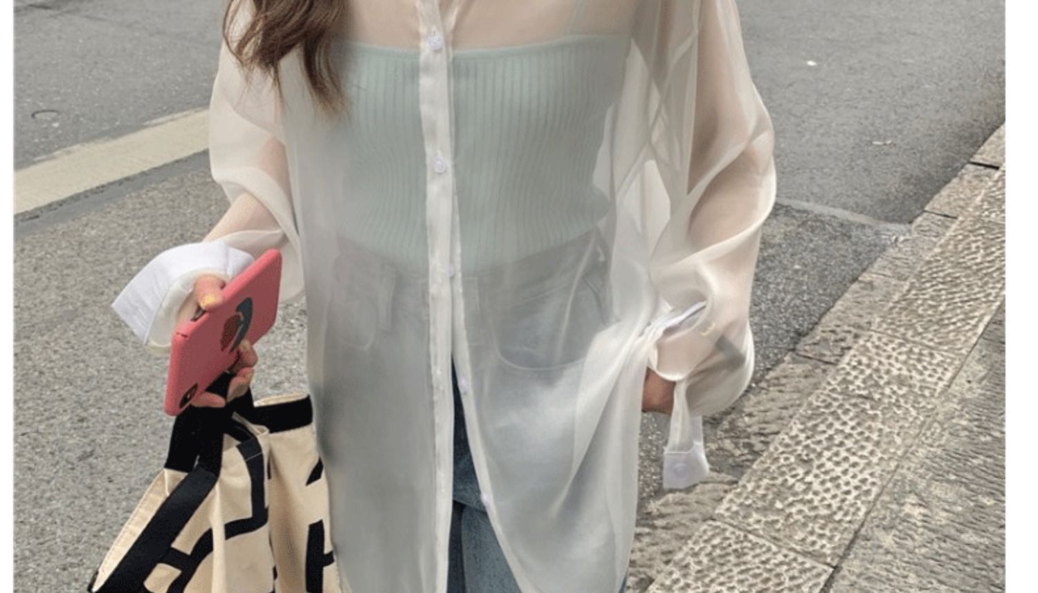 아이스 실크 쉬폰 백리스 셔츠 여성용 여름 새로운 초박형 에어컨 셔츠 재킷 선스크린 통기성 느슨한 캐주얼 탑