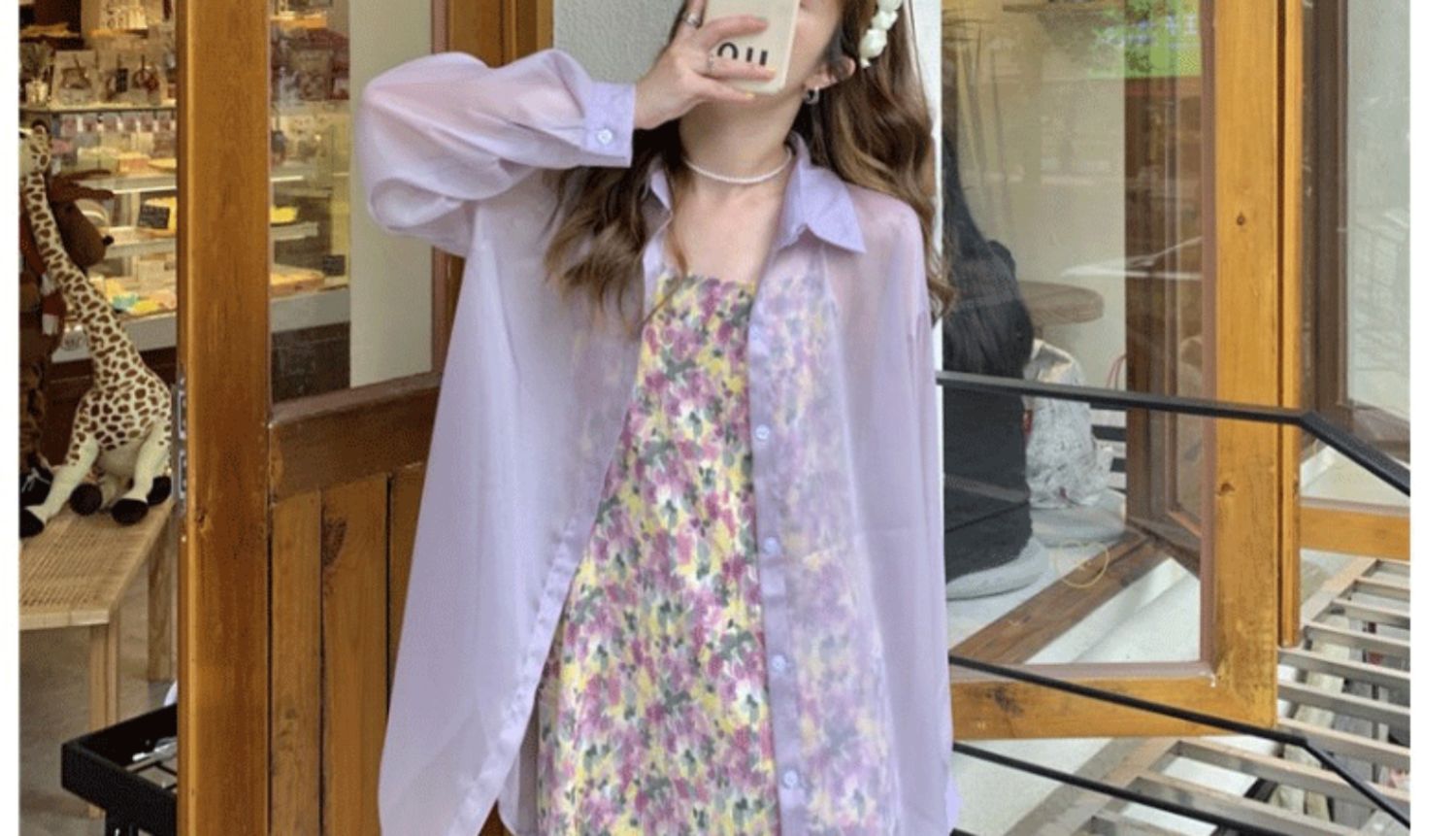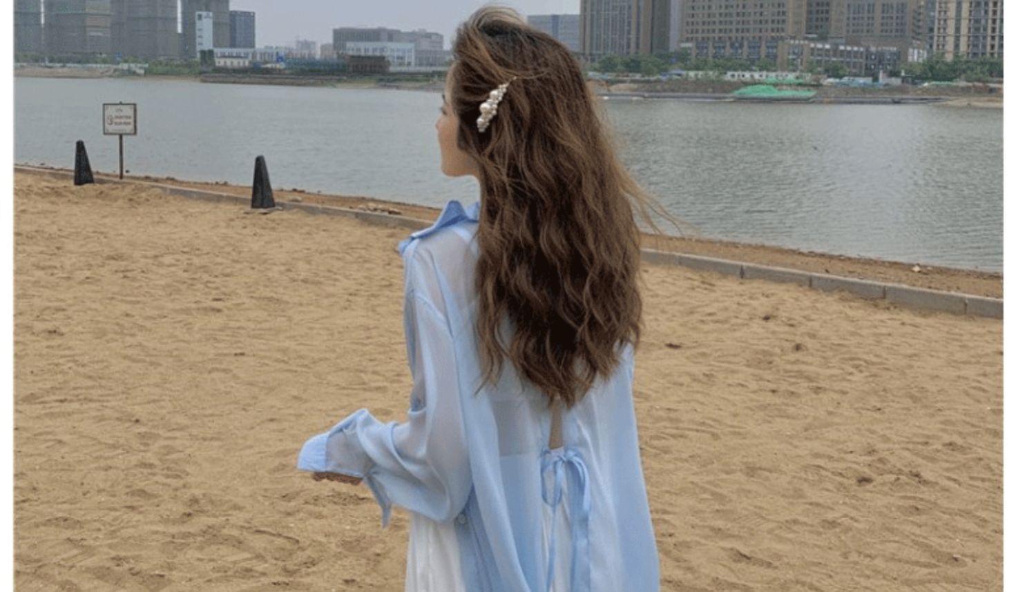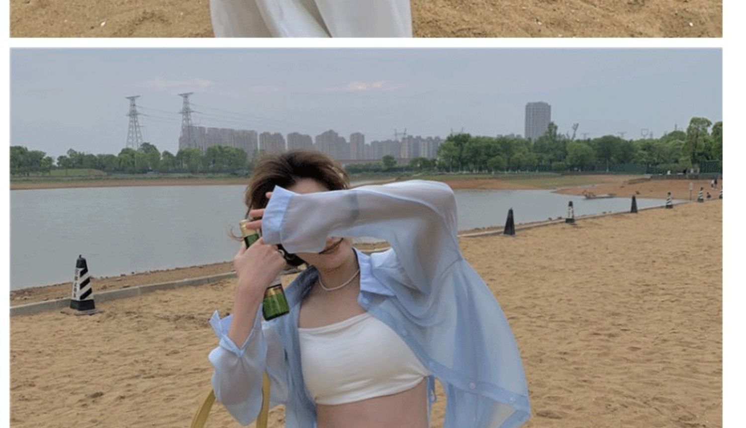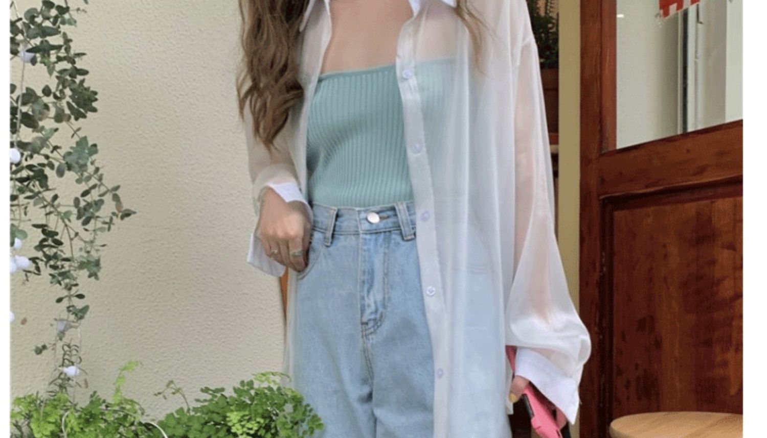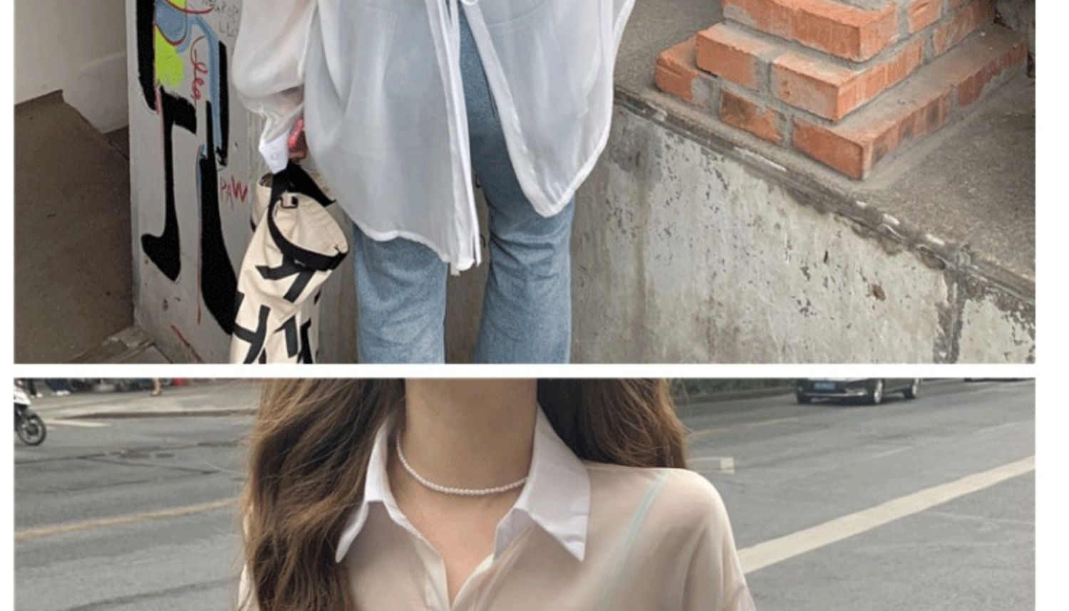 아이스 실크 쉬폰 백리스 셔츠 여성용 여름 새로운 초박형 에어컨 셔츠 재킷 선스크린 통기성 느슨한 캐주얼 탑