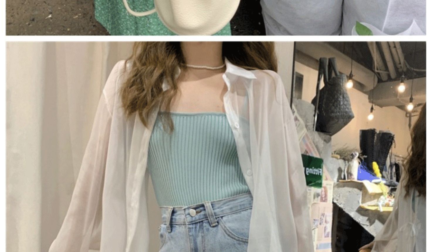 아이스 실크 쉬폰 백리스 셔츠 여성용 여름 새로운 초박형 에어컨 셔츠 재킷 선스크린 통기성 느슨한 캐주얼 탑스토어 가기