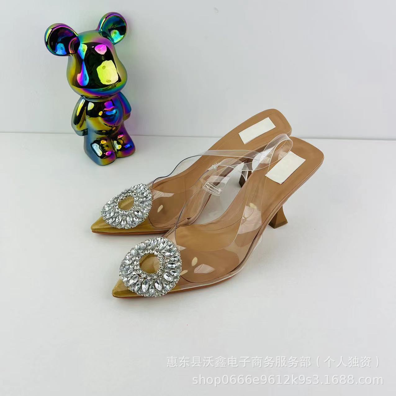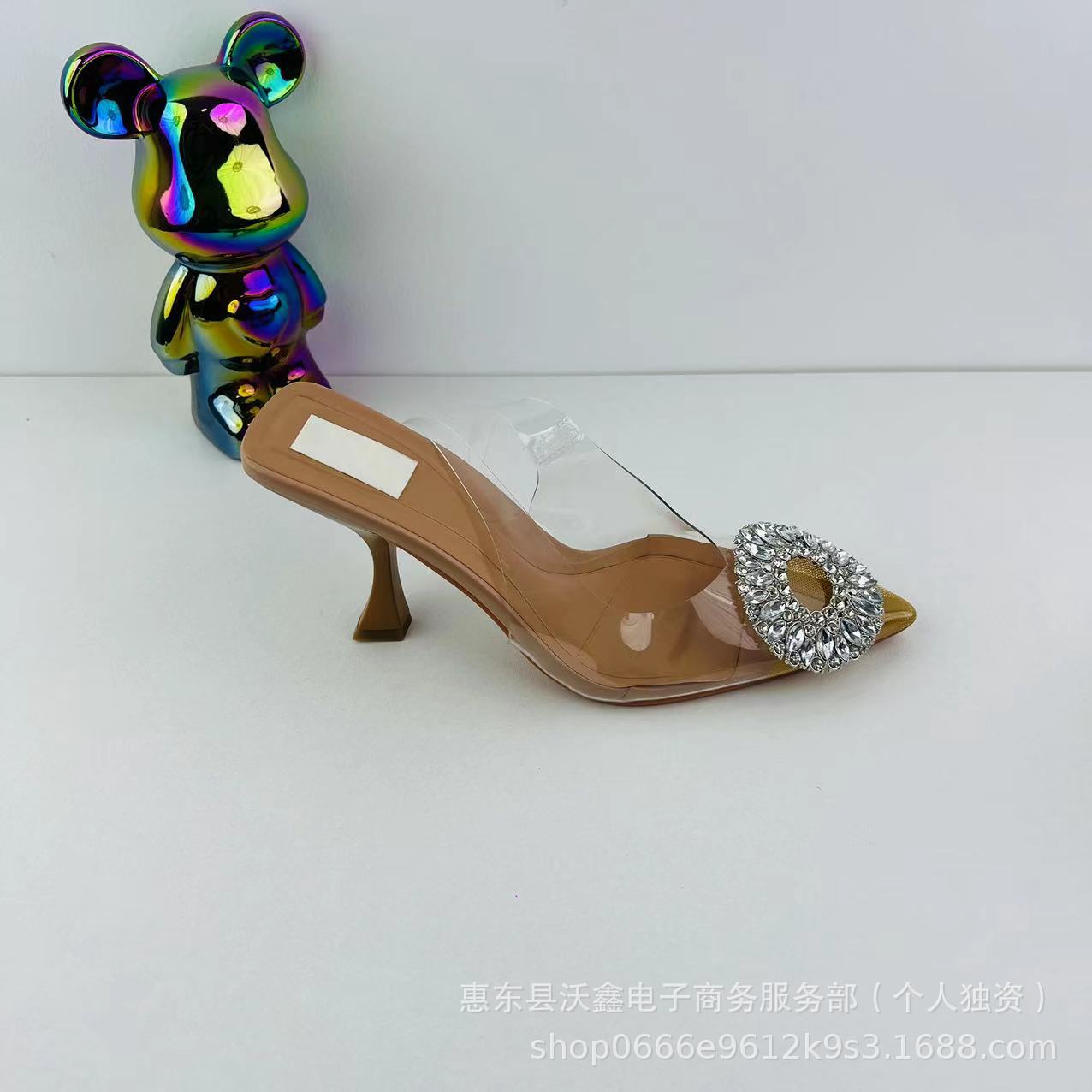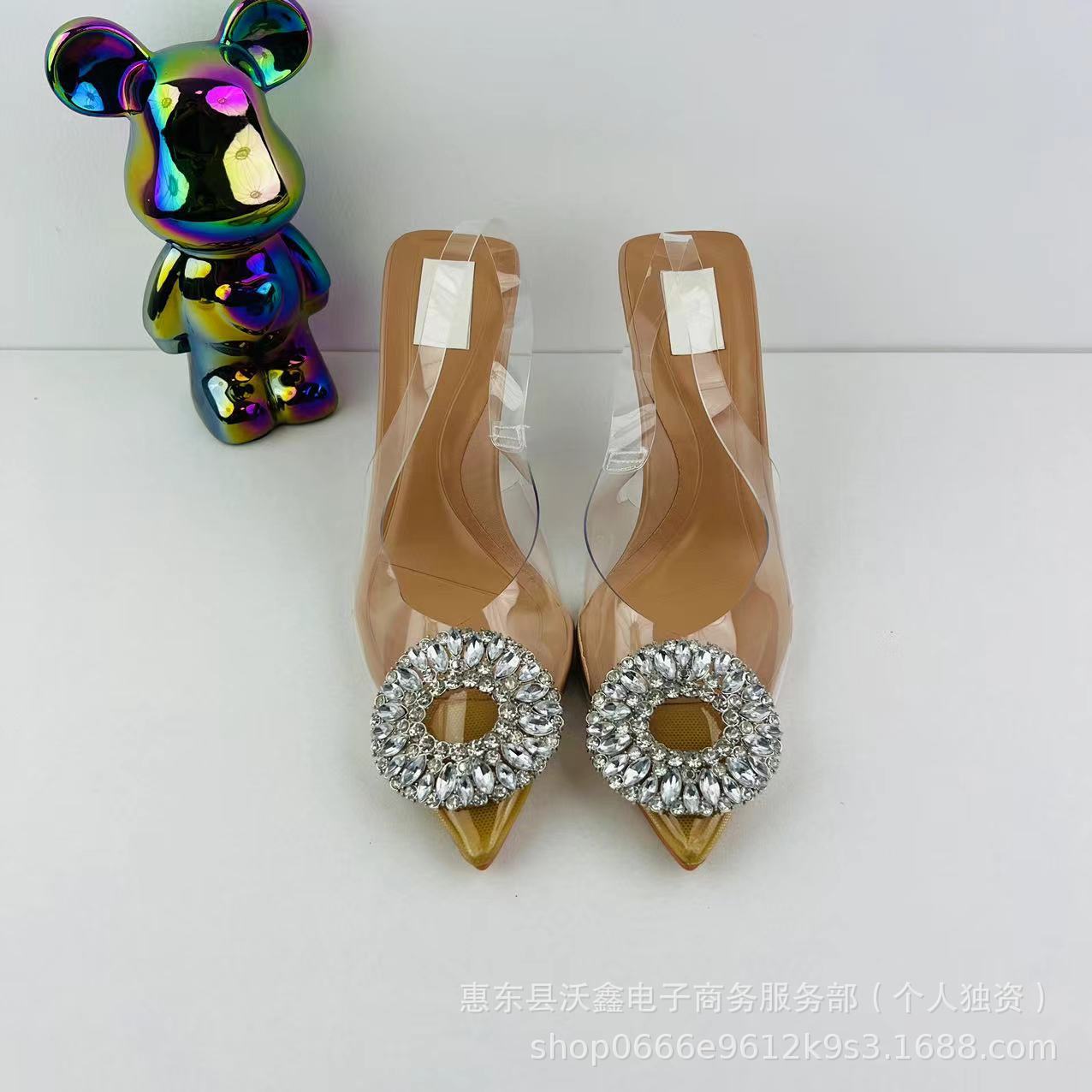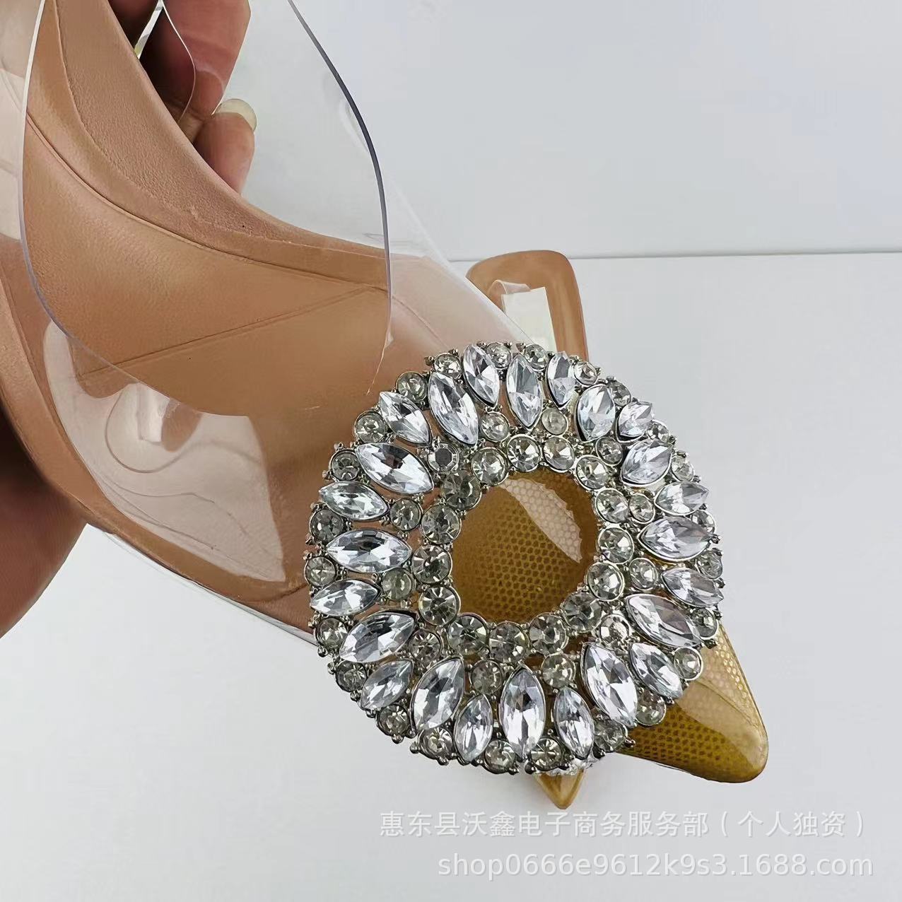 沃鑫ZA24夏季新品女鞋杏色水钻气质仙女水晶穆勒鞋高跟鞋尖头凉鞋