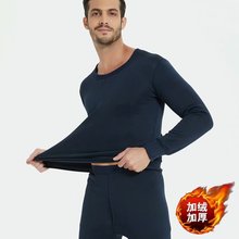 潮仑布男士保暖内衣加大码男秋衣秋裤圆领修身加绒现货跨境外贸款