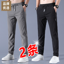 潮仑布夏季冰丝裤男士修身韩版休闲裤男薄款直筒长裤跨境现货批发