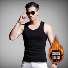 潮仑布春秋季加绒紧身款保暖背心男士爸爸装无袖坎肩内搭紧身马甲