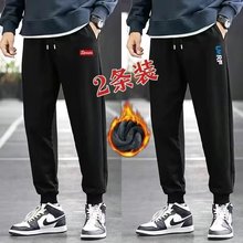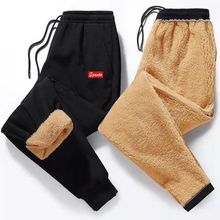潮仑布保暖加绒羊羔绒印花运动裤男士秋冬季加厚束脚卫裤宽松大码