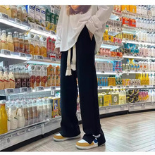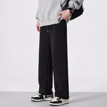 차오룬부 여름 트렌디 브랜드 아이스 실크 바지 남성용 얇은 루즈핏 스트레이트 팬츠 속건성 스포츠 캐주얼 바지스토어 가기