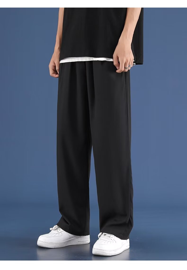 차오룬부 여름 트렌디 브랜드 아이스 실크 바지 남성용 얇은 루즈핏 스트레이트 팬츠 속건성 스포츠 캐주얼 바지