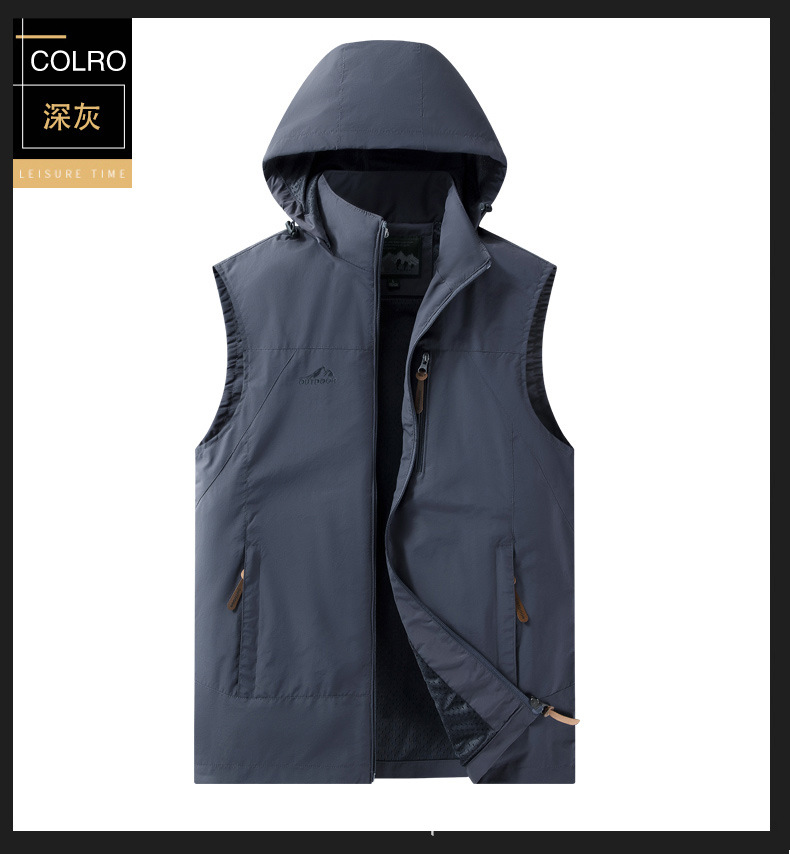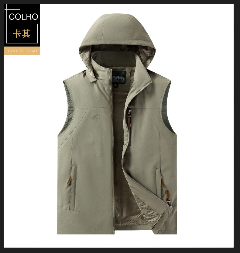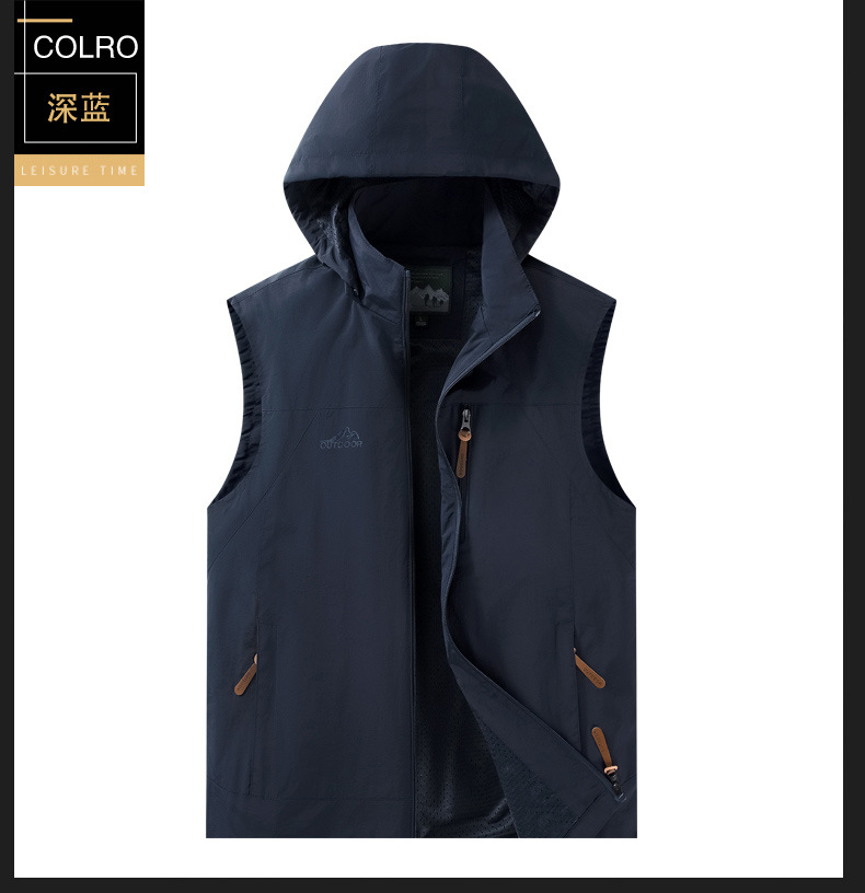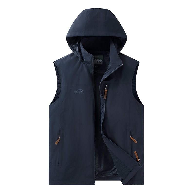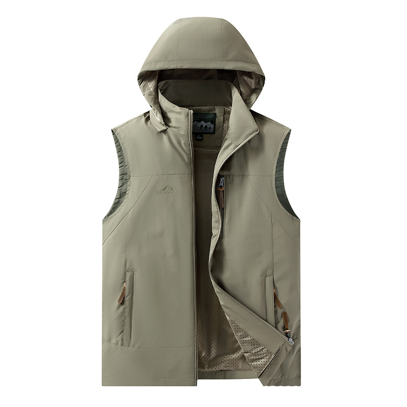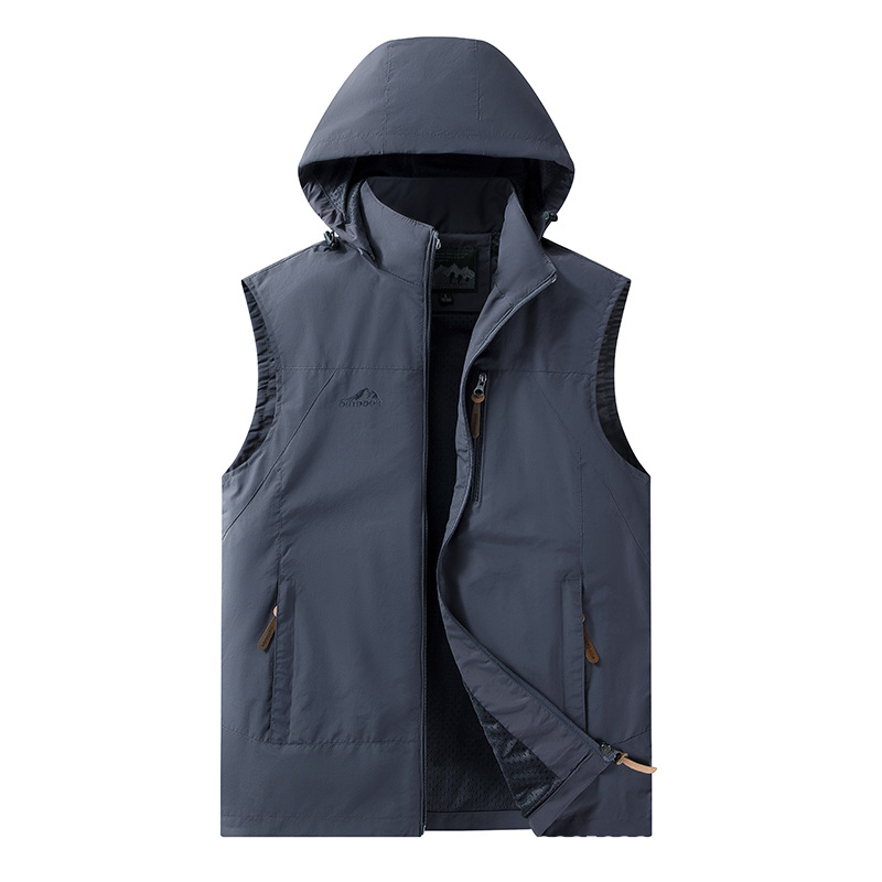 OBM 국경 간 재고 공급 새로운 로고 남성 얇은 후드 조끼 코트 야외 낚시 조끼