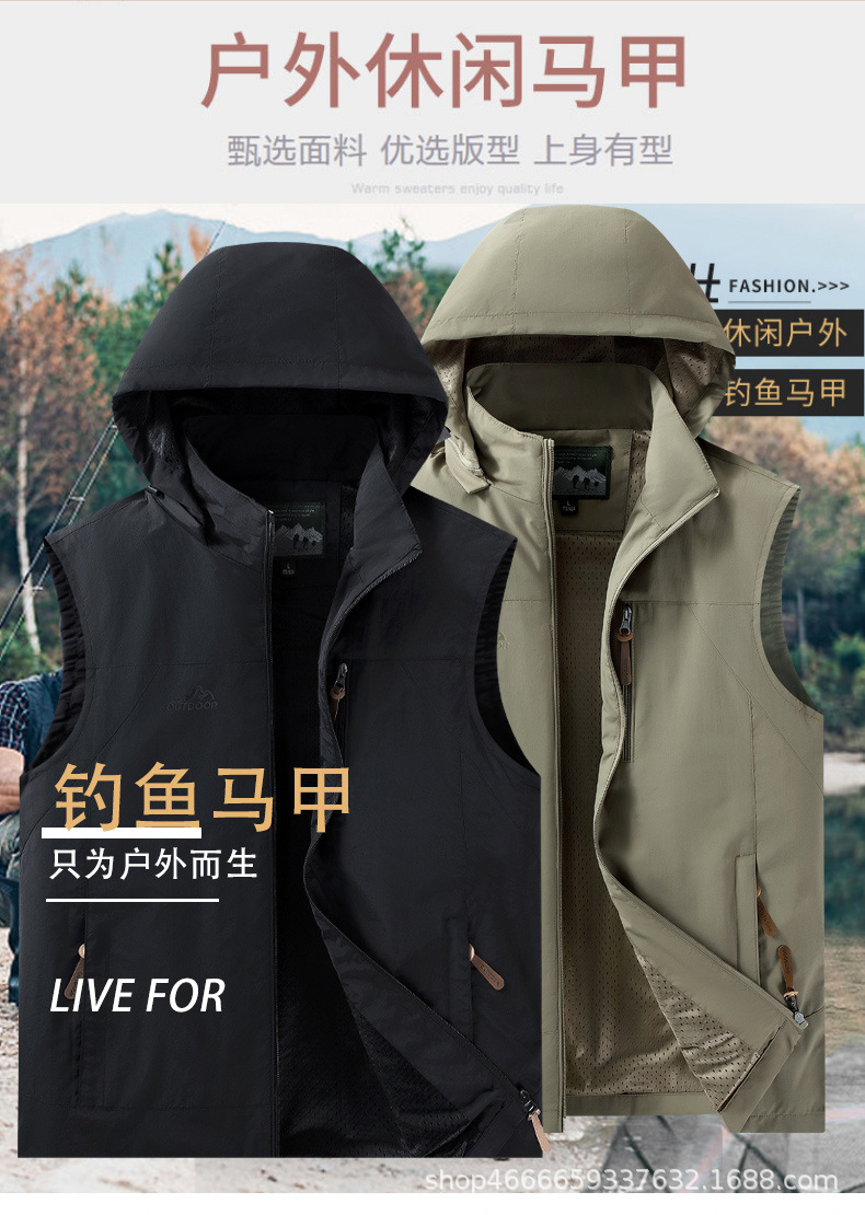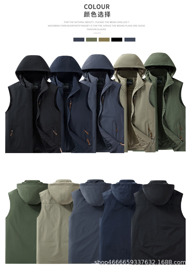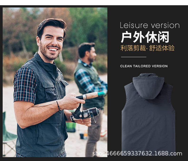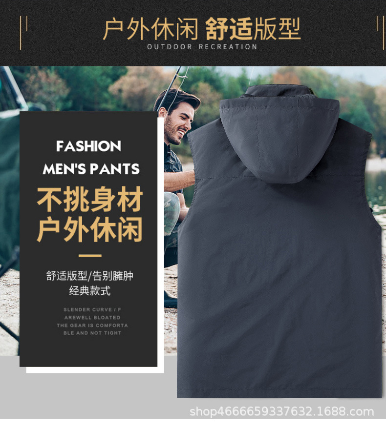 OBM 국경 간 재고 공급 새로운 로고 남성 얇은 후드 조끼 코트 야외 낚시 조끼스토어 가기