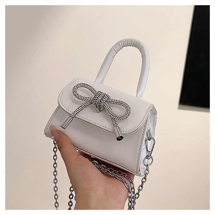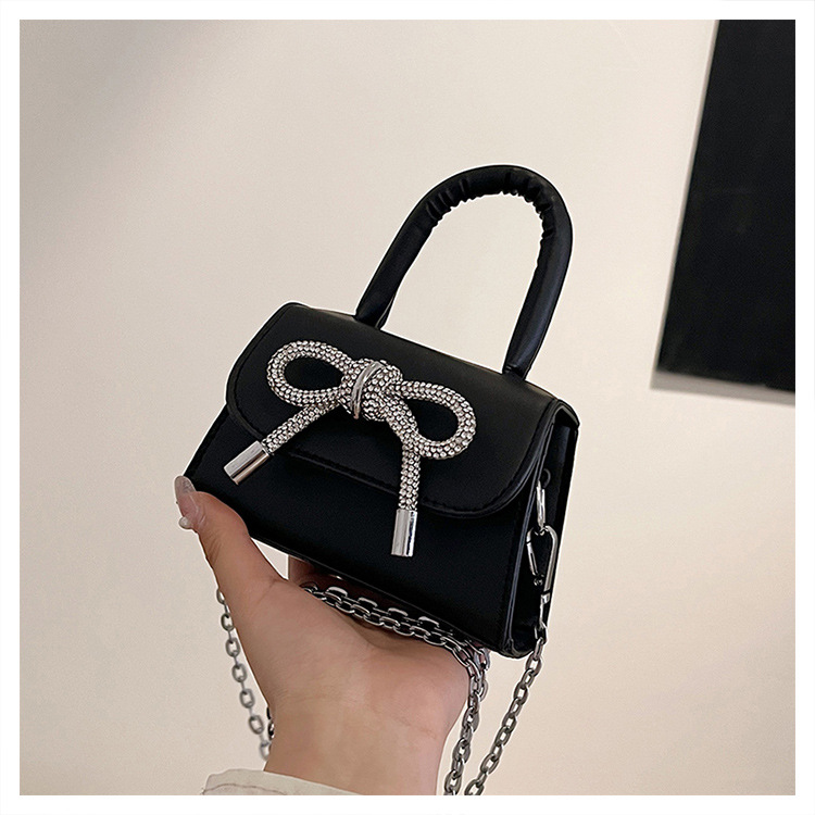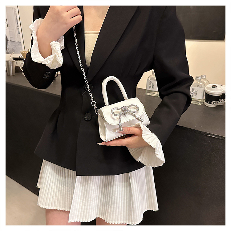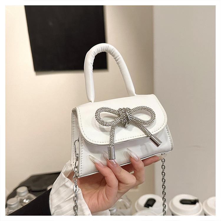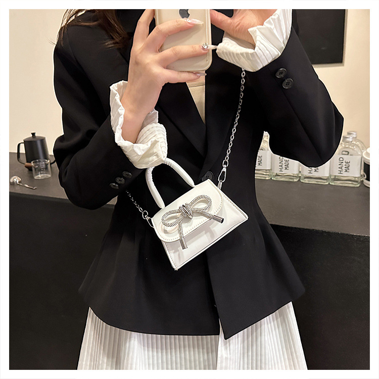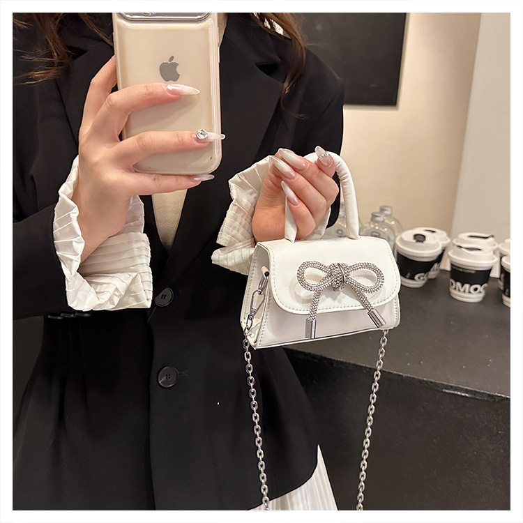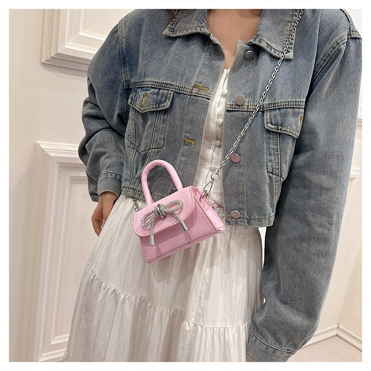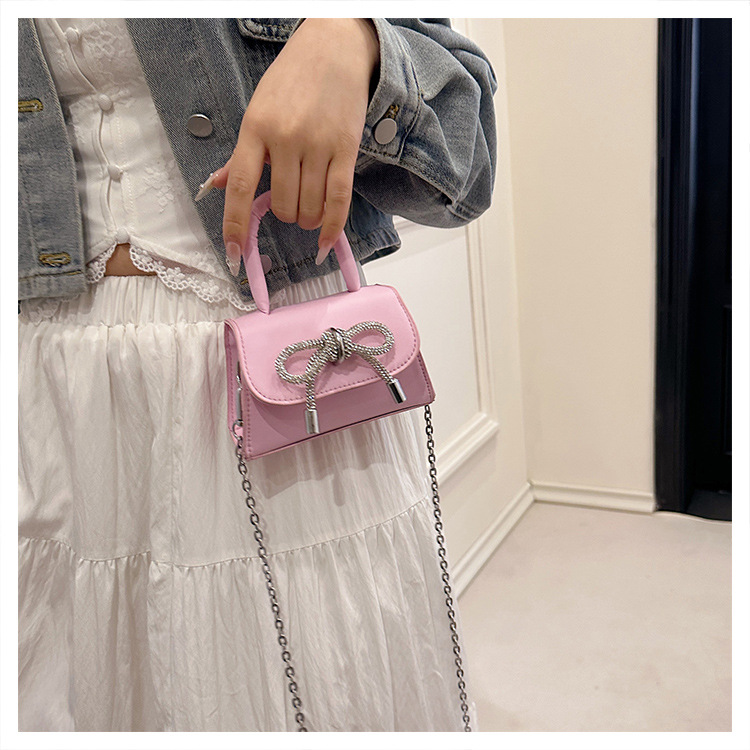 리본 장식 한국 스타일 세련된 작은 사각형 가방 여성용 2026 신상 미니 핸드백 심플 체인 숄더/크로스백스토어 가기
