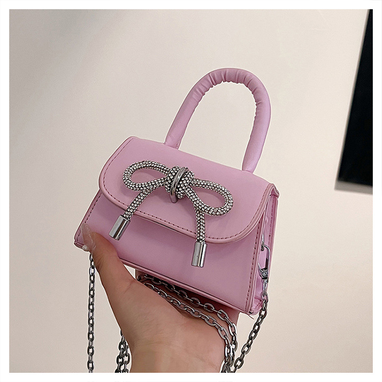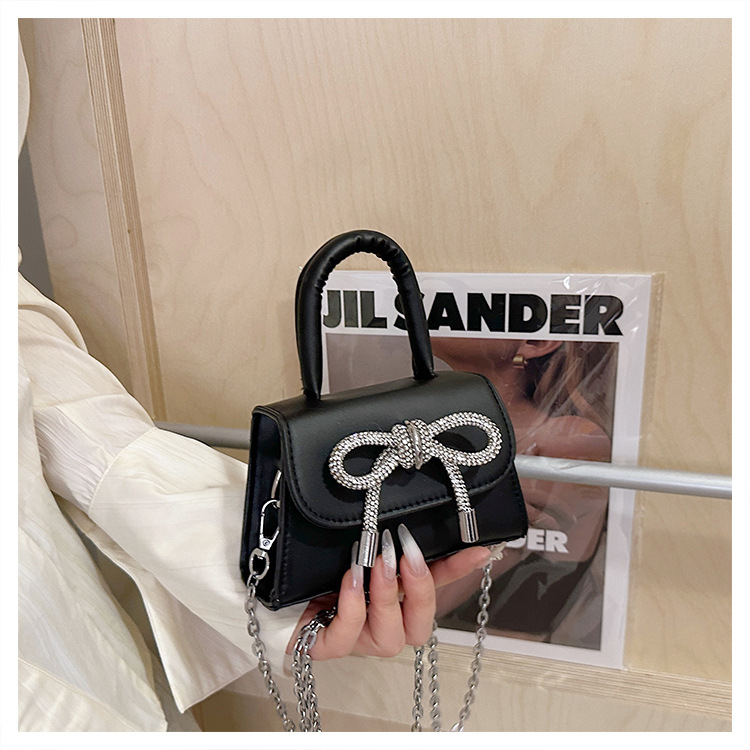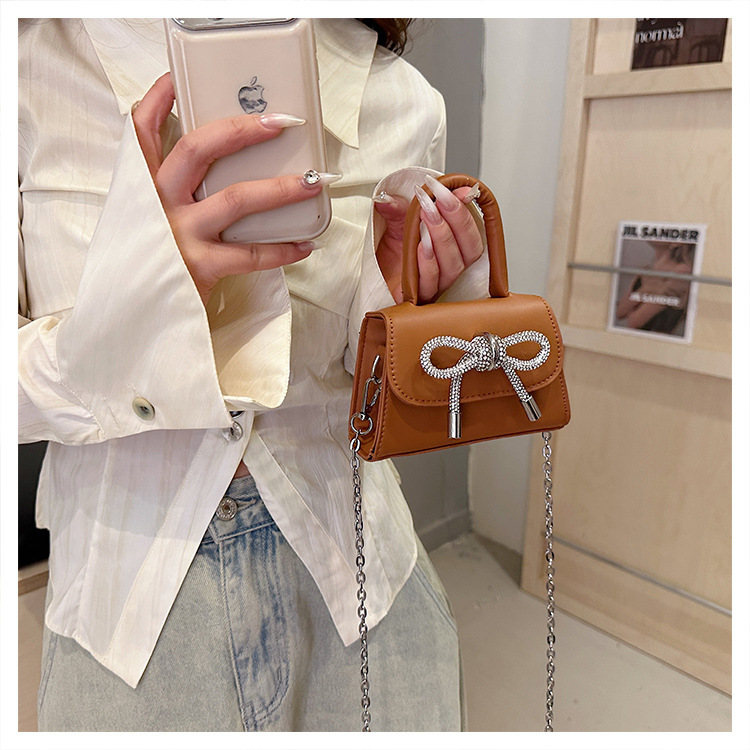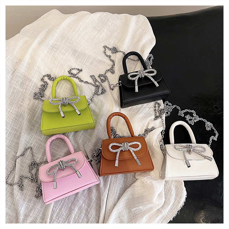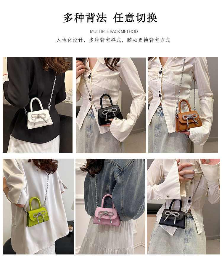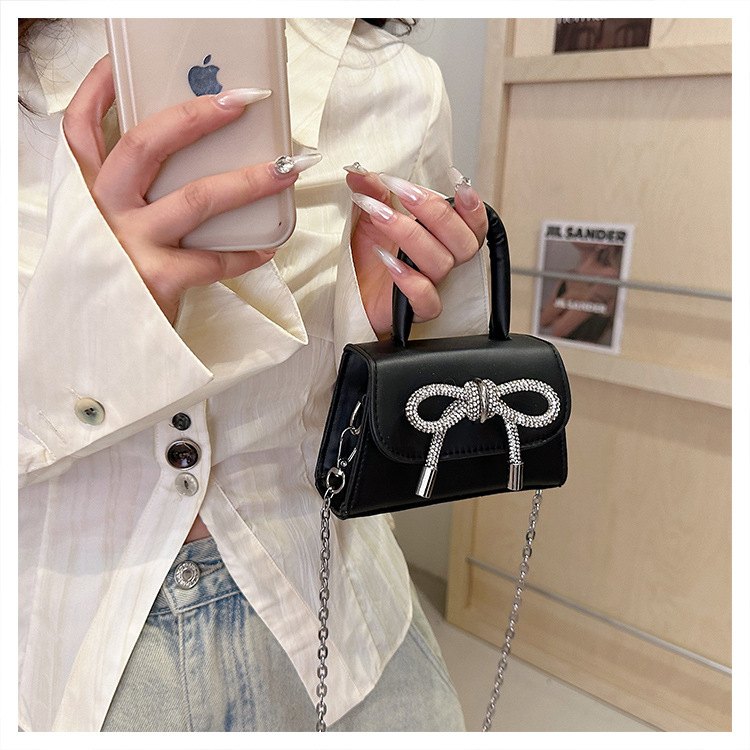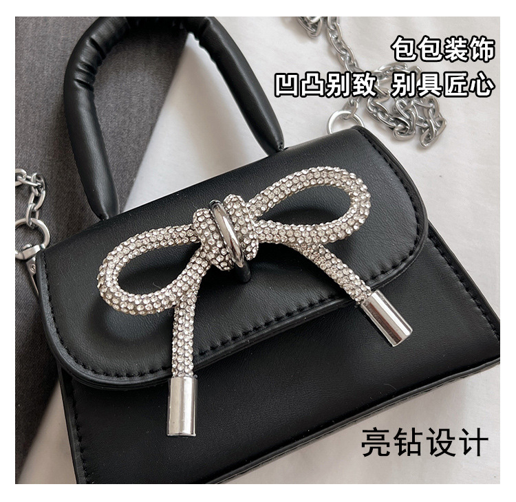 리본 장식 한국 스타일 세련된 작은 사각형 가방 여성용 2026 신상 미니 핸드백 심플 체인 숄더/크로스백스토어 가기